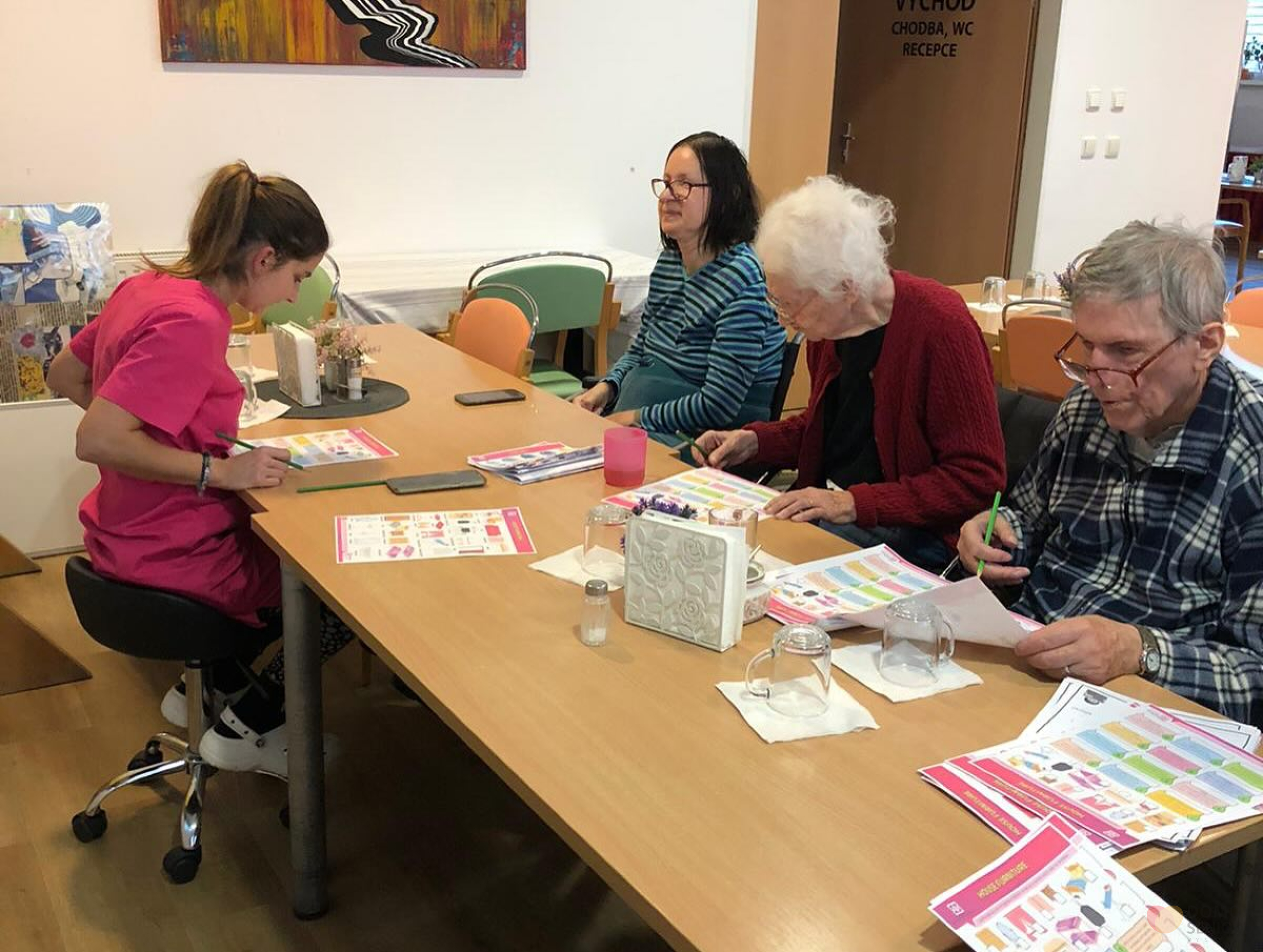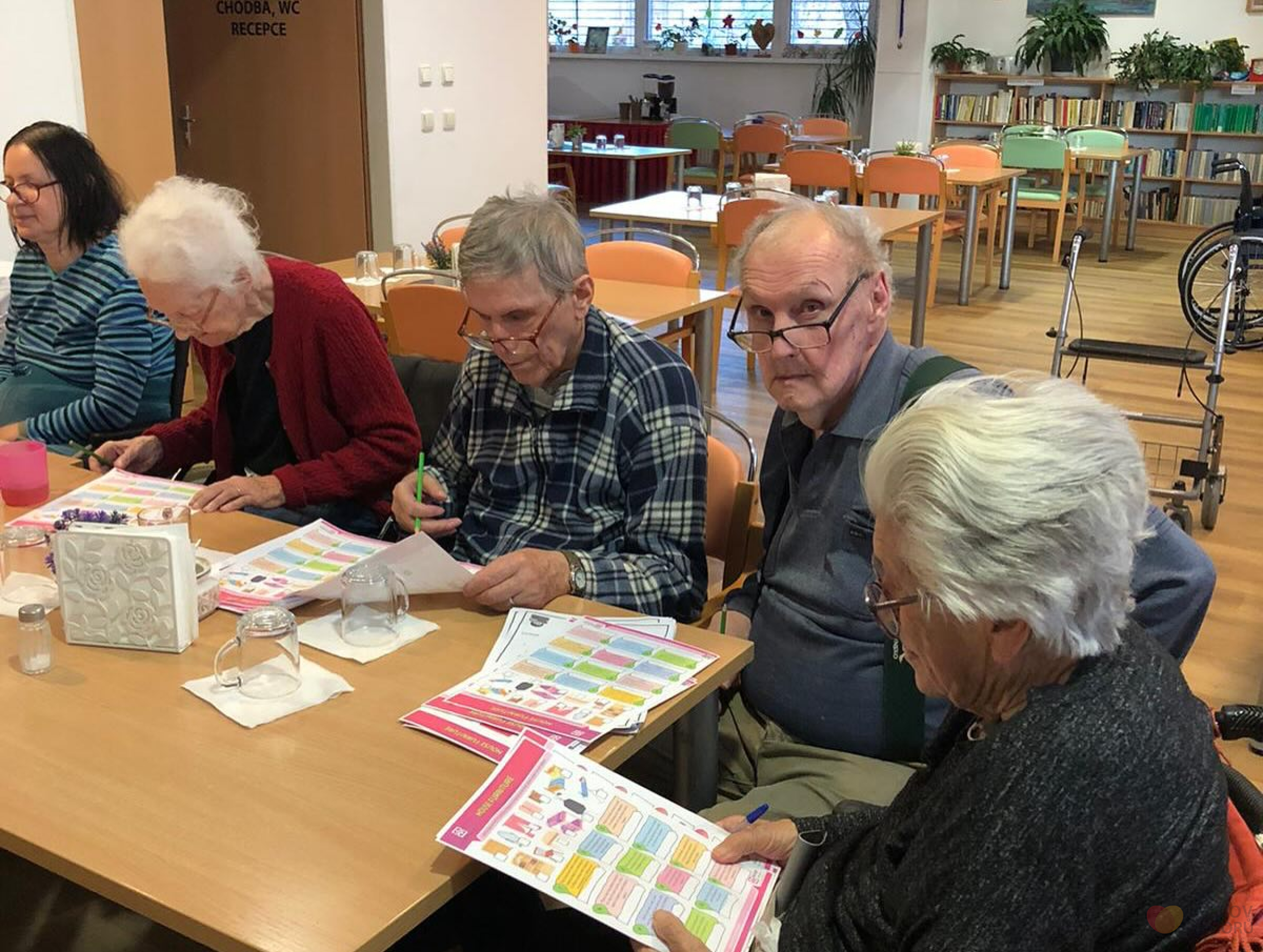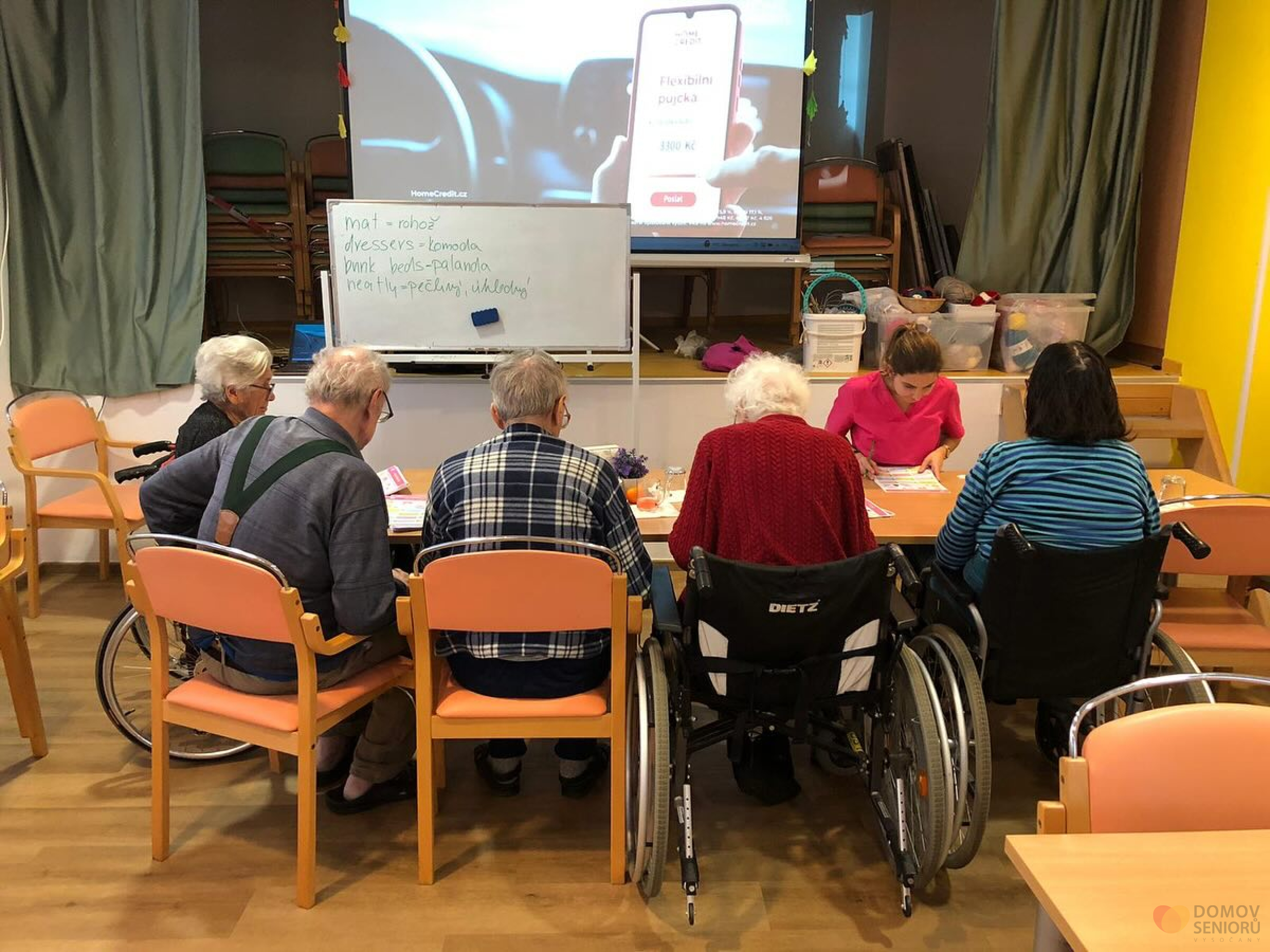 Aktivizační pracovnice připraví před hodinou text v angličtině i češtině a poté ho s klienty čtou a společně překládají. Také se klienti učí nová slovíčka.