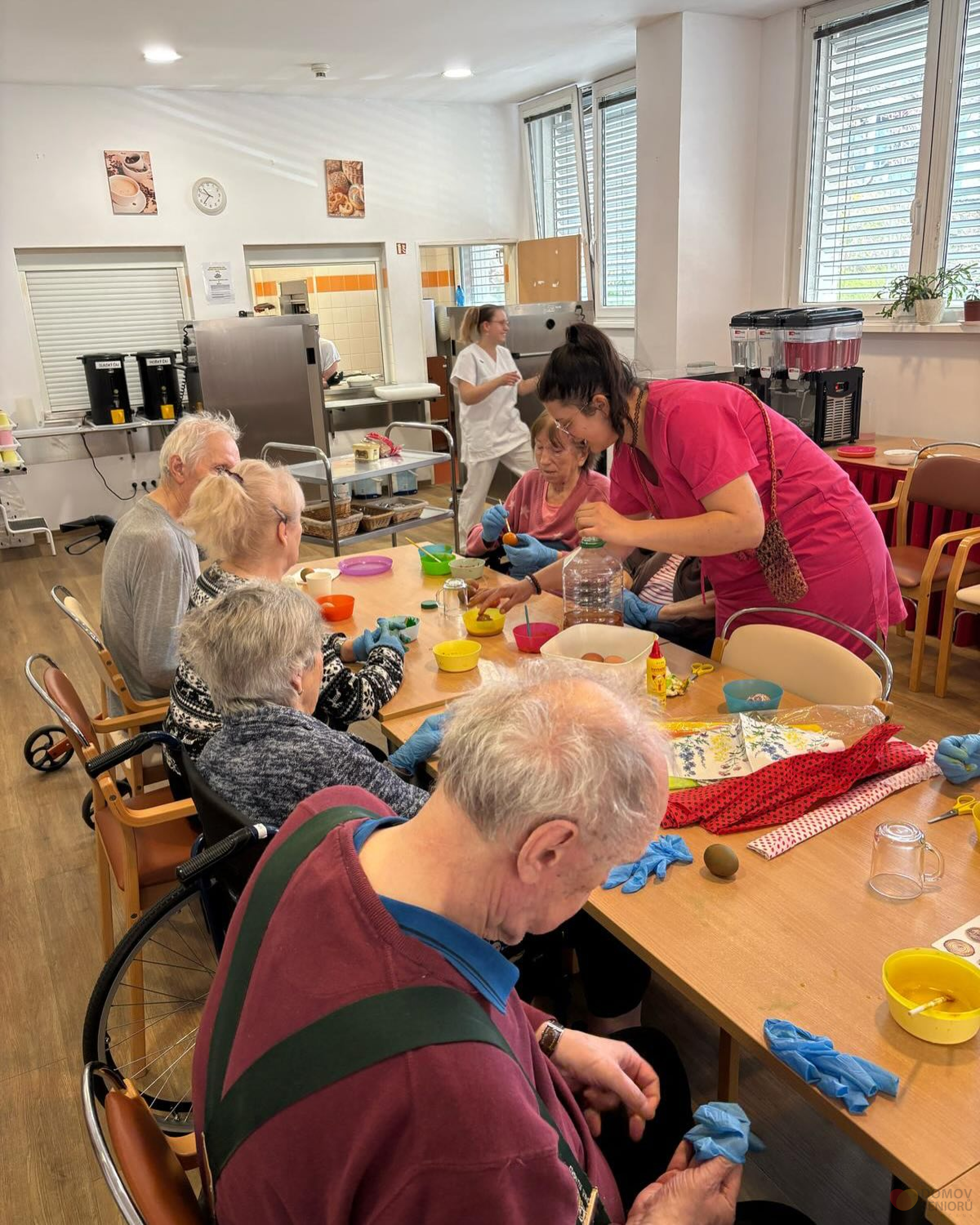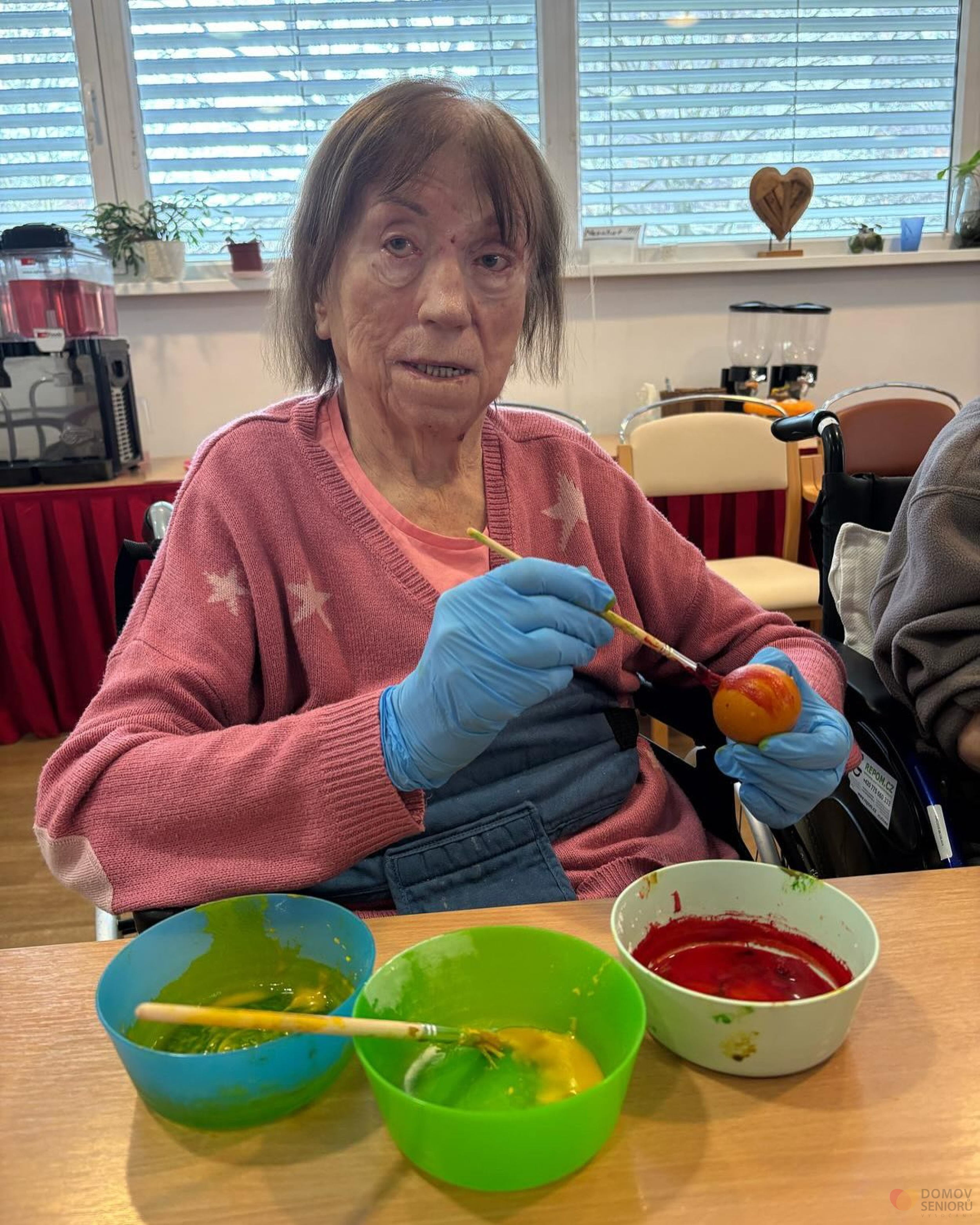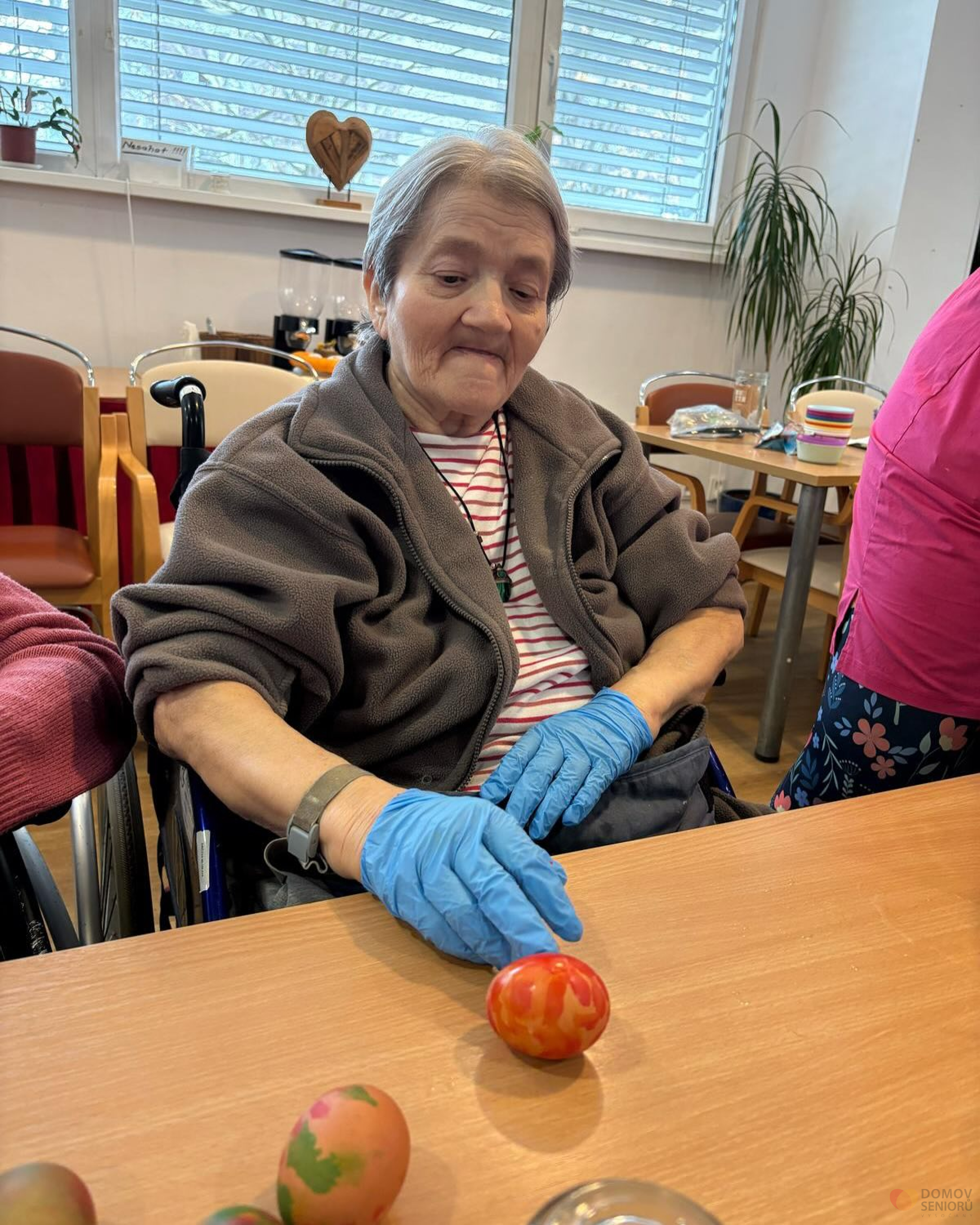 Velikonoční aktivity v našem Domově jsou v plném proudu. Samozřejmě nesmělo chybět tradiční barvení vajíček. Tradice nás spojuje a dělá radost i našim klientům – a u nás to při této aktivitě bylo opravdu veselé a barevné!