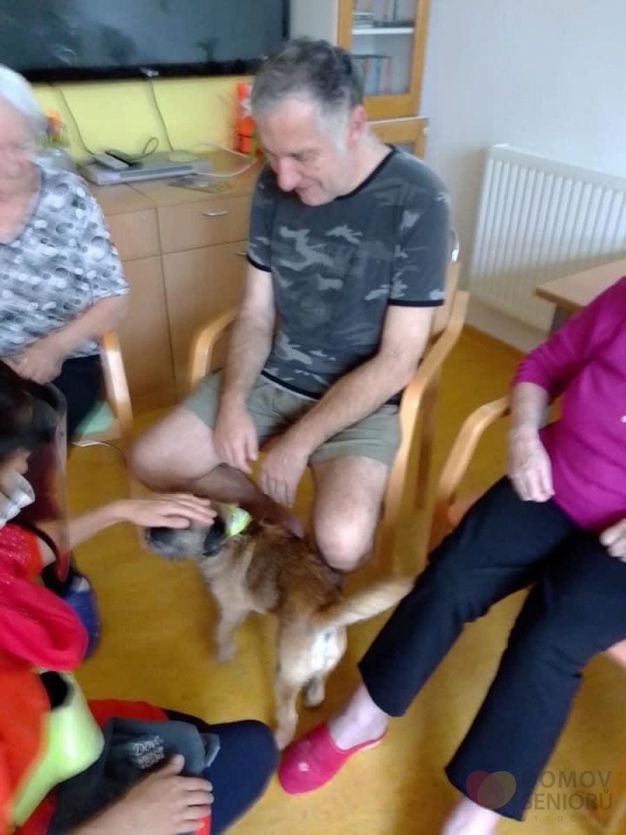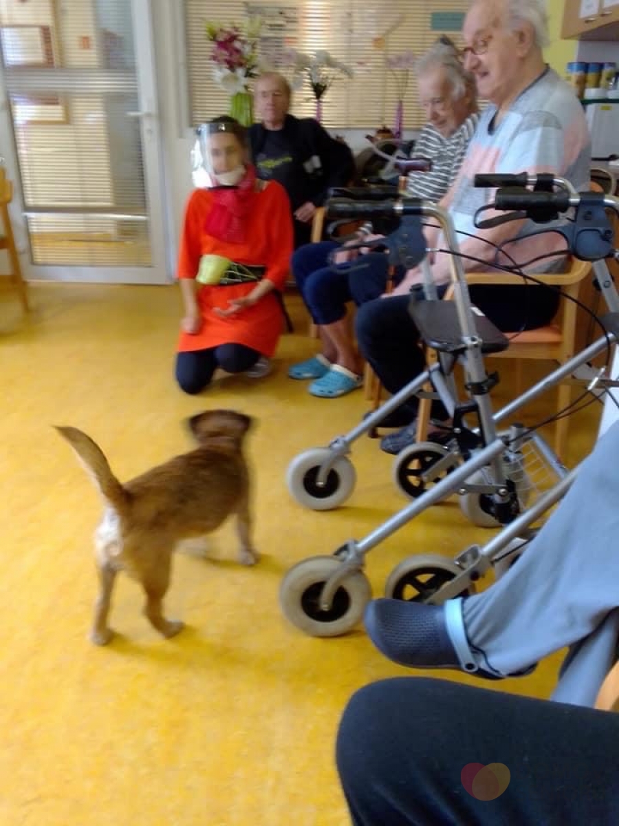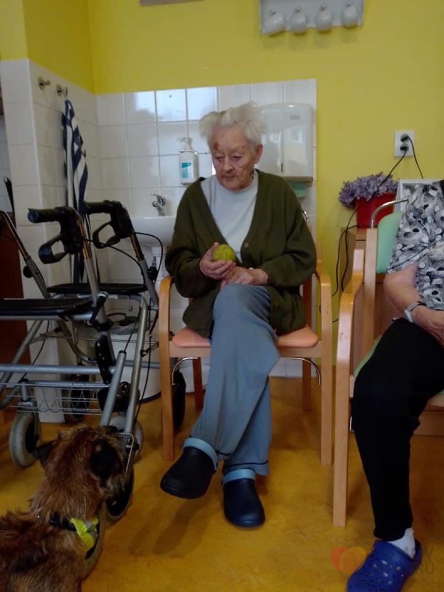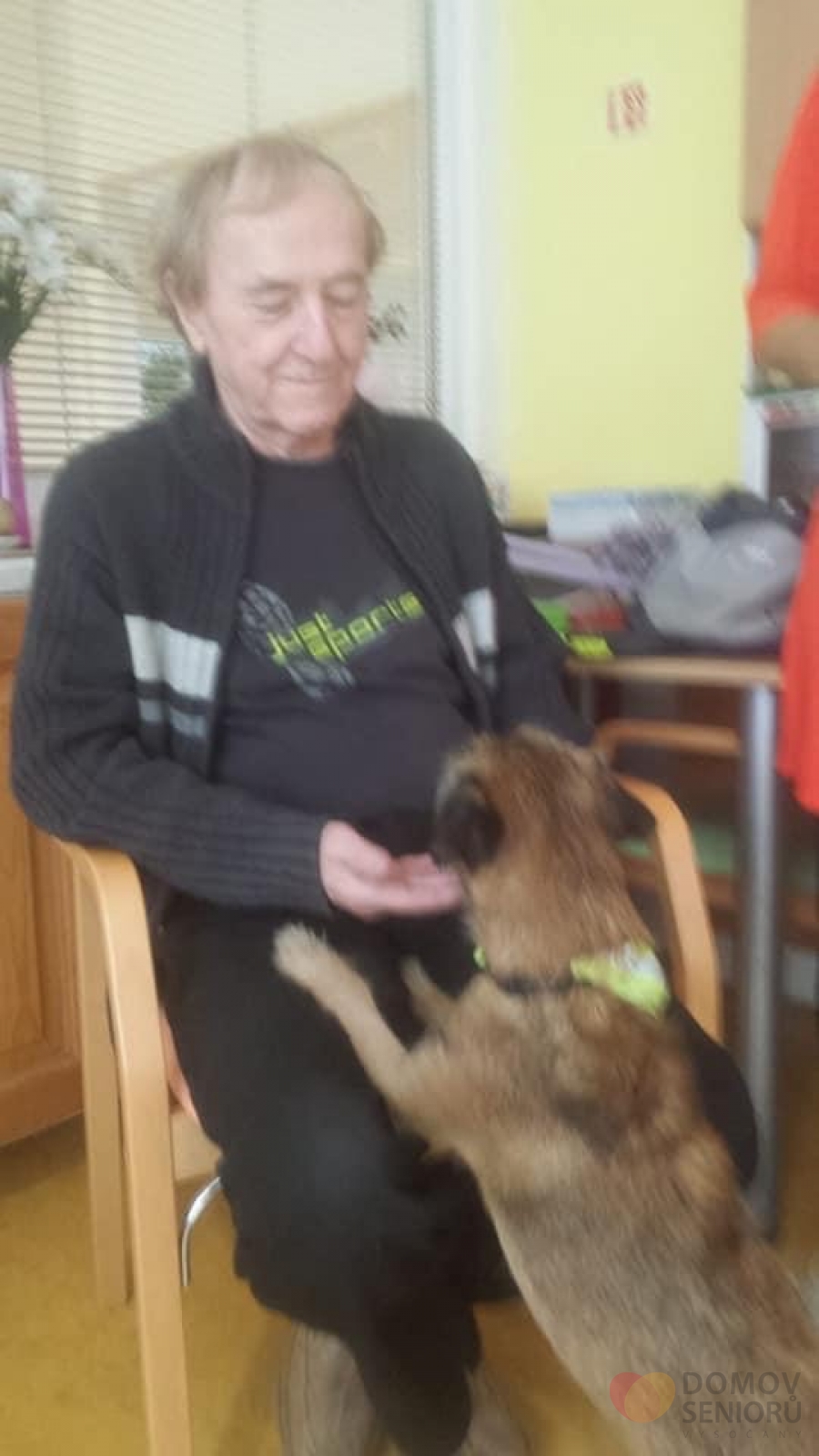 Zdravíme Lakyho s paničkou Magdou!!! Konečně můžeme pozvolna pokračovat v oblíbených činnostech - začínáme canisterapii!!