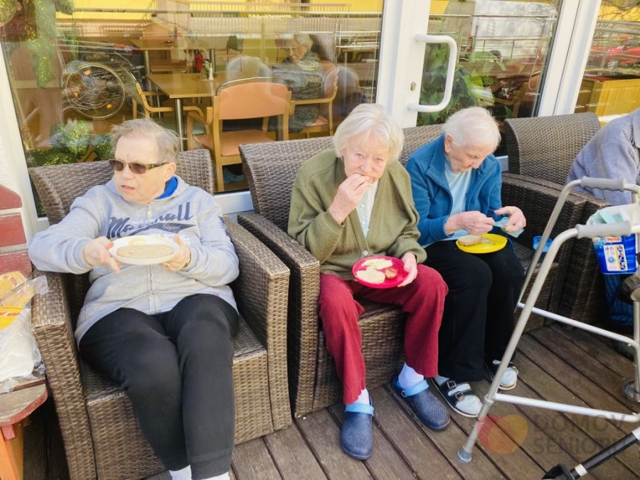 Poté probíhal vzpomínkový klub, ve kterém si klienti připomněli, jak slavili pálení čarodějnic dříve a odpoledne už následovala grilovačka. A protože bylo hezky, mohli jsme si konečně užít posezení na terase a na zahradě.