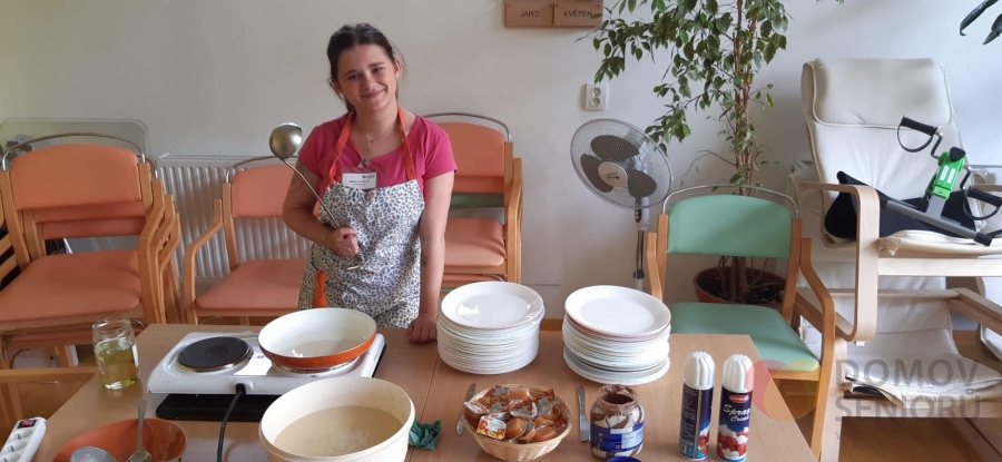 Klientům se snažíme dopřávat.V rámci procházek chodíme pravidelně do kavárny a nebo připravujeme pojízdnou kavárnu přímo v Domově. Narozeniny oslavujeme s pořádným občerstvením, pořádáme degustační aktivity a kuchařská okénka. Nedávno jsme dělali palačinky a bramboráky a v srpnu nás čeká grilovačka.