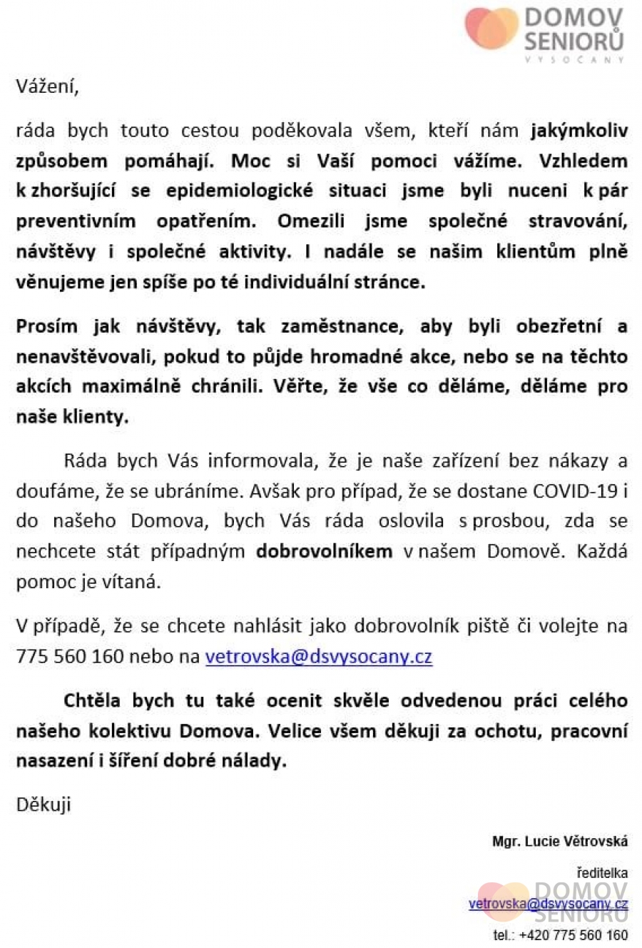 Domov seniorů Praha Vysočany › Články › Aktuality › Dobrovolnictví v DS Vysočany