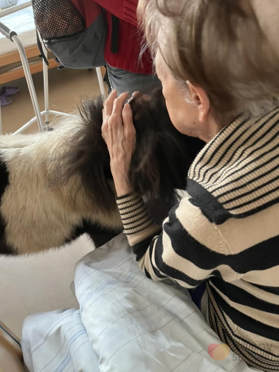 Naši klienti jsou zvyklí na pejsky a kočky, ale poníka na pokoji ještě neměli! Byli překvapení a zároveň moc rádi. Poník Žulíček byl moc hodný, nechal se hladit a nakrmit od klientů. Byl to krasný zážitek pro všechny. Děkujeme za návštěvu.