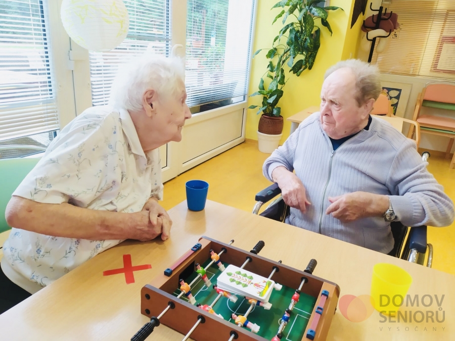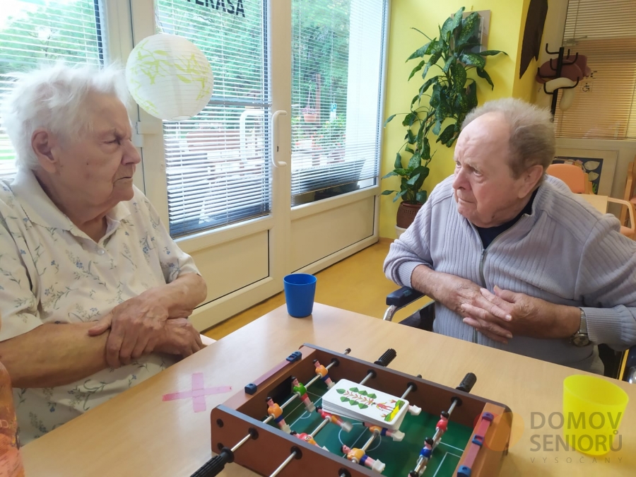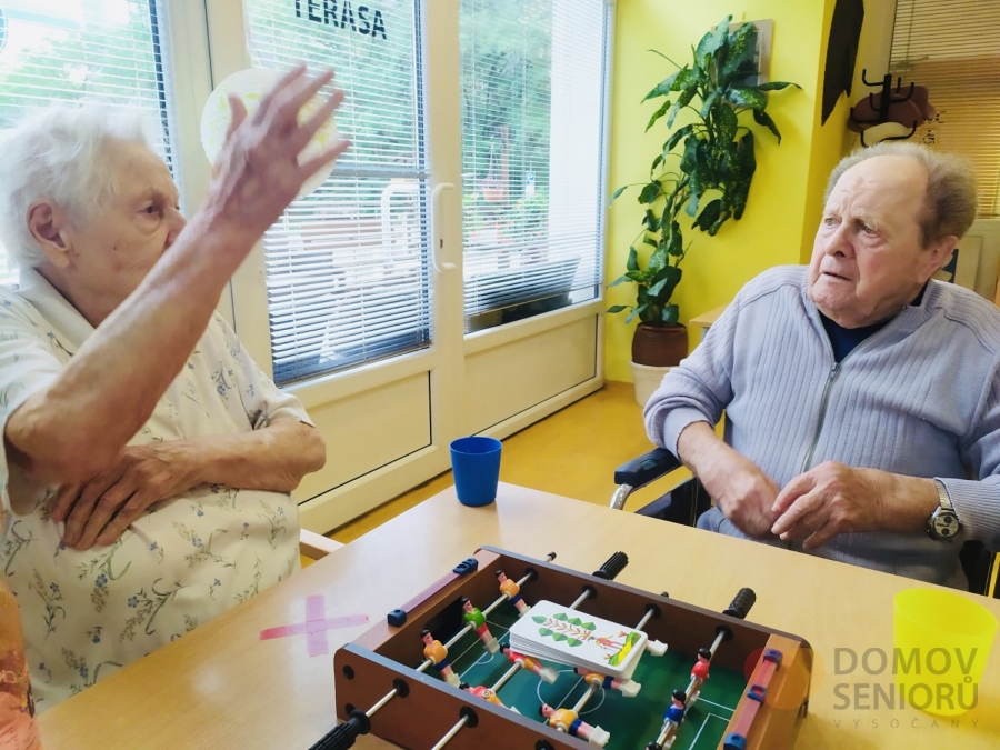 Hry v rámci aktivizačních činností slouží nejen k zabavení klientů, ale také k procvičování jejich kognitivných funkcí, jako je paměť, pozornost, pohotovost, schopnost vyjadřování a porozumění, prostorová orientace atd. Proto několikrát do týdne mezi aktivity zařazujeme různé hry, jako je bingo, člověče nezlob se, skládání puzzle, pexeso, karty a nově i stolní fotbálek, který naše klienty moc baví.