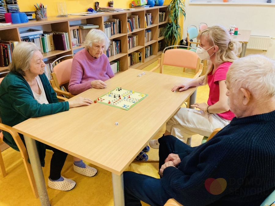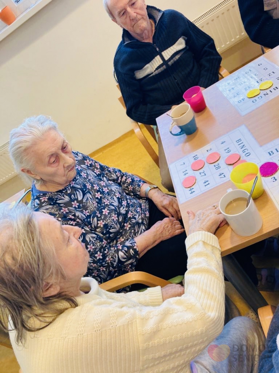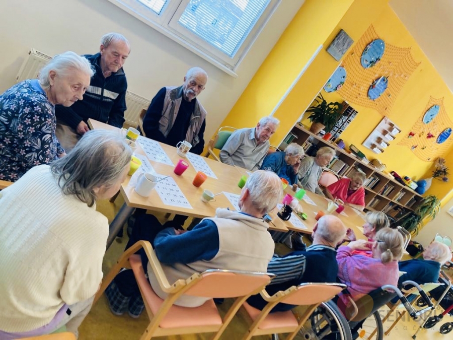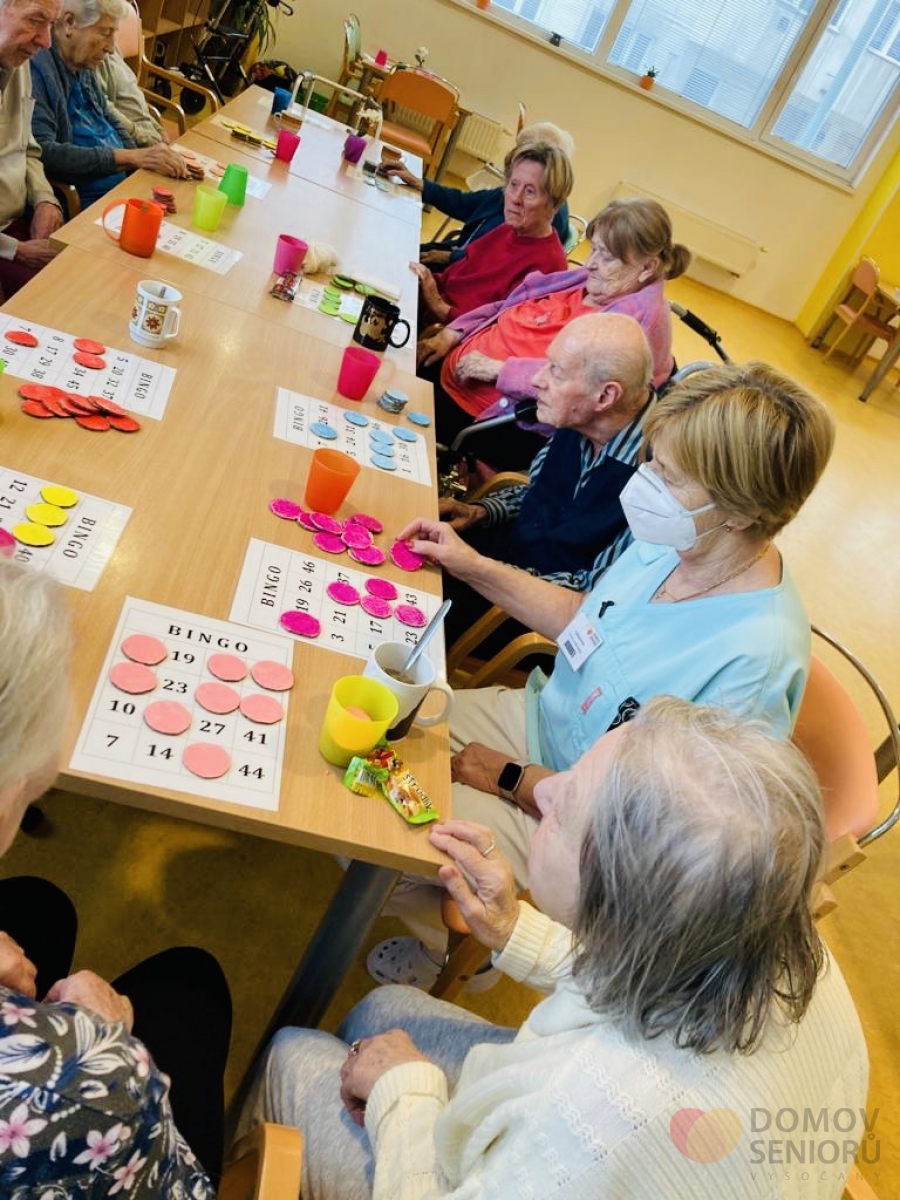 Naše aktivizační pracovnice dbají na to, aby klienti měli každý den zpestřený různými aktivitami. Níže se můžete podívat, jak probíhá náš den plný aktivit. Po ranní hygieně mají klienti snídani na jídelně nebo na pokoji. Poté je čeká rozvcička. Každý den si také povídáme o tom co se zrovna ve světě děje a přečteme si noviny. Následují individuální aktivity na pokojích klientů a skupinová aktivita ve společenské místnosti. Tentokrát jsme sledovali muzikální film v rámci filmového klubu. V rámci celého dne také probíhá indiviuální nebo skupinová rehabilitace našich klientů. Následuje oběd, polední klid a další skupinové a individuální aktivity. Např. společenské hry, jako je bingo nebo stolní hry. Nebo slavíme svátek či narozeniny. Tentokrát potěšila dortem i všechny ostatní naše klientka paní Libuška, která ten den oslavila krásných 84 let. Přejeme Vše nejlepší!
