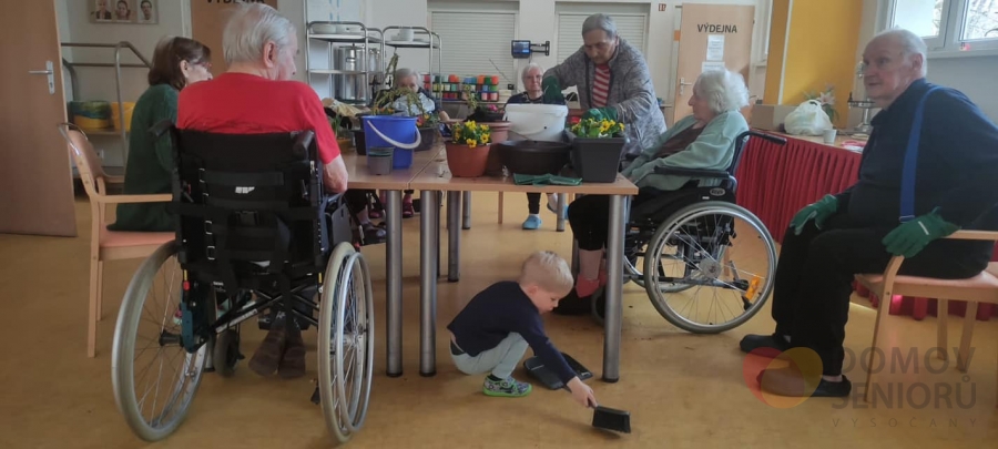 Počasí je venku stále aprílové, ale my v Domově už máme jaro. Postupně dáváme do kupy naší zahrádku. Zatim jsme sázeli kytičky jen do truhlíků, brzy se snad budeme moct naplno věnovat zahradě i venku.