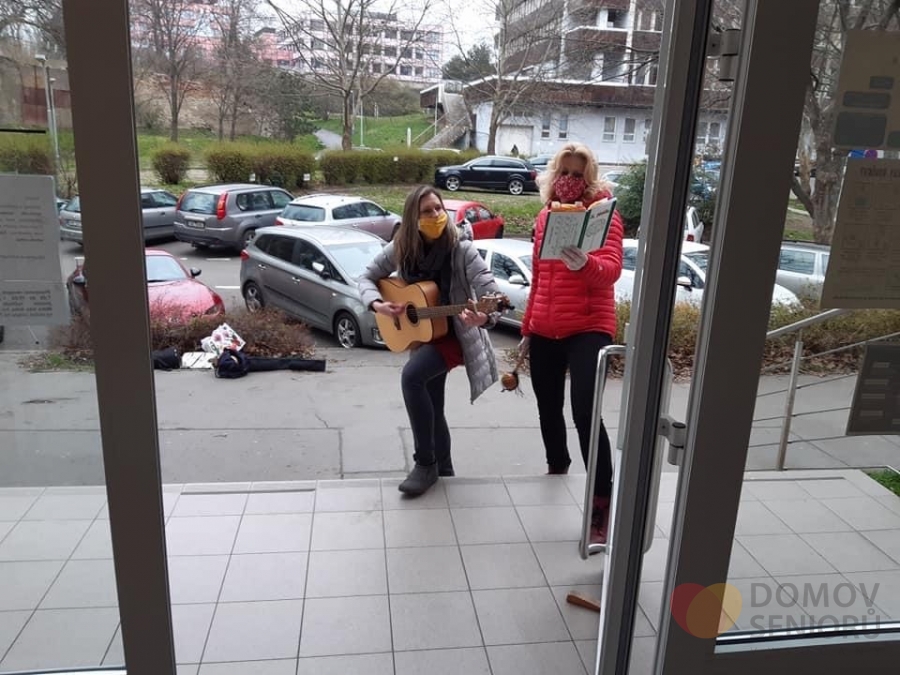 "KONCERT ZA SKLEM" tak jsme nazvali dnešní setkání s hudbou. Muzikoterapeutky Jindra s Jiřinou byly fantastické, zvedly náladu celému našemu Domovu a troufám si tvrdit, že i části Vysočan, hrály parádně ???