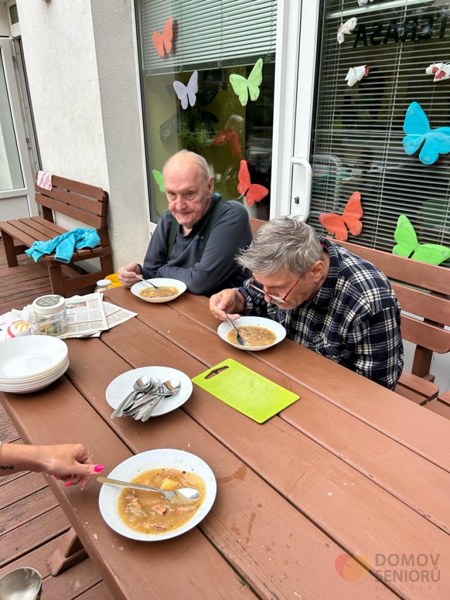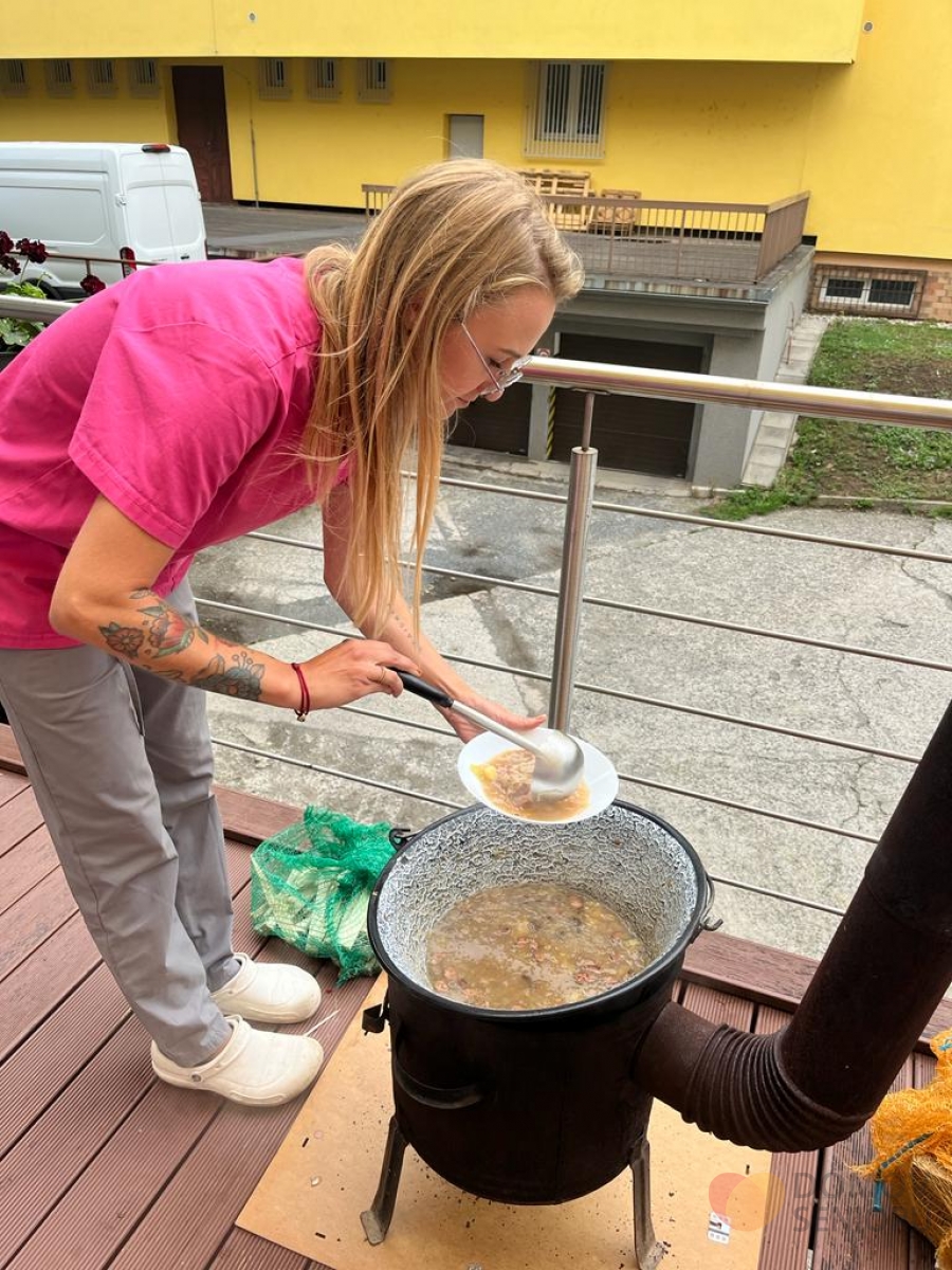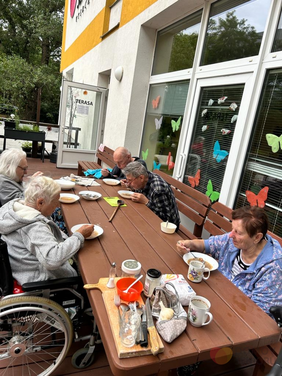 Za poslední dobu jsme si s klienty pěkně zamlsali. V horkém počasí jsme si vyrobili domácí zmrzlinové poháry. A v tom chladnějším jsme si připravili polívku zelňačku přímo v kotlíku na terase. Klienti se s radostí zapojili do příprav. A nechyběli ani tolik oblíbené bramboráky.