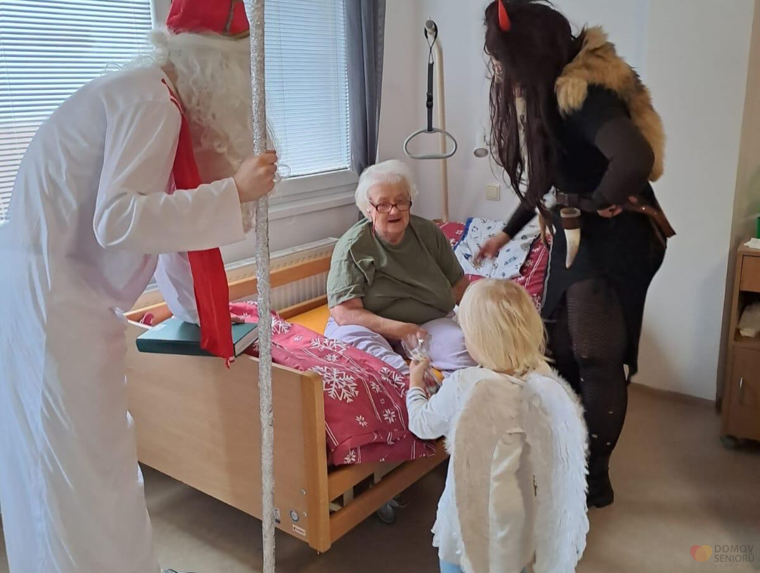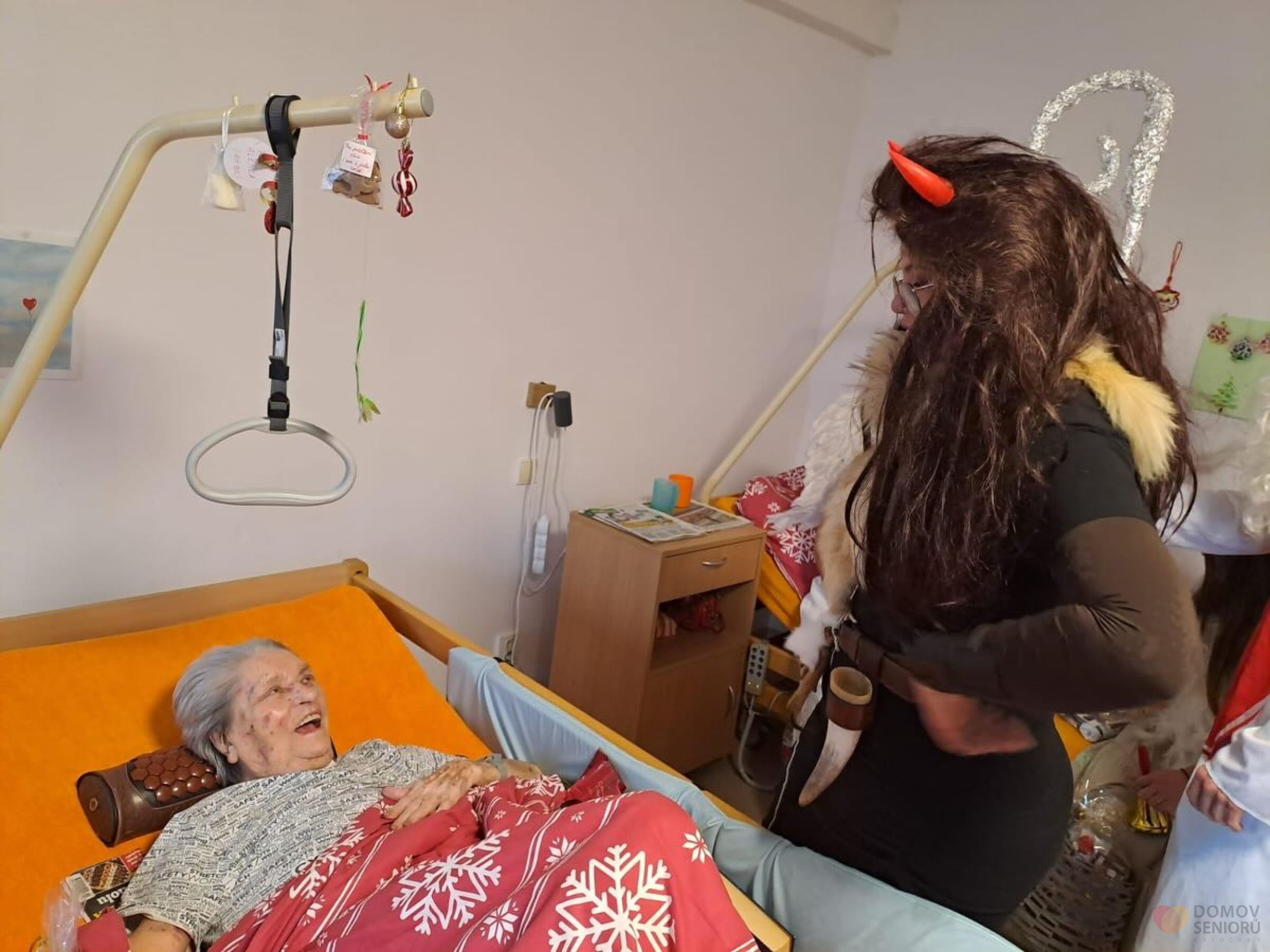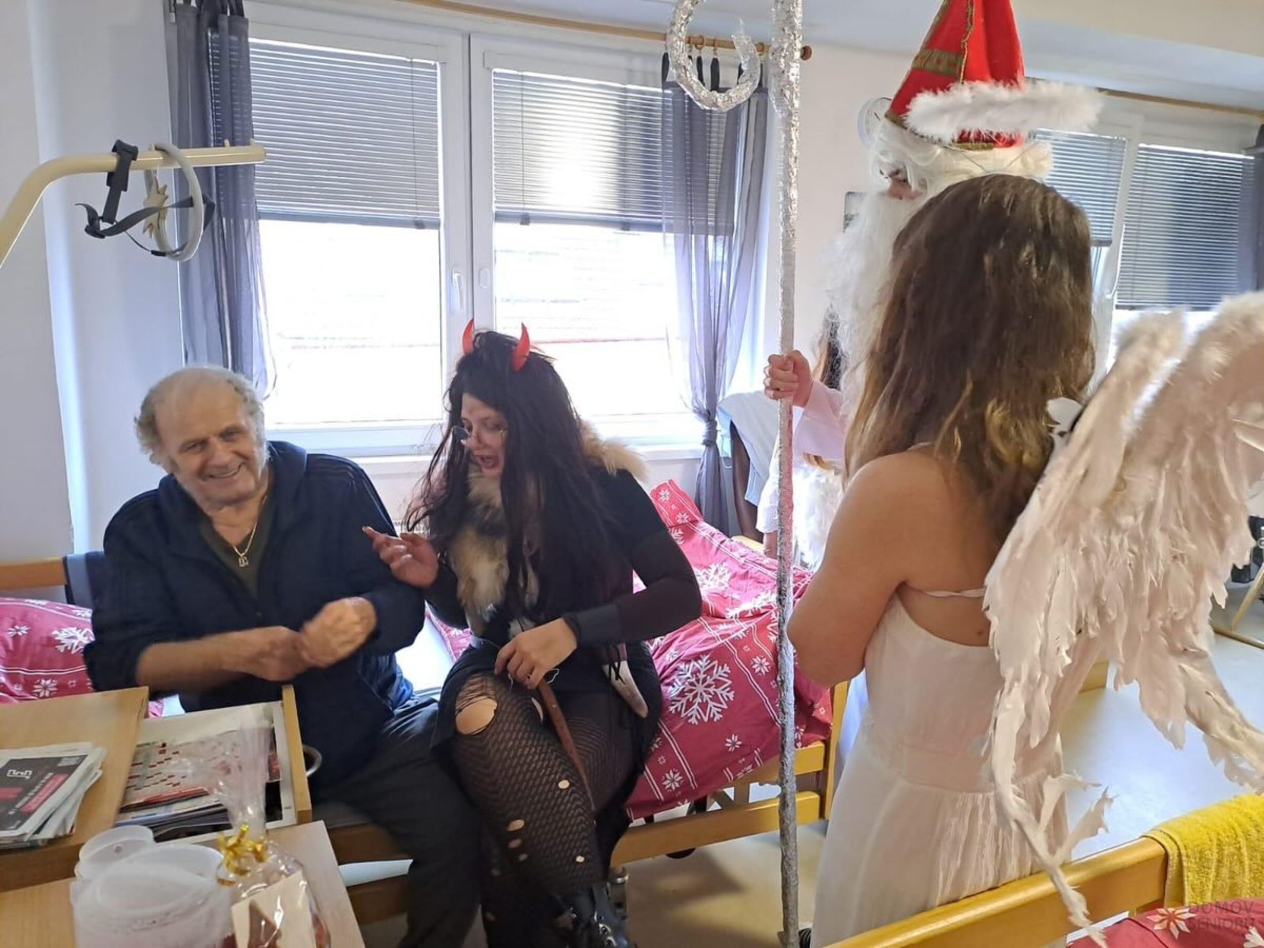 Aktivizační pracovnice se proměnily v Mikuláše, čerta i anděla a společně navštívily naše klienty, kteří dostali malé balíčky a užili si spoustu úsměvů. Celé dopoledne provázelo společné zpívání koled a krásná vánoční atmosféra.