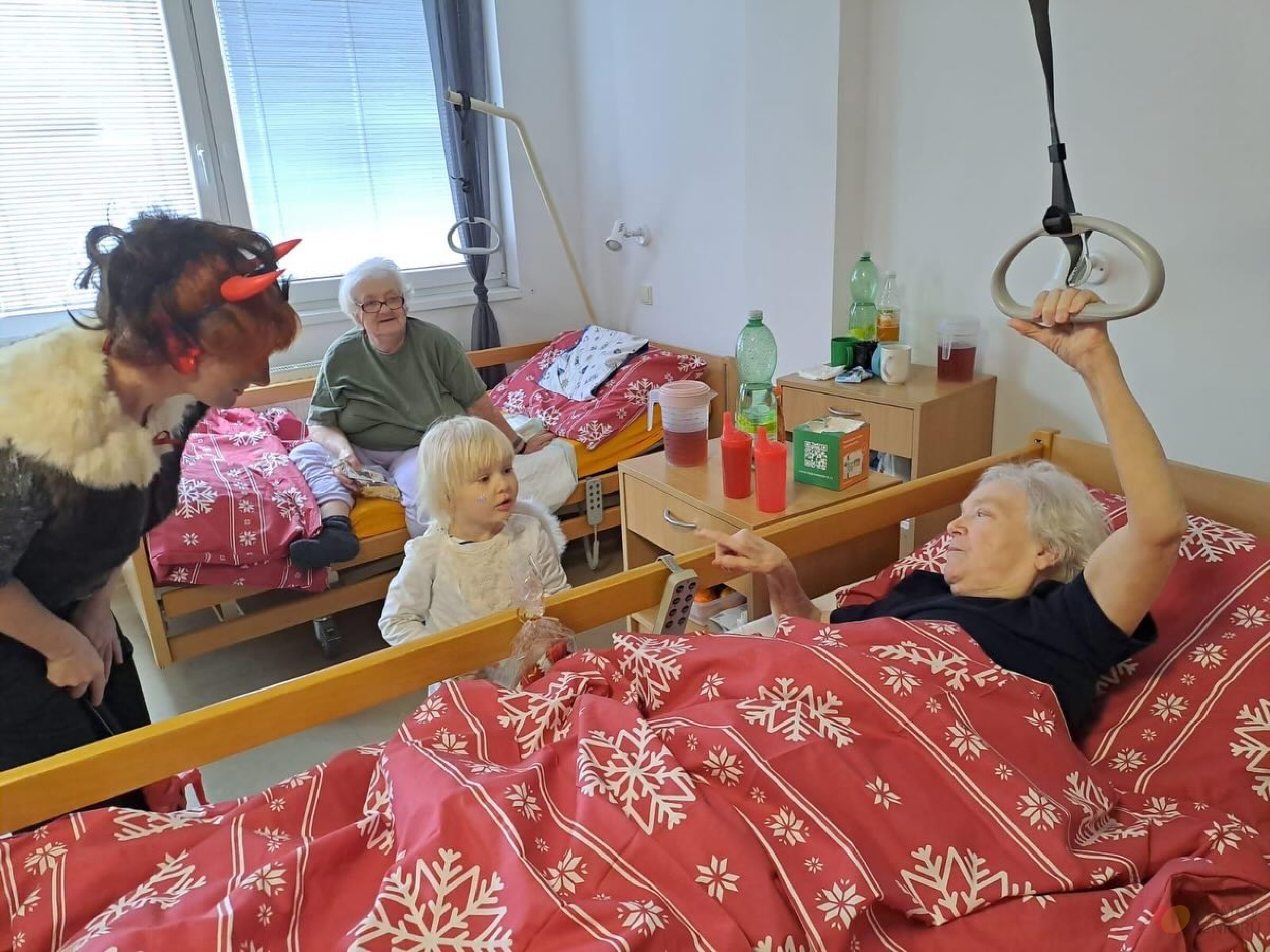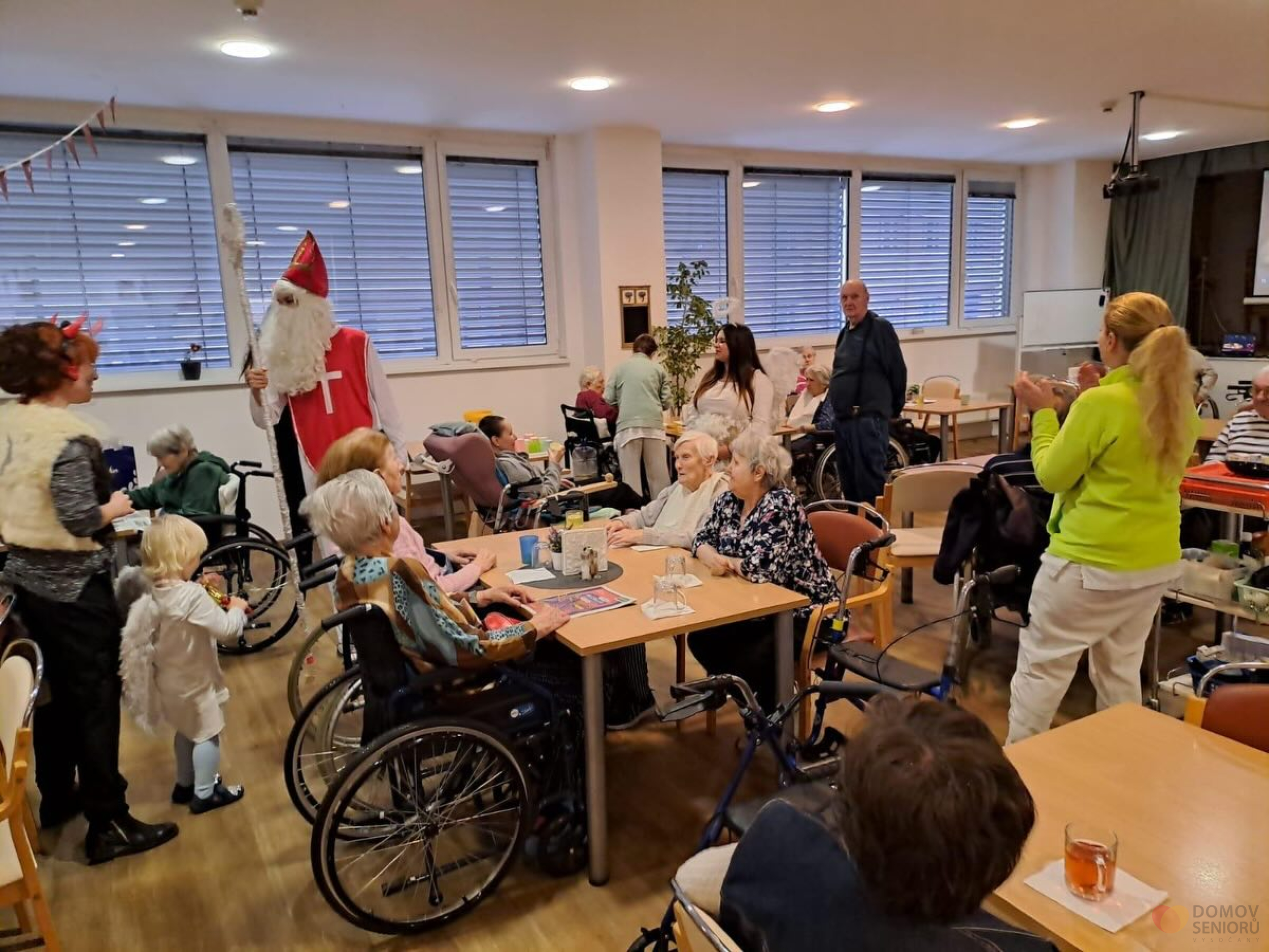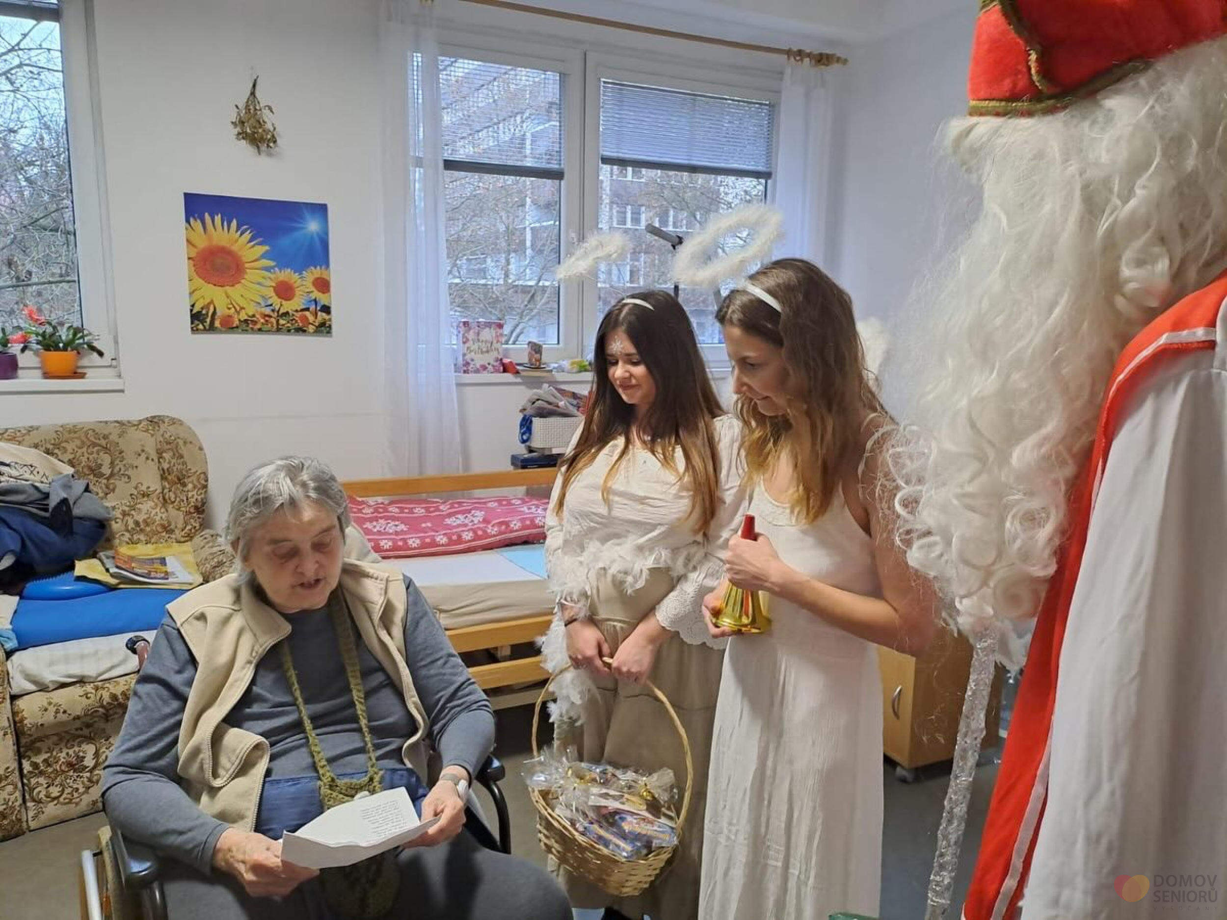 Aktivizační pracovnice se proměnily v Mikuláše, čerta i anděla a společně navštívily naše klienty, kteří dostali malé balíčky a užili si spoustu úsměvů. Celé dopoledne provázelo společné zpívání koled a krásná vánoční atmosféra.