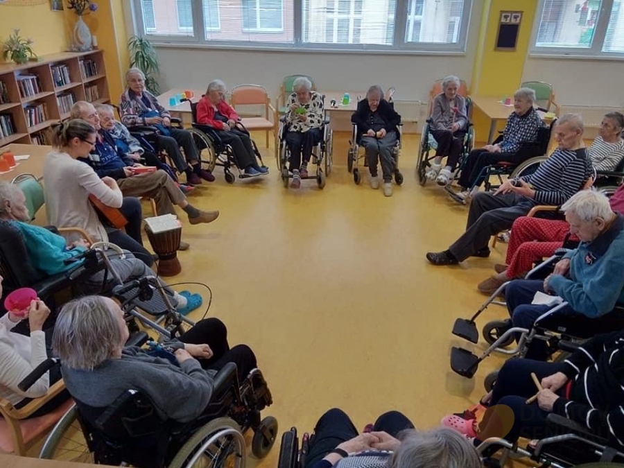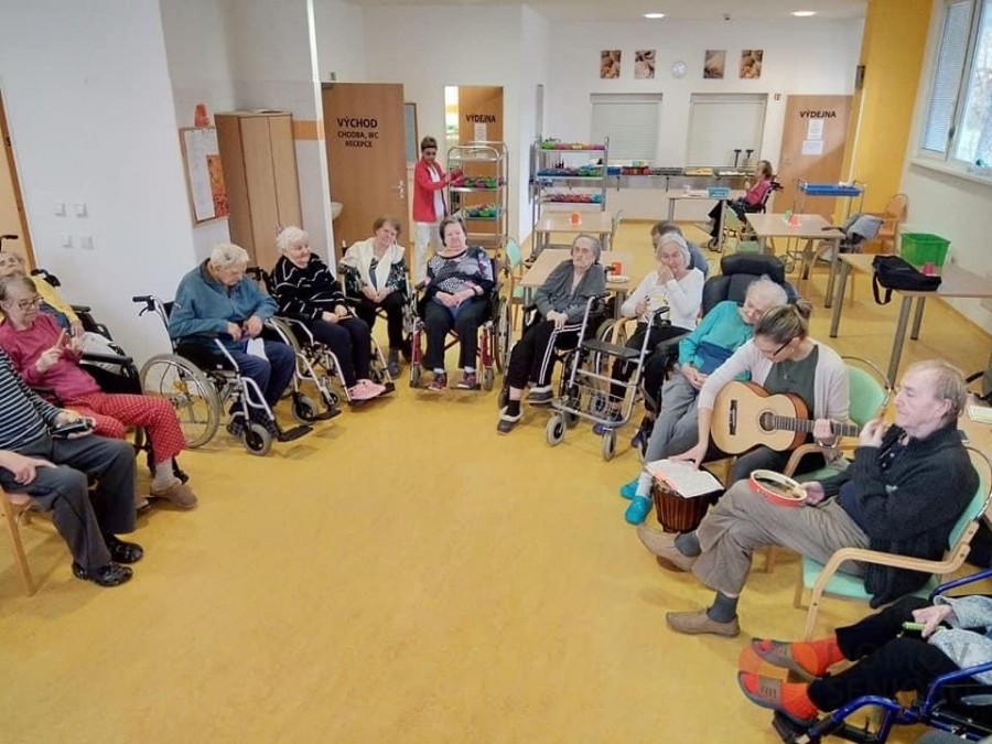 Do dalšího týdne vystartovali naši klienti v rytmu hudby. Muzikoterapie pod vedením paní Jindry měla opět úspěch.