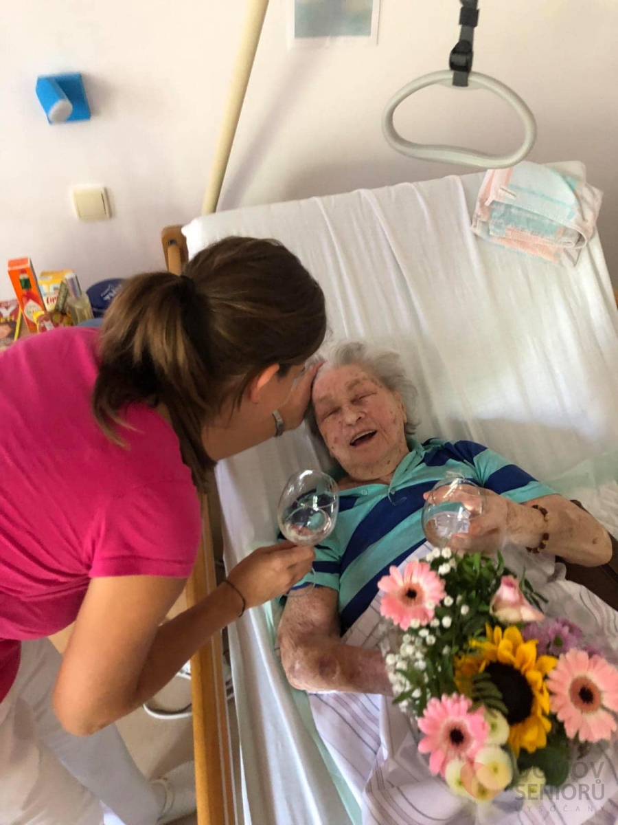 V červenci a srpnu jsme oslavili narozeniny všech klientů narozených v těchto letních měsících. Oslavy se konala za velké účasti i ostatních klientů. Nechyběl hudební doprovod. Klienty jsme také navštívili na jejich pokojích s občerstvením. A tam jsme oslavili i jedno velké jubileum, 100 let naší klientky.