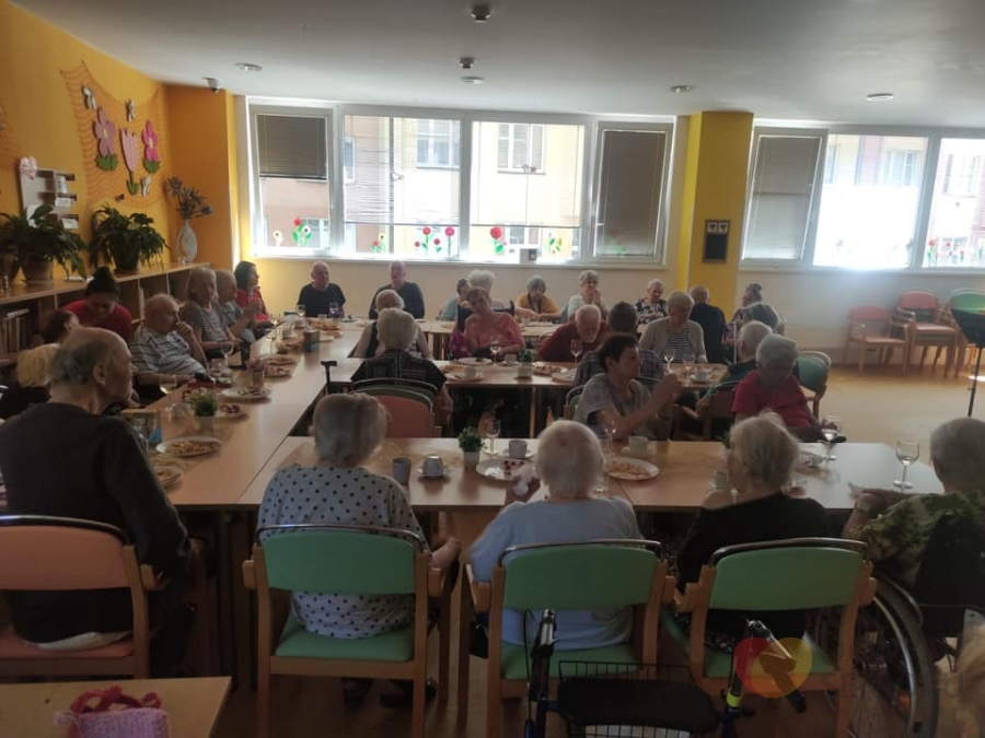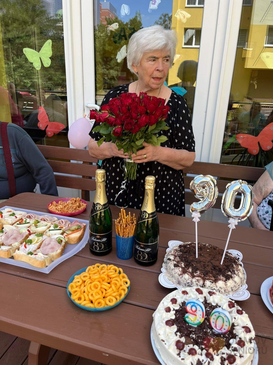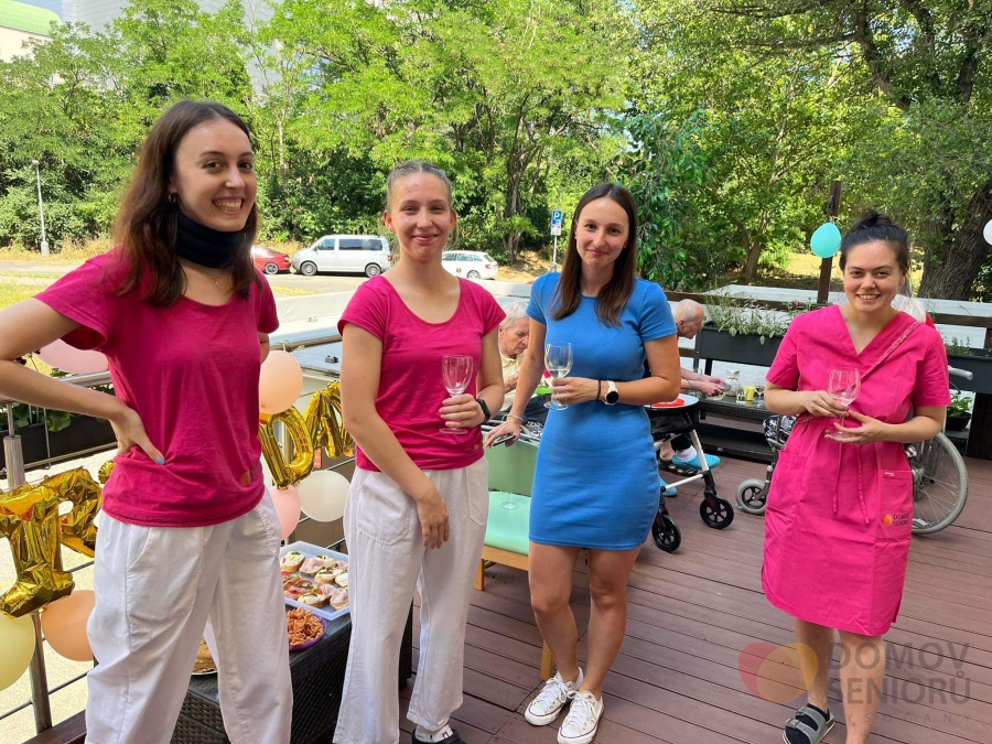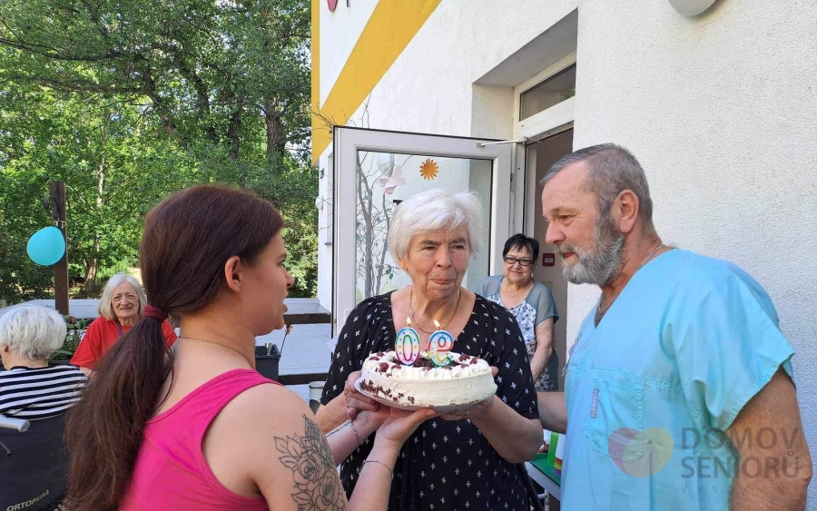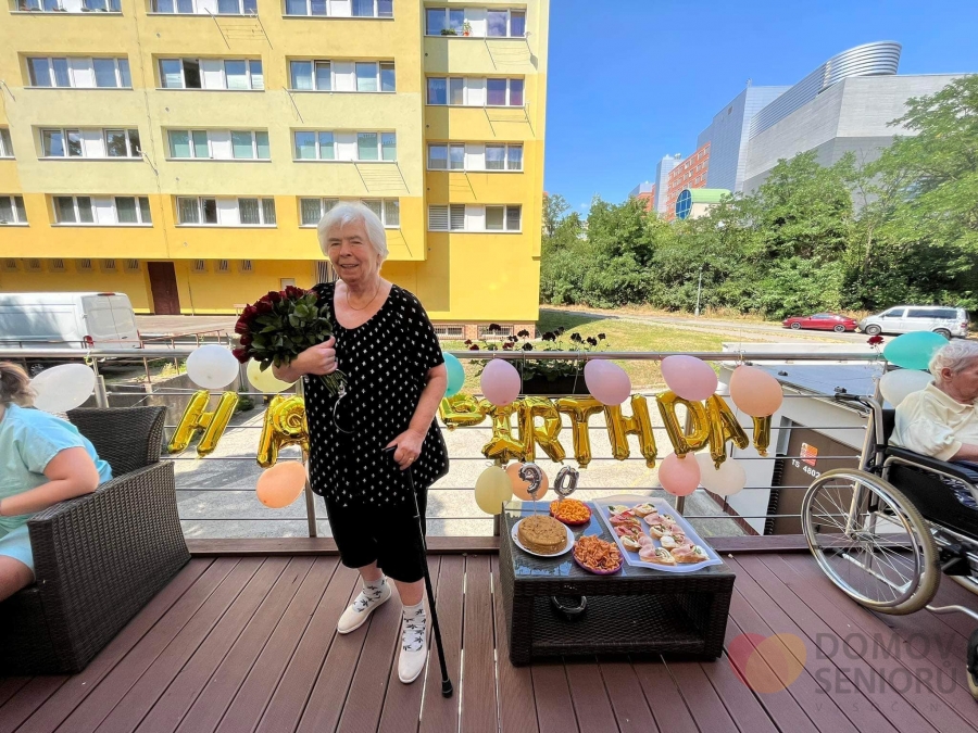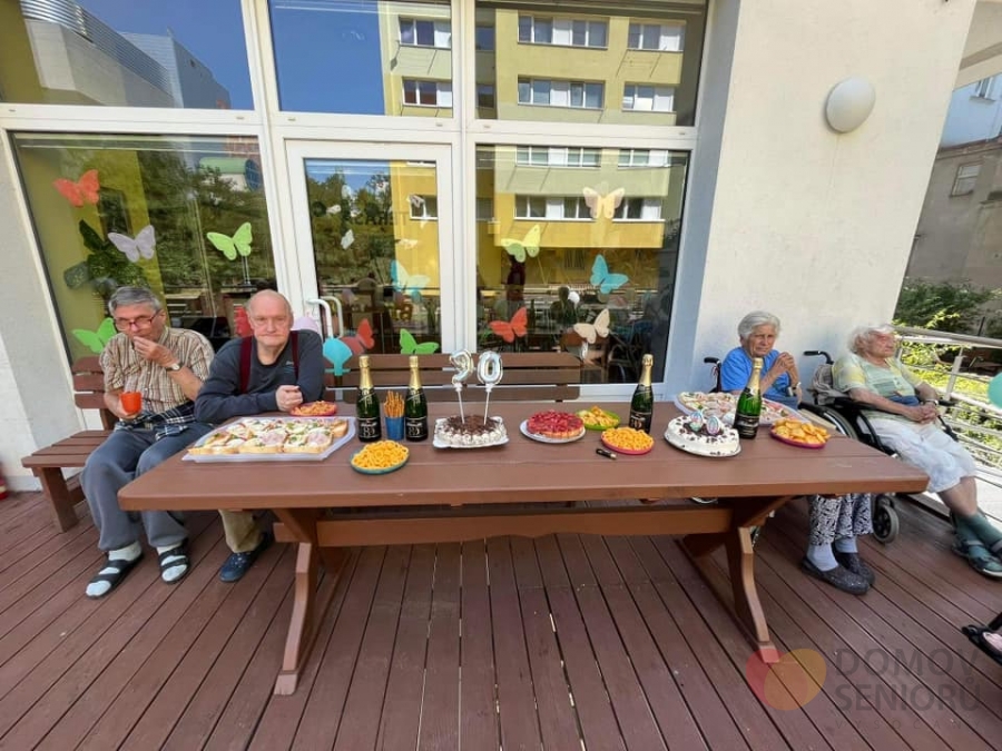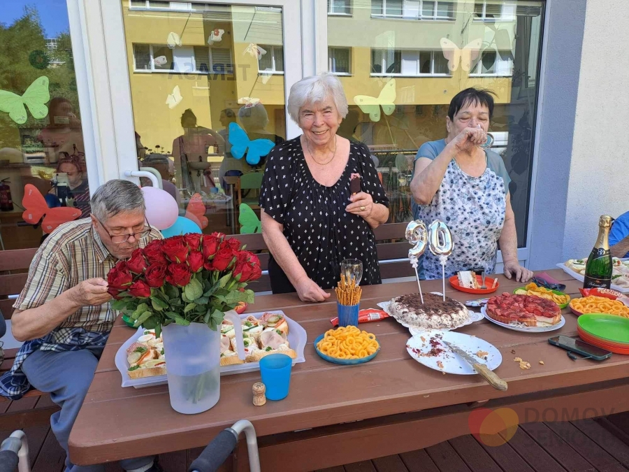 Jako každý měsíc, ani ten minulý nechyběla v našem Domově oslava narozenin. Nechybělo ani občerstvení, dárečky a živý hudební doprovod. A v červenci jsme oslavili i jedno krásné jubileum. Naše klientka paní Jiřinka oslavila krásných 90 let. Oslava se konala na terase za účasti ostatních klientů a personálu.