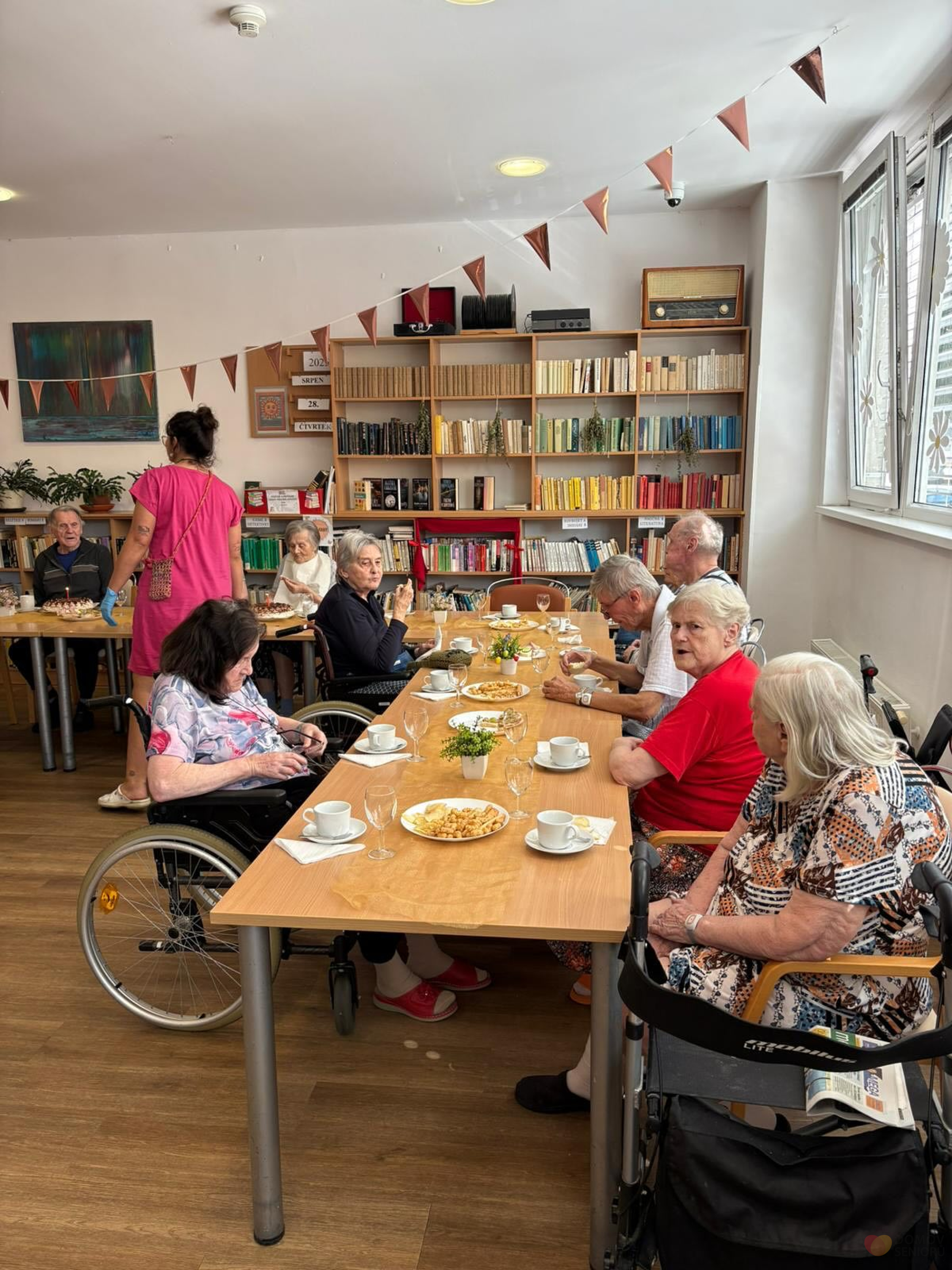 Jako každý měsíc i v srpnu jsme oslavili s klienty narozeniny všech, kteří se v tomto měsíci narodili. Tentokrát jsme slavili i velmi vzácné narozeniny, a to 102 let naší klienty. Oslava probíhala za účasti dalších klientů, při dobrém jídle a pití. Nechyběla ani huba a tanec.