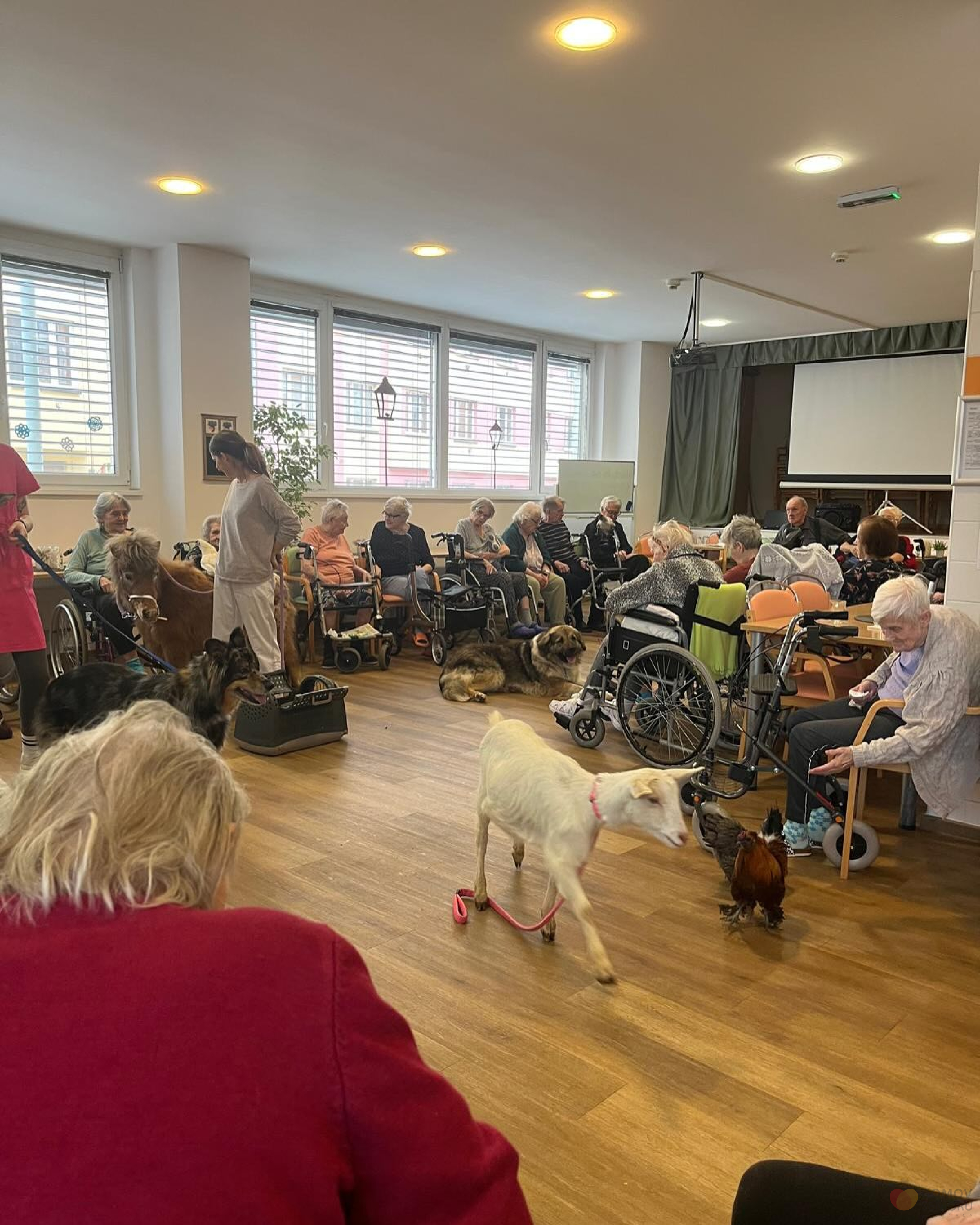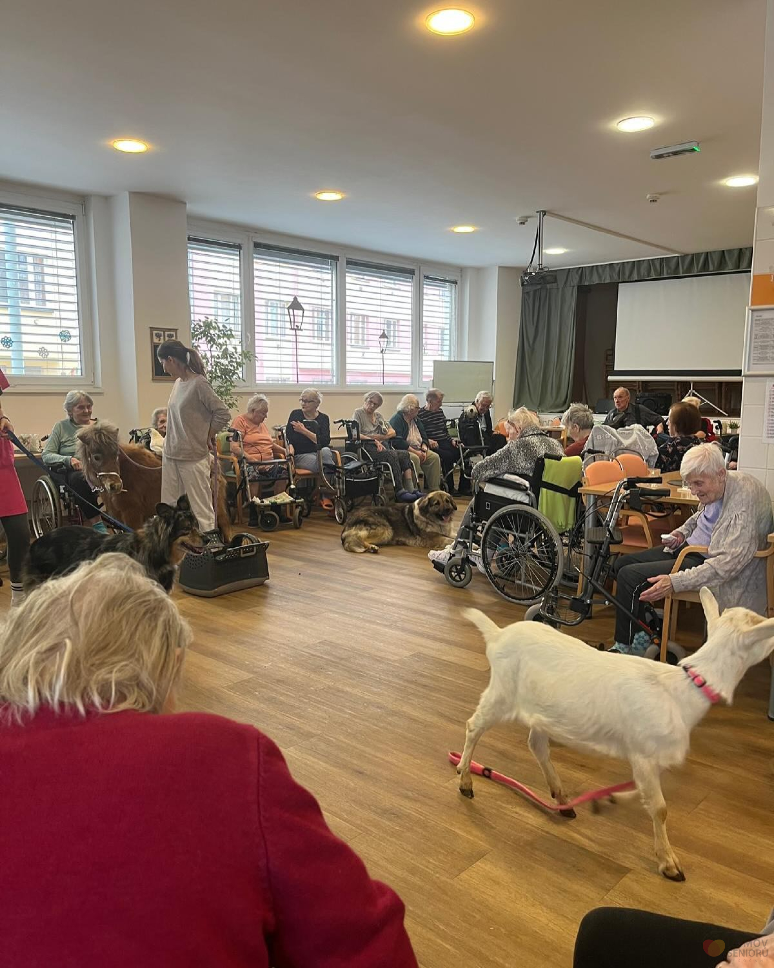 Tento měsíc k nám přišla roztomilá zvířátka z farmy – koza a poník. Koza byla velmi zvědavá a hledala, co by kde snědla. Poník byl klidný a přátelský, trpělivě se nechal hladit.