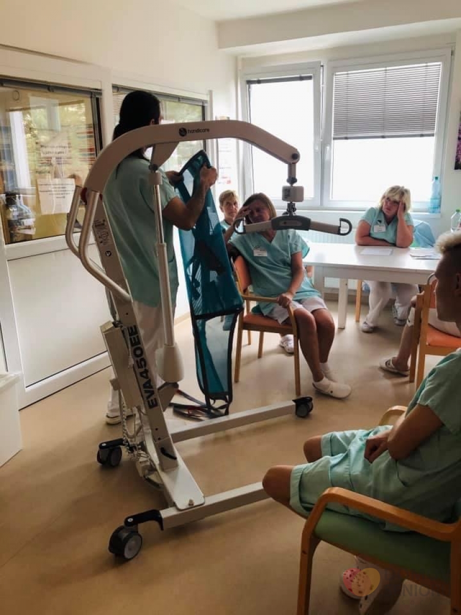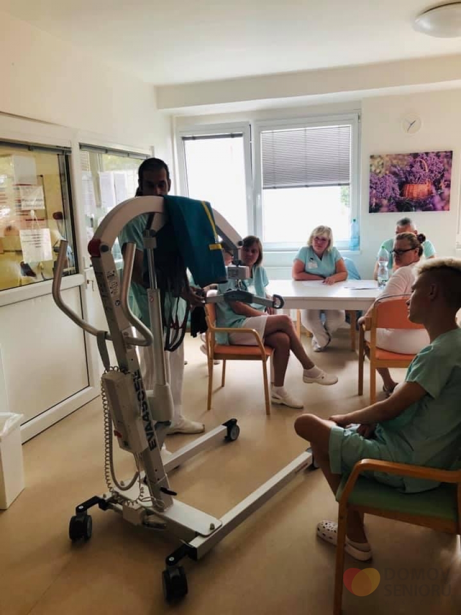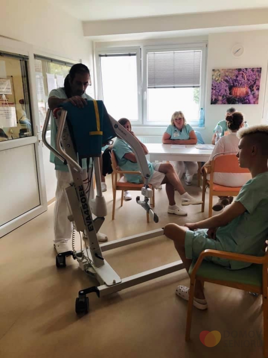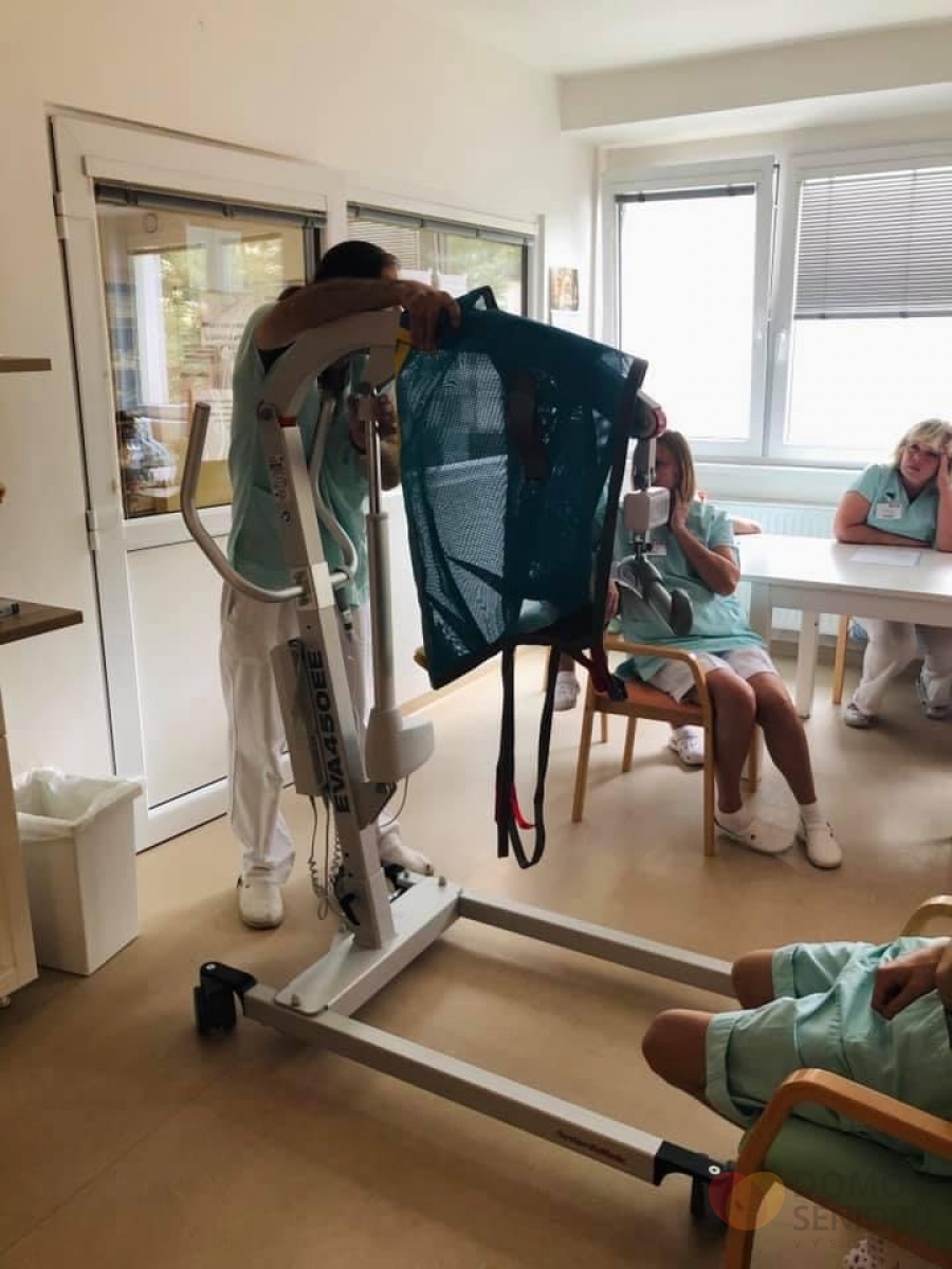 Jedná se o zvedací zařízení od firmy MSM značky Handicare. Při koupi jsme se účastnili školení ohledně správné manipulace se zařízením. Nás pracovník přímé péče nakonec proškolil i všechny své kolegy. Děkujeme všem zaměstnancům za ochotu.