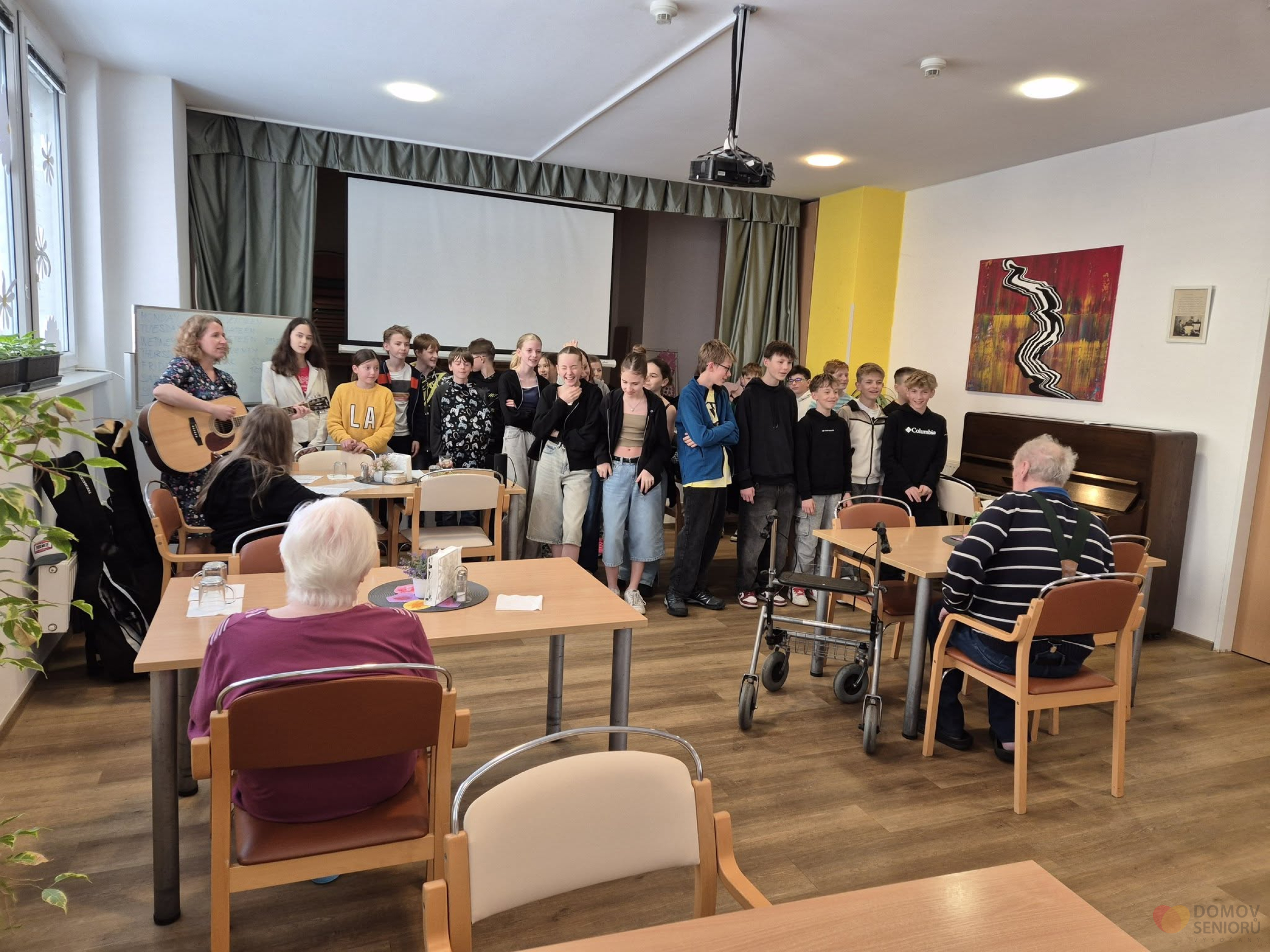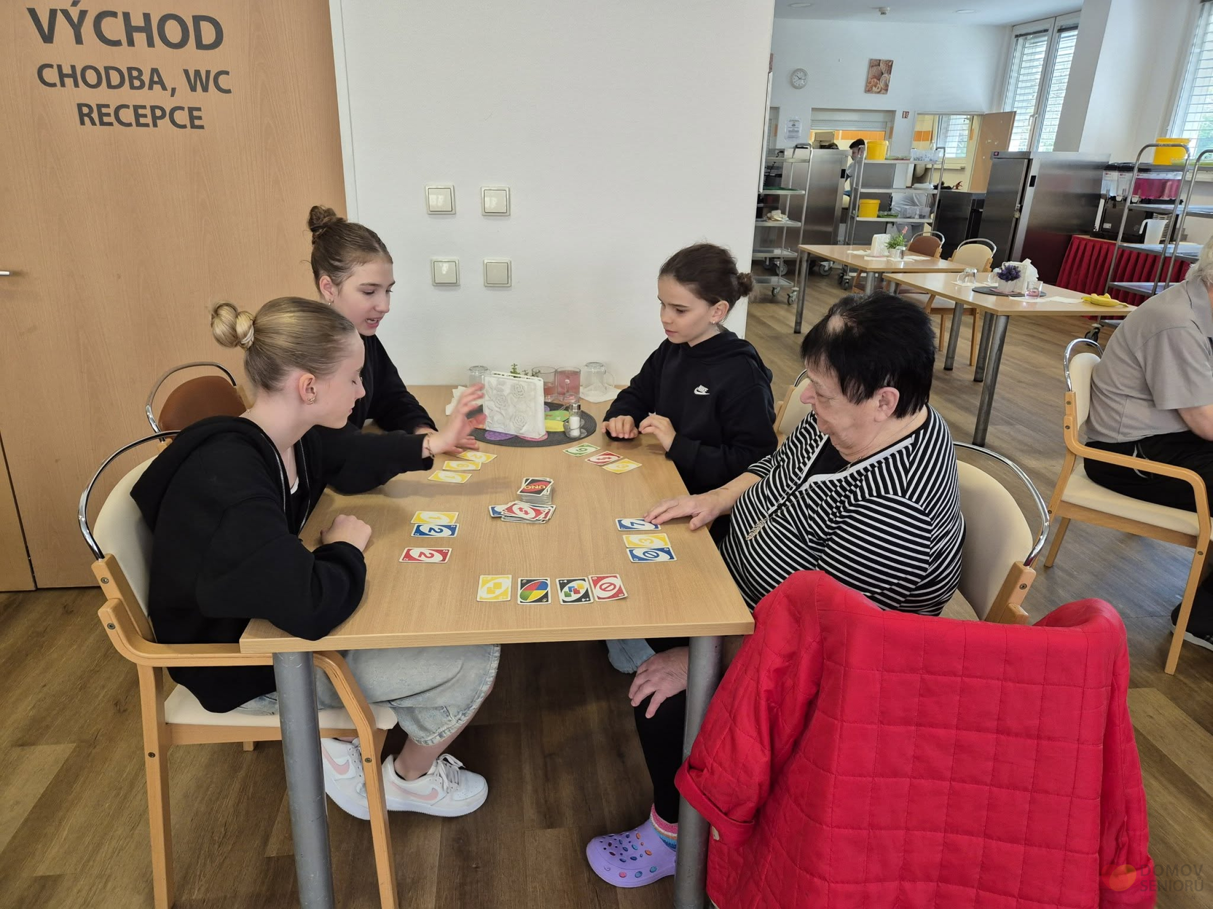 Dubnové #ObejmiHrou bylo tentokrát v režii žáků ze 6. A. Zazpívali, zatančili a samozřejmě zahráli deskovky a karetní hry. Šesťáci se věnovali seniorům z Domov seniorů Vysočany opět celou hodinu. Už teď se u nás těšíme na květen, kdy do domova zavítají čtvrťáci.