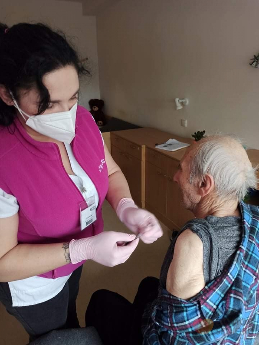 V našem Domově proběhlo další kolo očkování proti covidu-19 u nově příchozích klientů a zaměstnanců. Klienti byli naočkováni vakcínou Pfizer a čeká je ještě druhá vakcína. Očkování u všech proběhlo v pořádku.