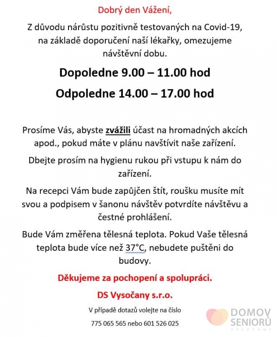 Domov seniorů Praha Vysočany › Články › Aktuality › Omezení návštěvní doby