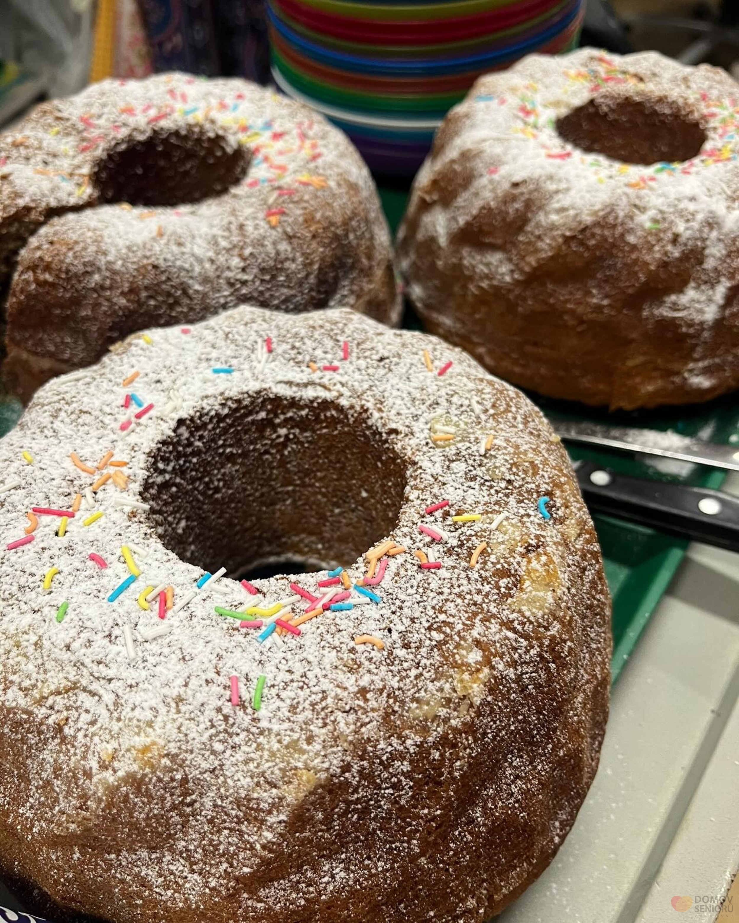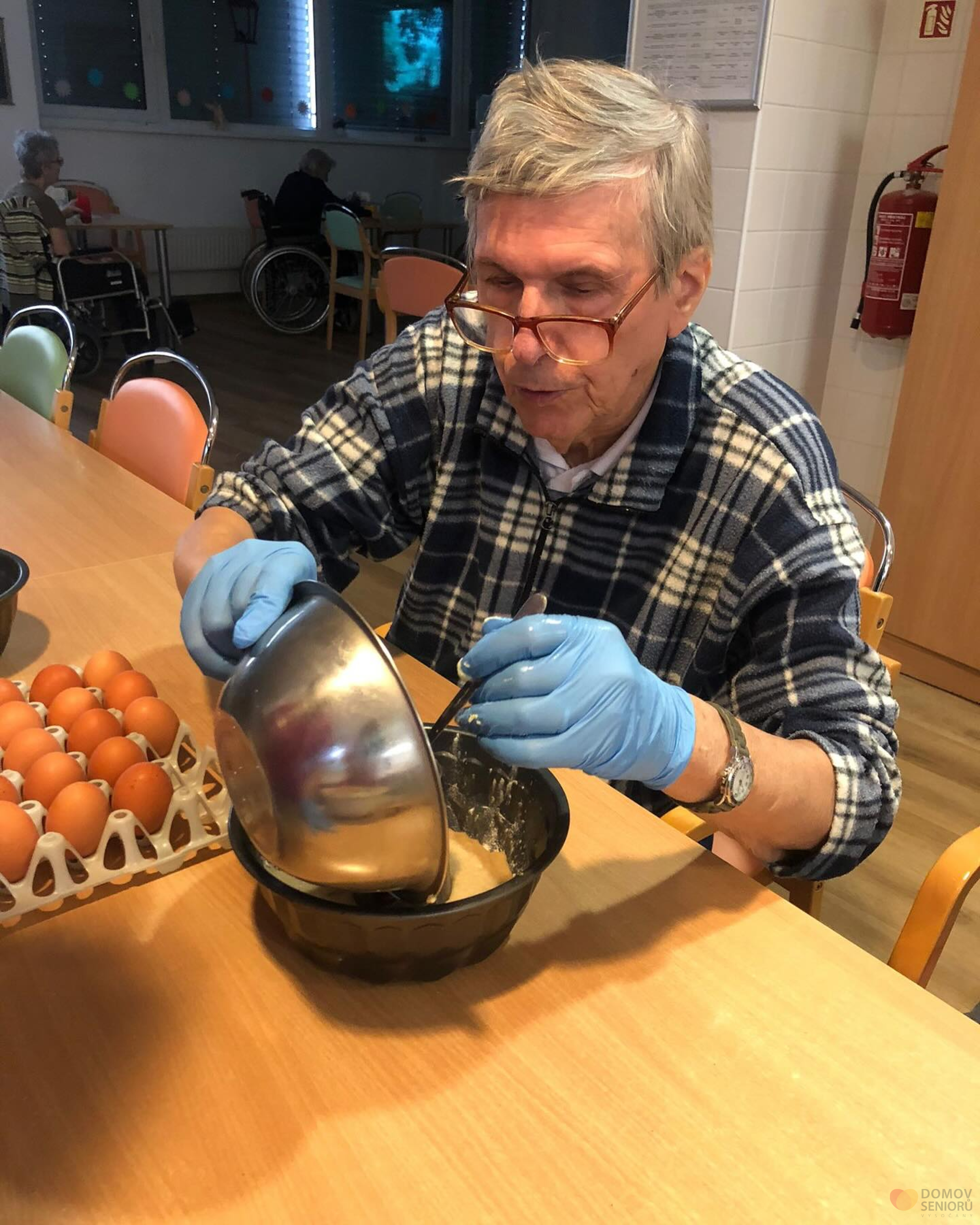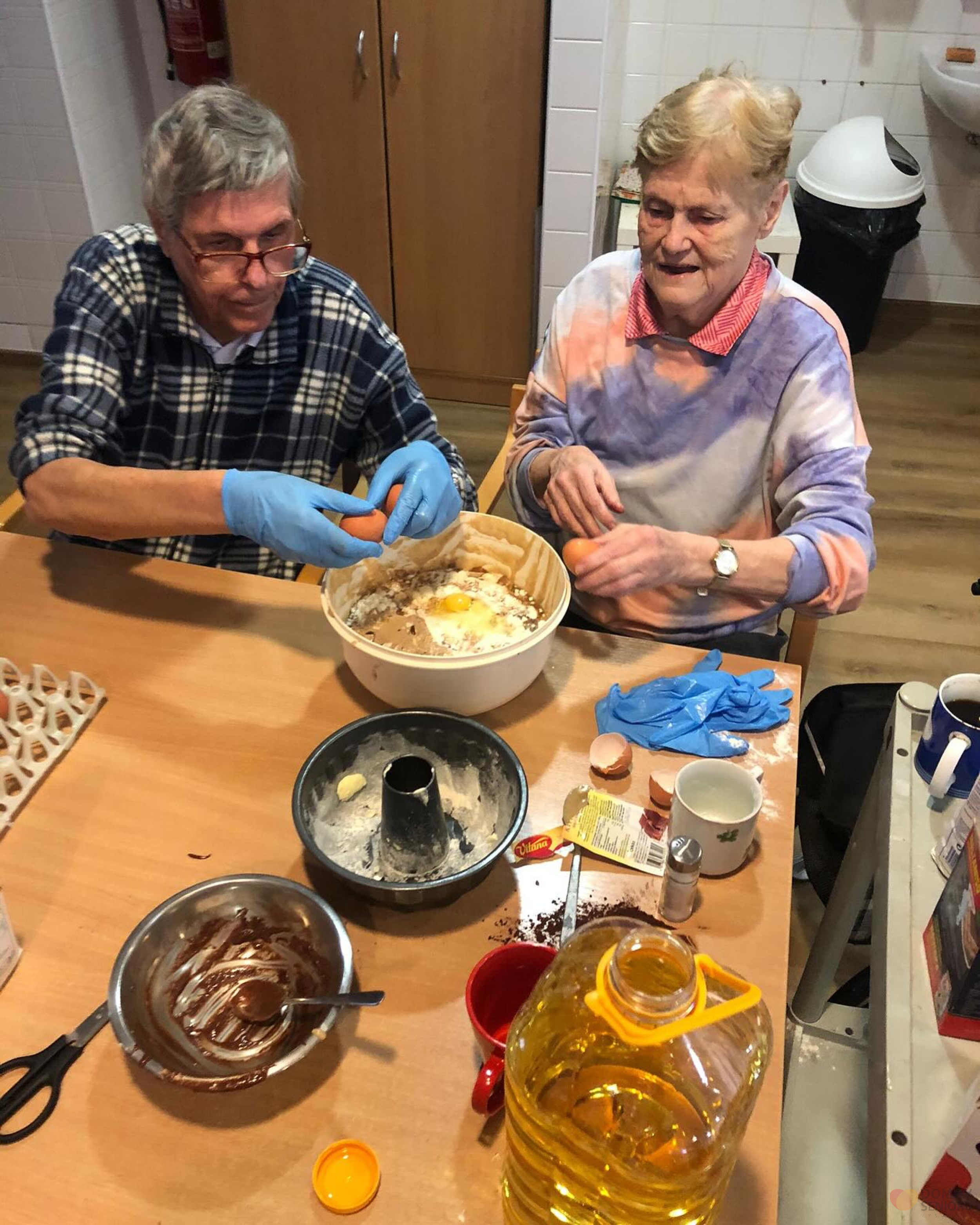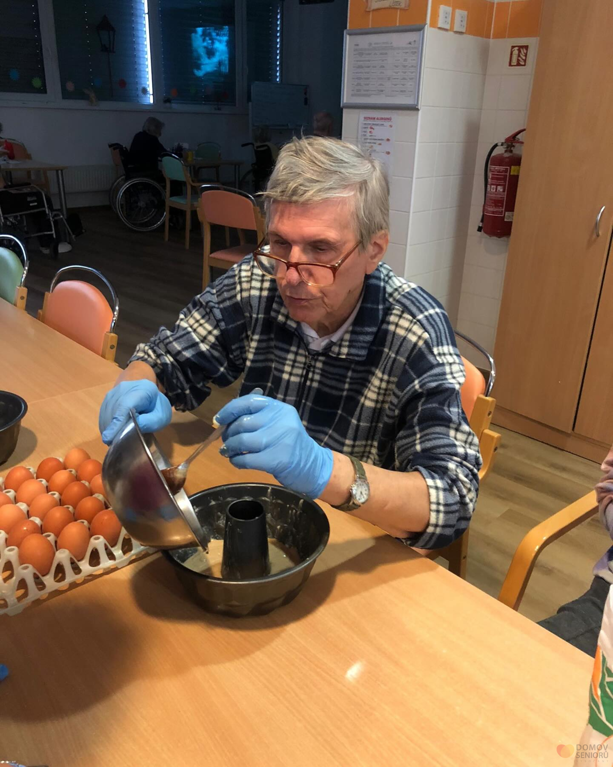 Při aktivitě kuchařské okénko se klienti plně zapojují do příprav nějaké dobroty. Tentokrát jsme se dali do pečení bábovek. A protože ne všichni klienti si mohou odskočit do společné místnosti na kávu, máme pro ně pojízdnou kavárnu. Kdy aktivizační pracovnice obcházejí jednotlivé pokoje a nabízí klientům kávu a neco dobrého k tomu. Bábovku si všichni pochvalovali.