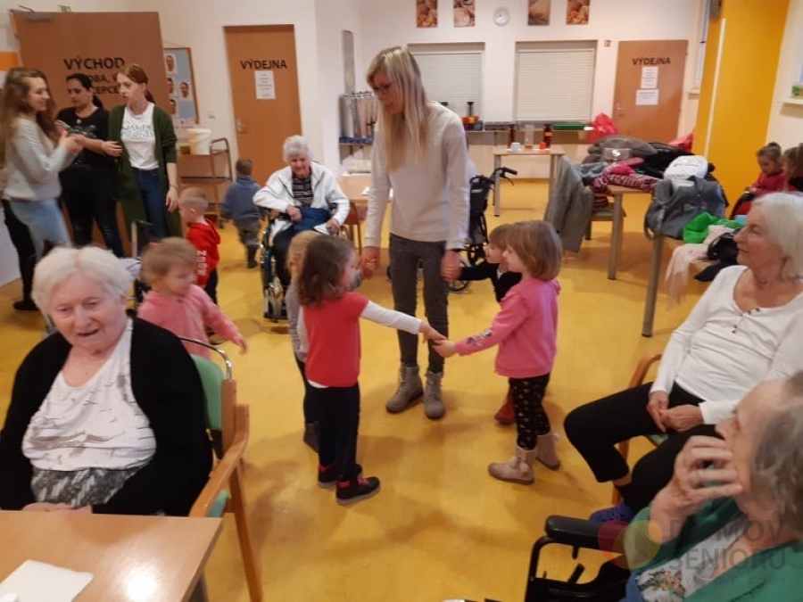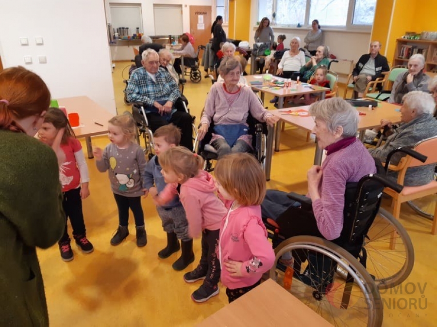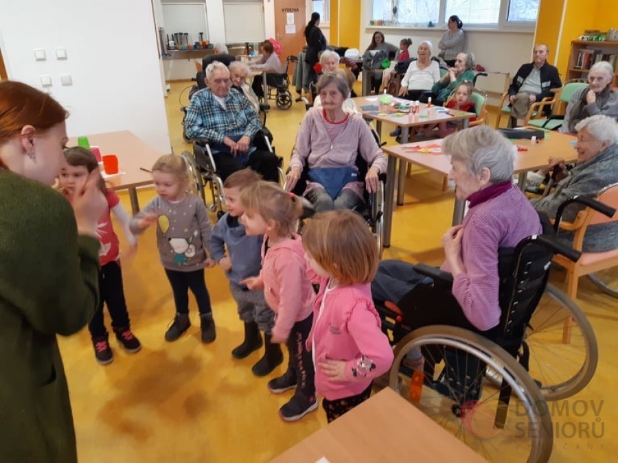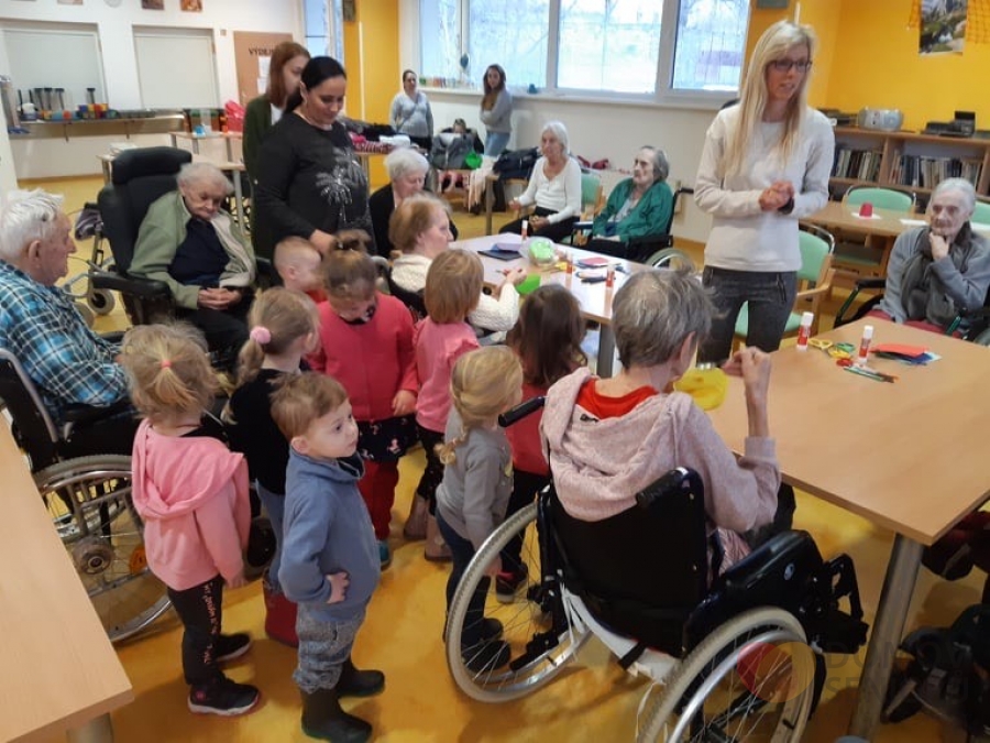 Společné tvořivé hry a zpívání s dětmi z mateřské školky Smíšek.