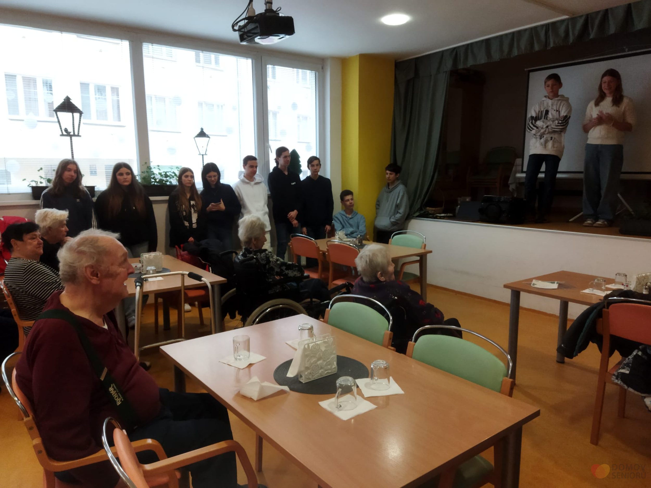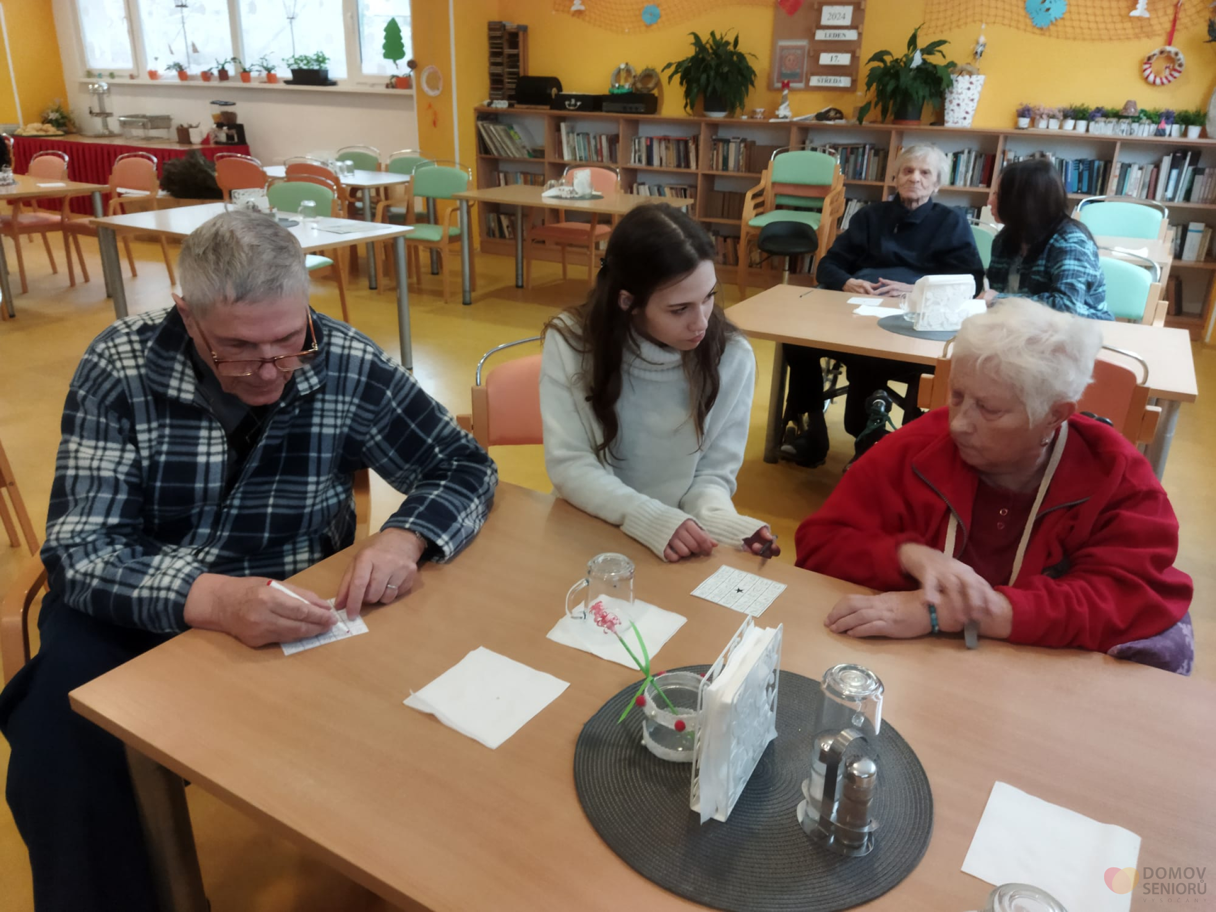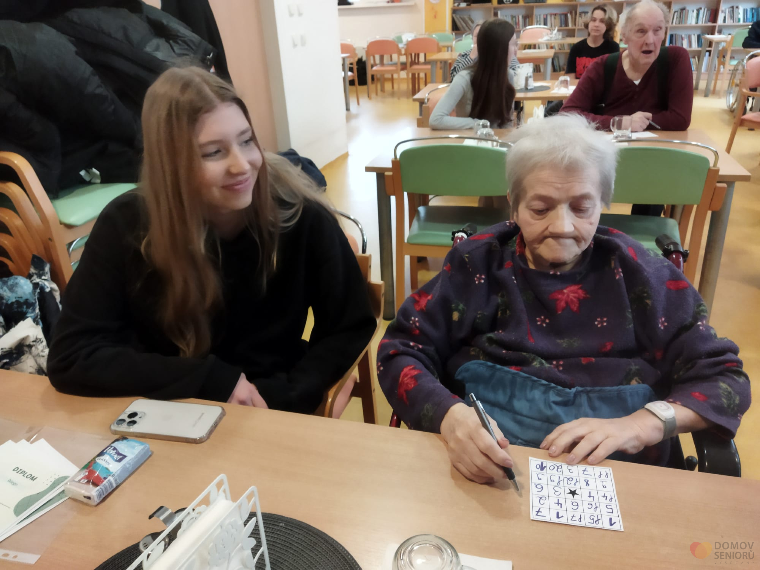 Ve středu 17. ledna zajela třída 9.D do Domov seniorů Vysočany. Protože žáky čeká výběr střední školy, povídali si se seniory o jejich studiu a zaměstnáních, která vykonávali. Debata se pak tematicky stočila na štěstí ve hře, výhry a sázky. Na programu totiž byla hra Bingo. Výherci byli odměněni ručně vyrobenými diplomy. No a samozřejmě došlo i na oblíbené hraní deskových her.