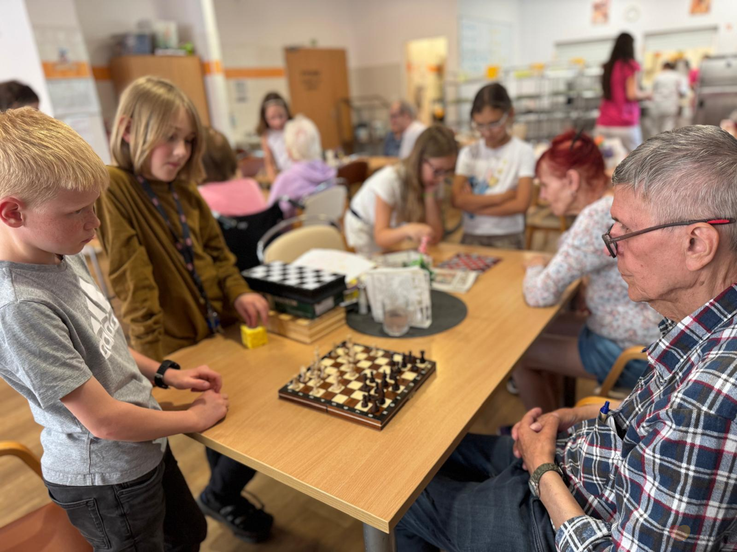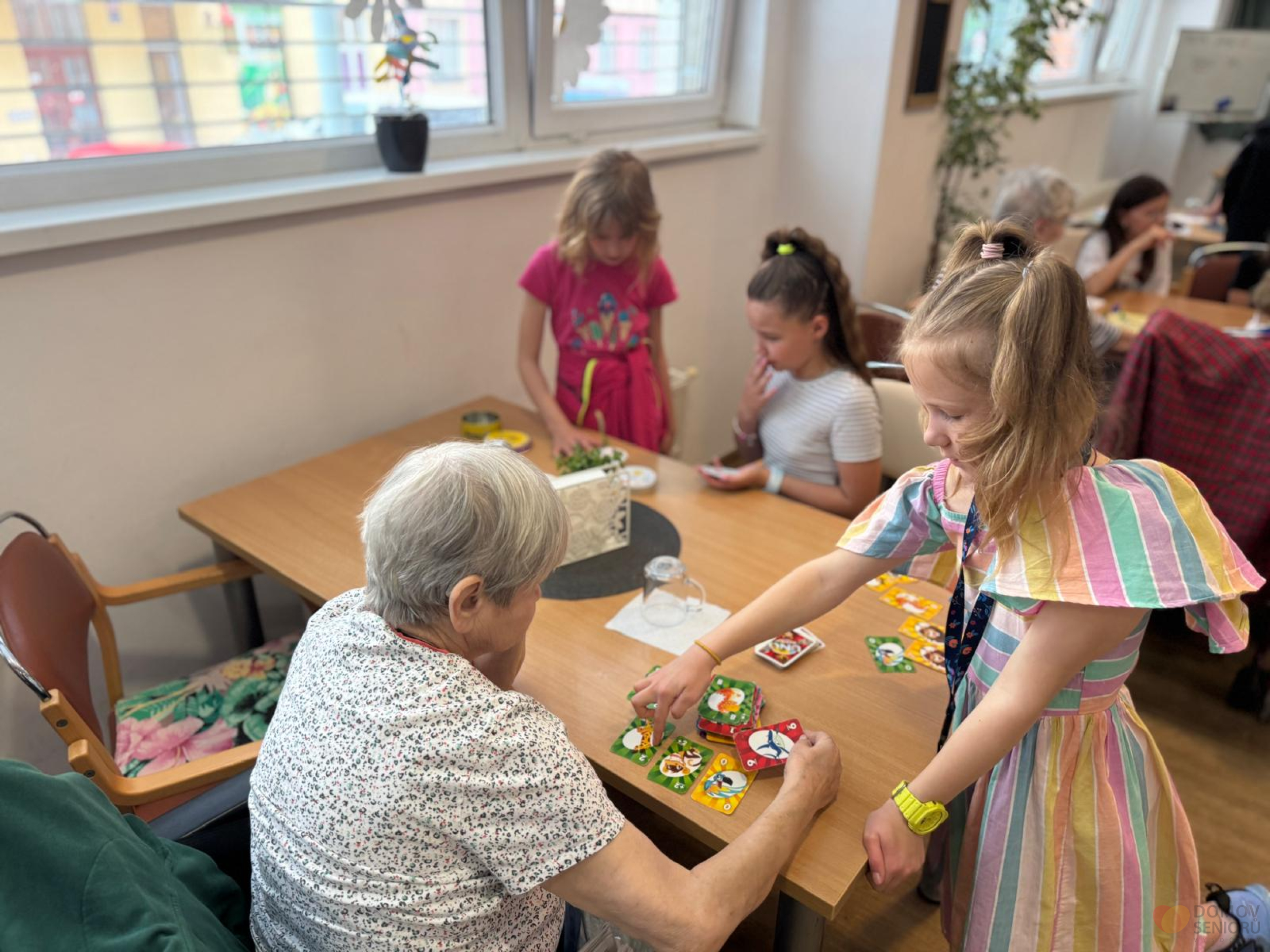 V květnu se projekt Obejmi hrou neuskutečnil, proto se děti a senioři v tomto měsíci uvidí 2x. Dne 4. června zajela do Domov seniorů Vysočany třída 4. C. Ta si připravila pro klienty čtení úryvků z knihy Babička, následně pak děti společně zapěly Grónskou písničku - na flétnu hrála Zita Puhalla a na kytaru Dominik Celler.