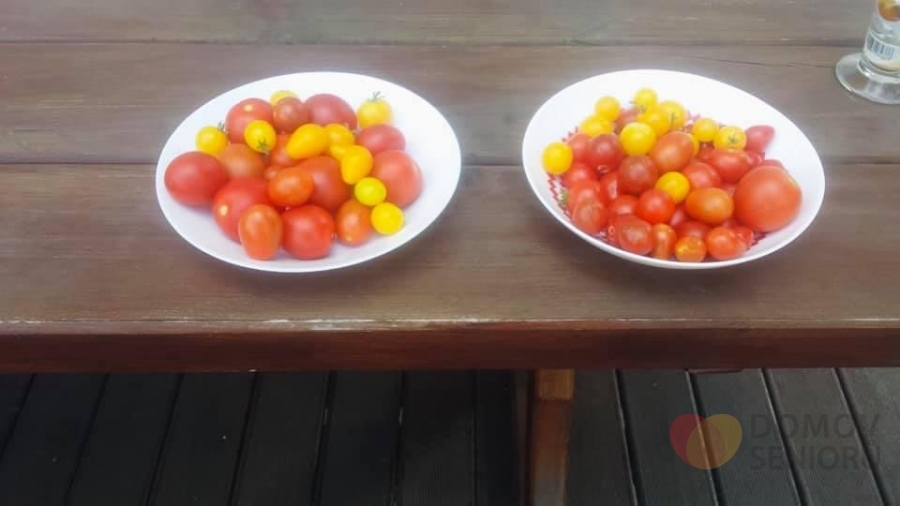 Naše úroda rajčátek z vlastní zahrádky.Děkujeme našim klientům za pomoc při zahradničení.