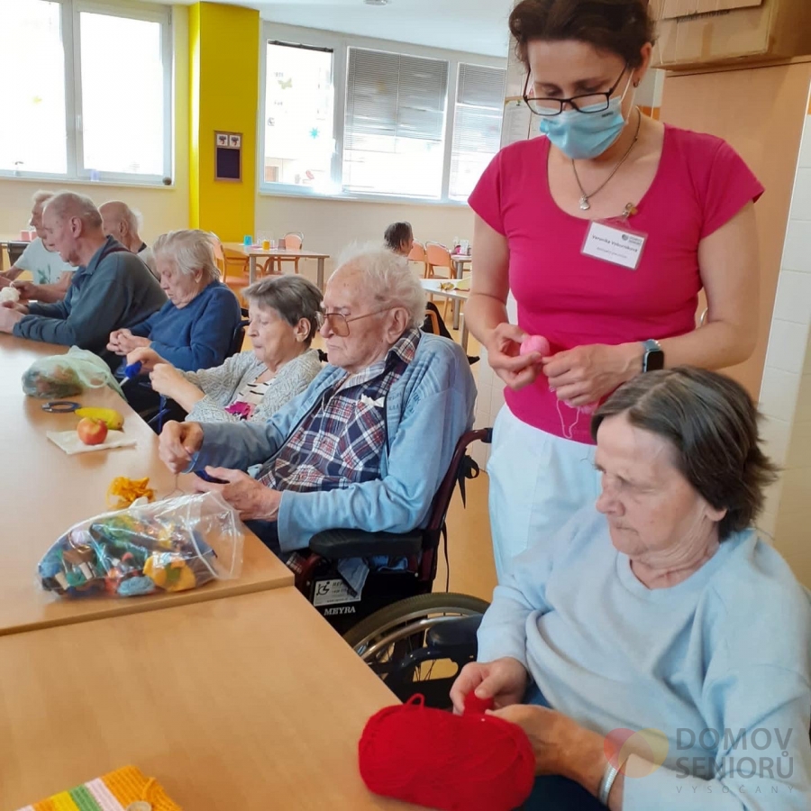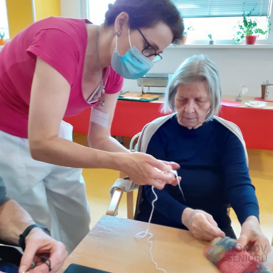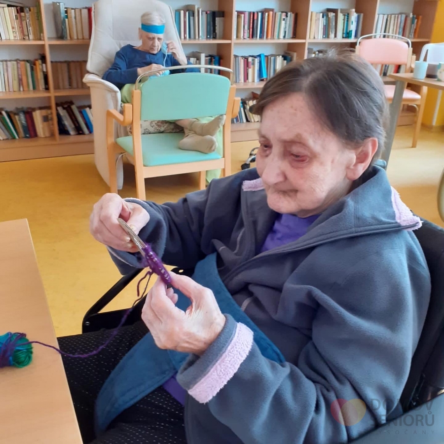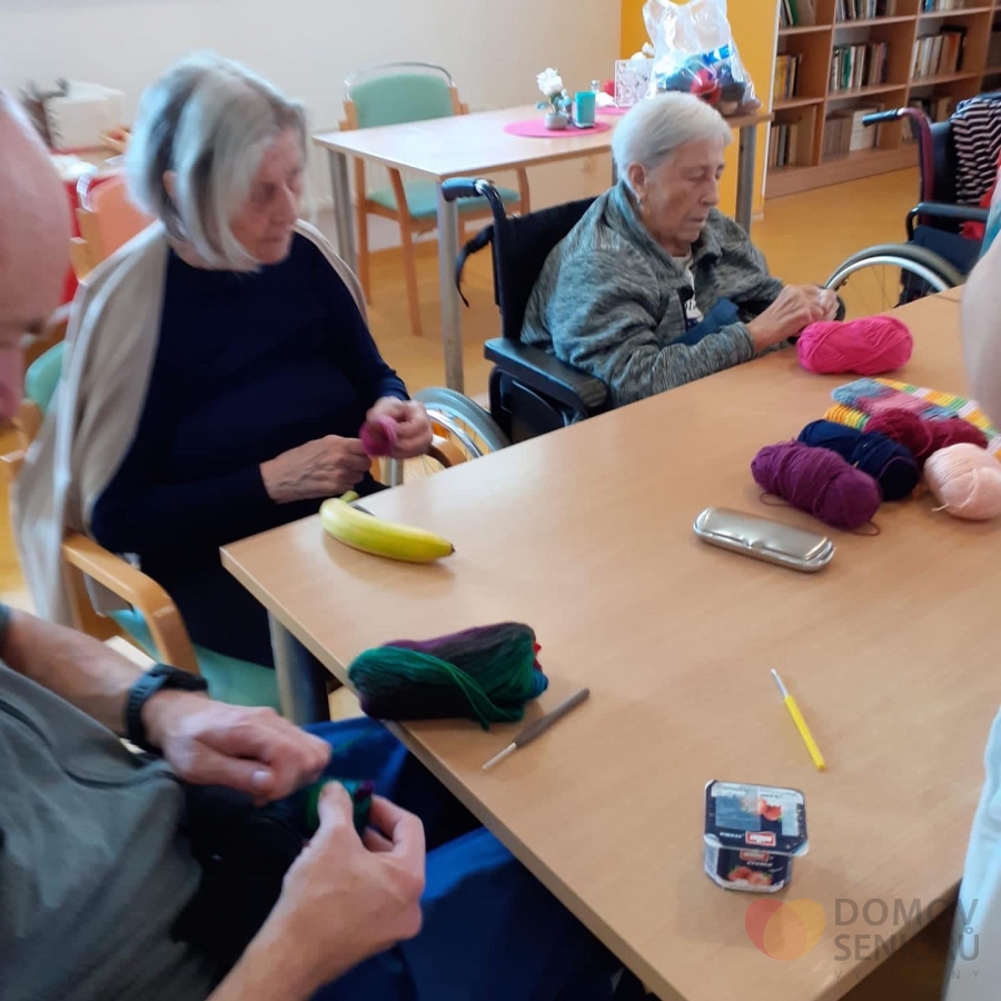 S klienty jsme se dali do háčkování. Při této činnosti si procvičí jemnou motoriku, připomenou si činnost, kterou většina z klientek dělala dříve a s pomocí našich aktivizačních pracovnic si něco hezkého vyrobí.