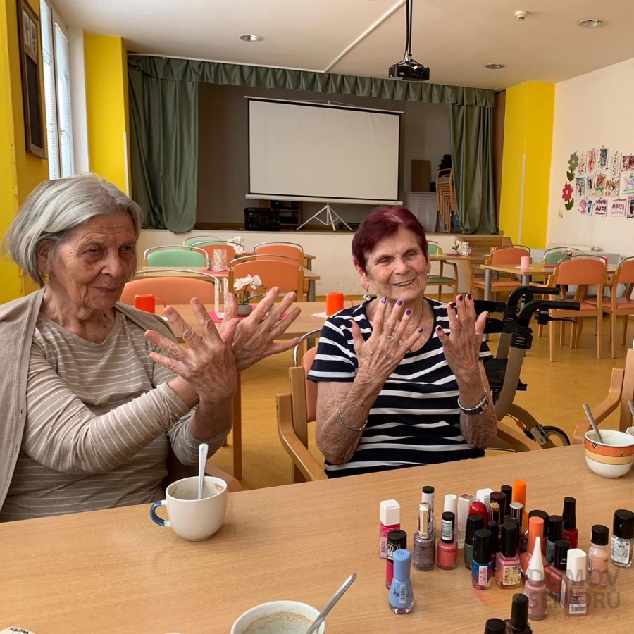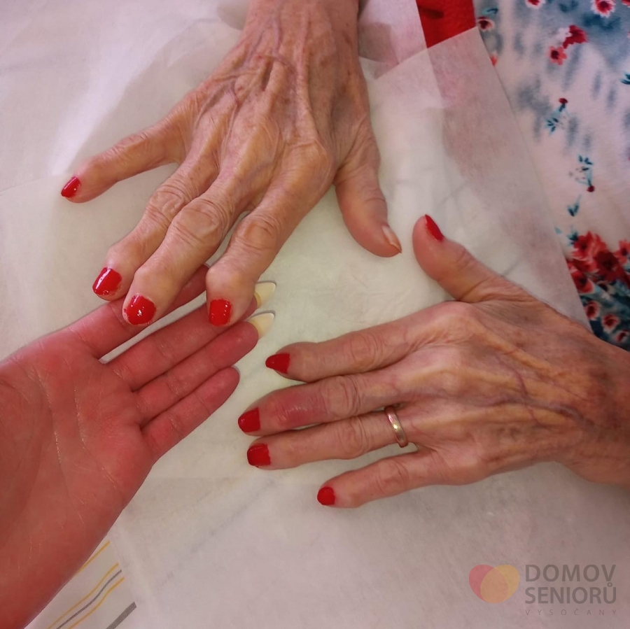 Aby se naši klienti cítili dobře, snažíme se jim dopřát veškeré zkrášlovací služby, na které byli dříve zvyklí. Proto k nám chodí pravidelně kadeřnice, paní pedikérka a v rámci dámského klubu klientkám děláme manikúru a lakujeme nehty.