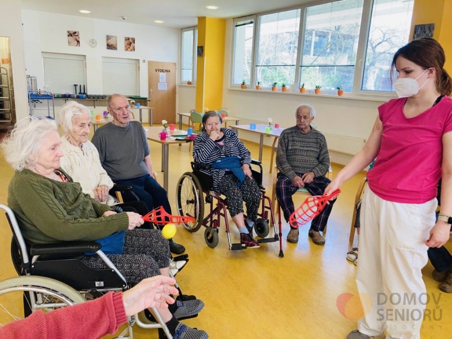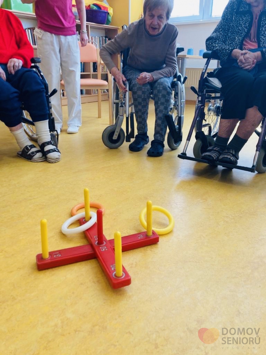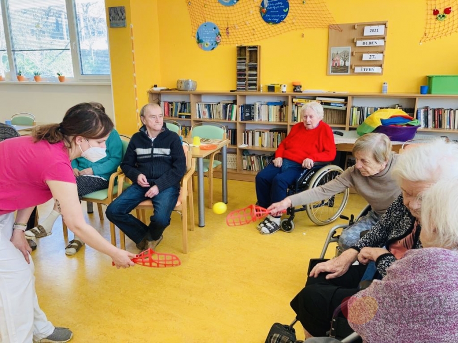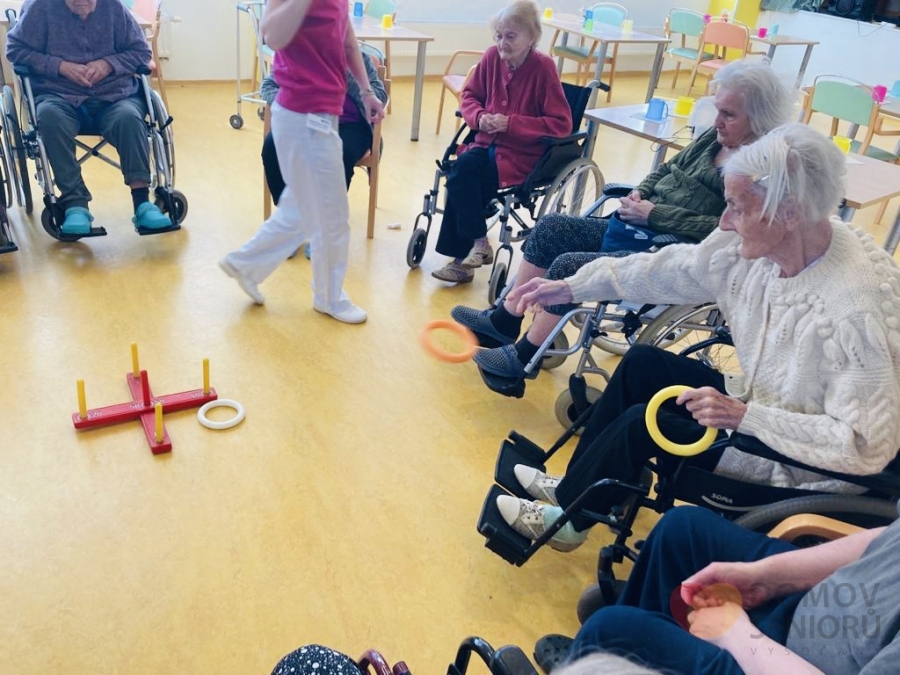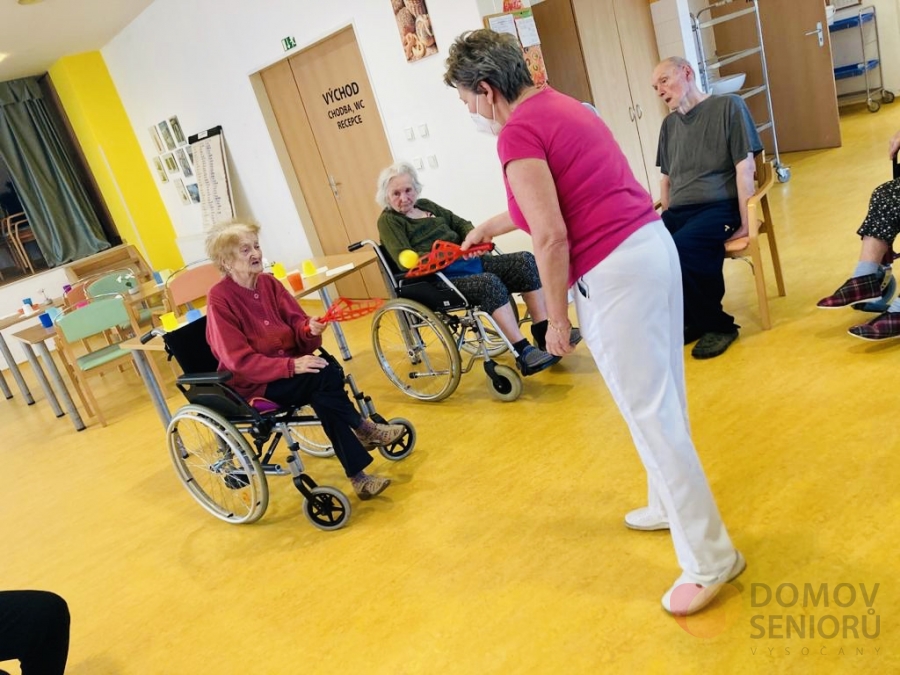 V našem Domově pro klienty pravidelně pořádáme sportovní dopoledne, které zahrnuje různé pohybové aktivity Např. míčové hry, kuželky, házení kroužků, aktivity na postřech a na rozvíjení motoriky