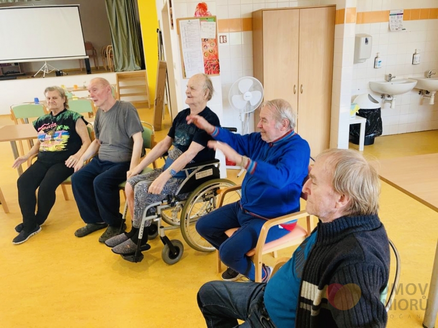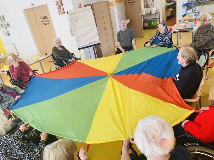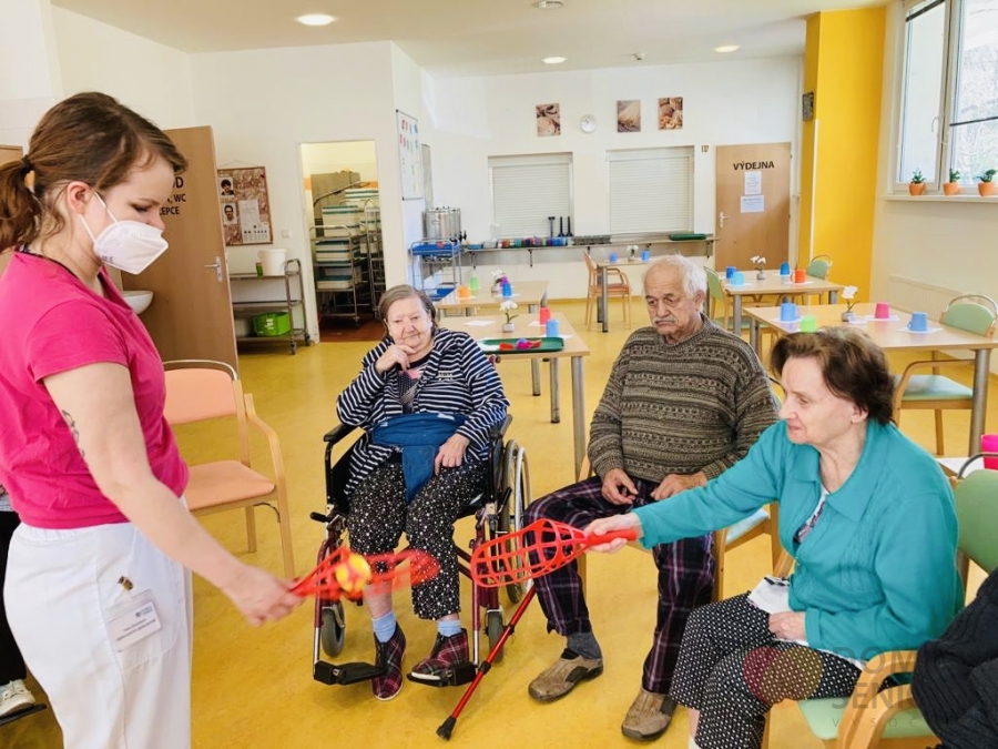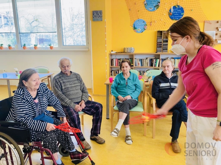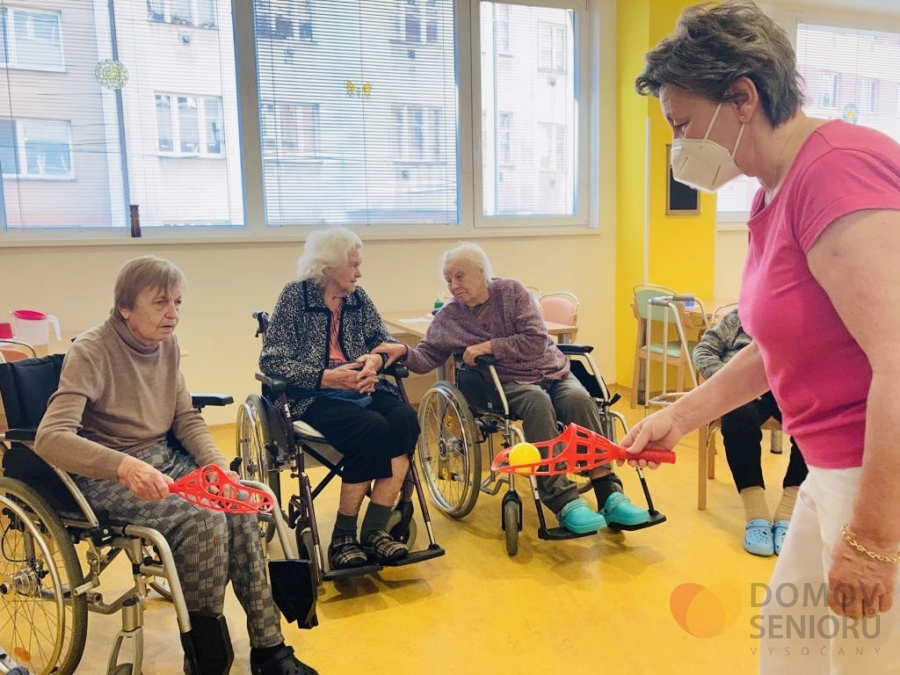 V našem Domově pro klienty pravidelně pořádáme sportovní dopoledne, které zahrnuje různé pohybové aktivity Např. míčové hry, kuželky, házení kroužků, aktivity na postřech a na rozvíjení motoriky