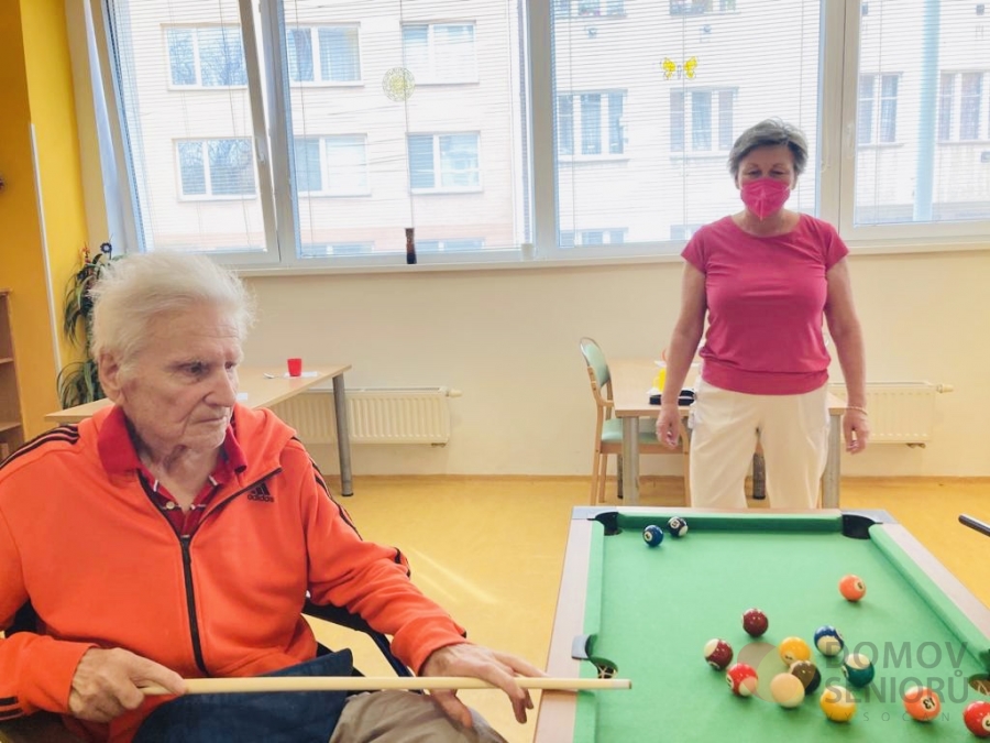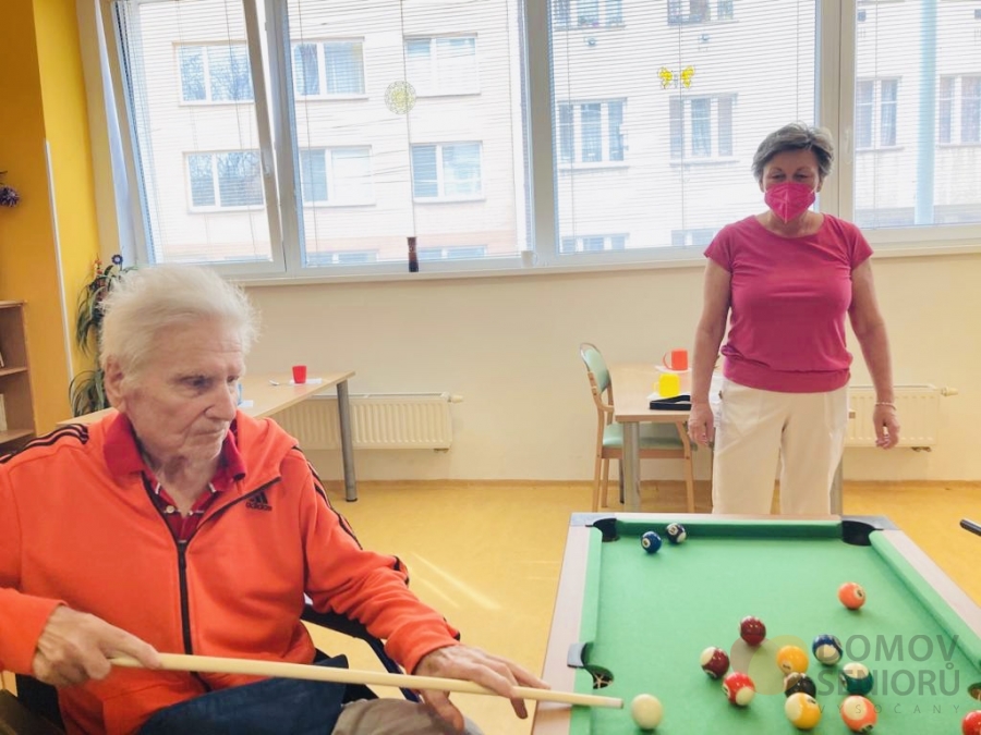 Nově jsme pořídili kulečník, který sklidil velký úspěch, zahrát si můžou i částečně imobilní klienti