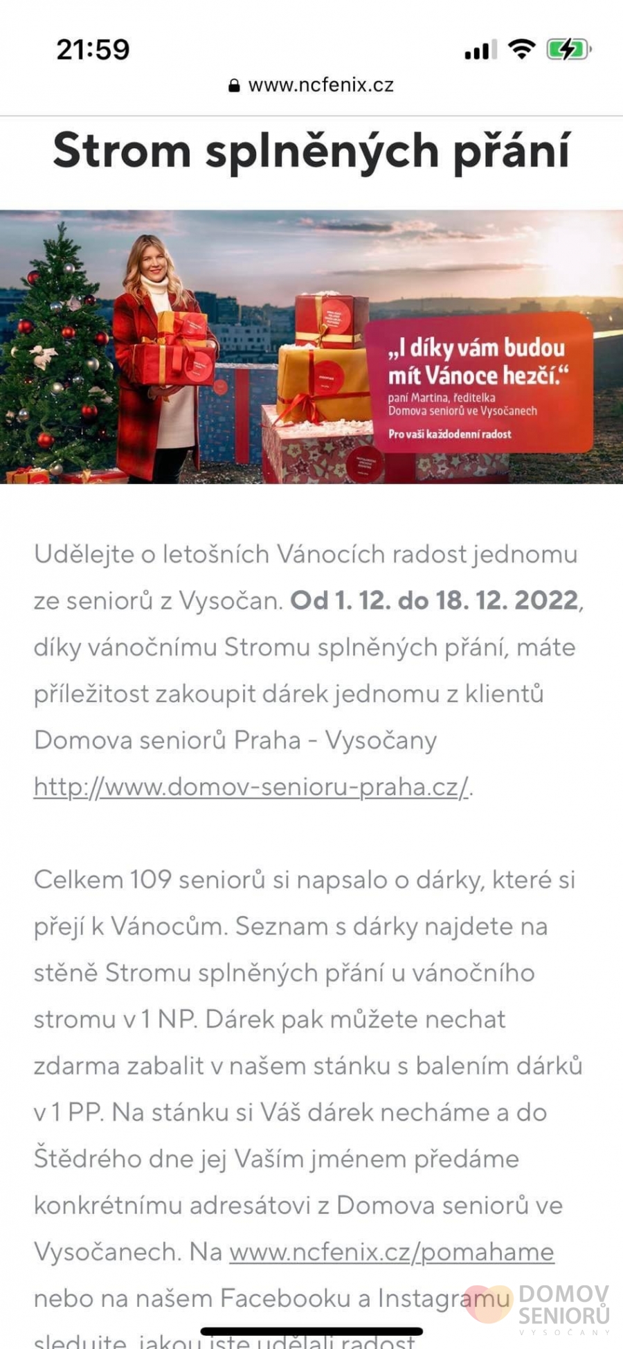 Domov seniorů Praha Vysočany › Články › Aktuality › Strom splněných přání od NC Fénix