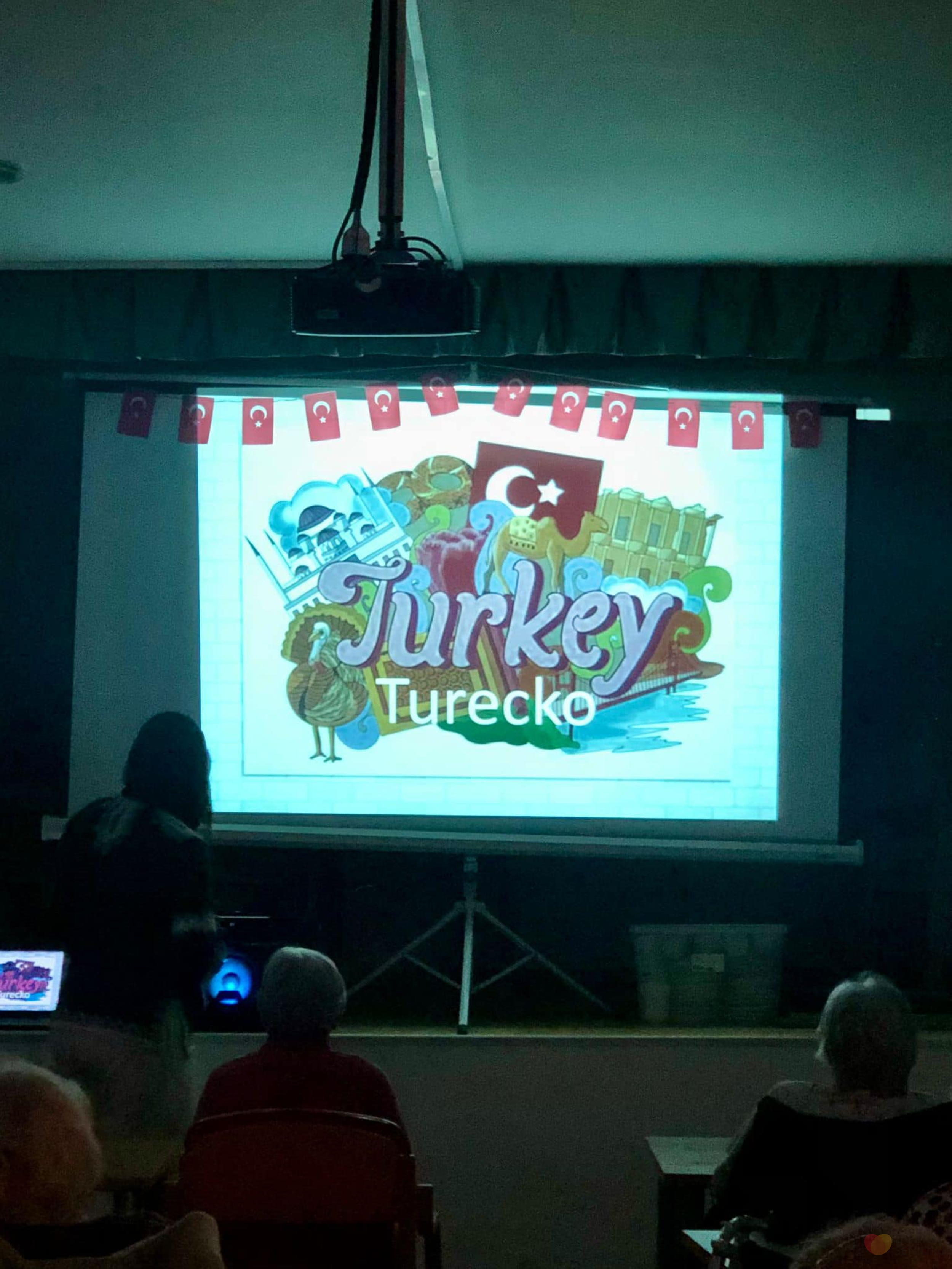 Odpoledne si poslechli zajímavosti o Turecku formou přednášky a prezentace s fotkami. Nechyběla ochutnávka baklavy a burku.