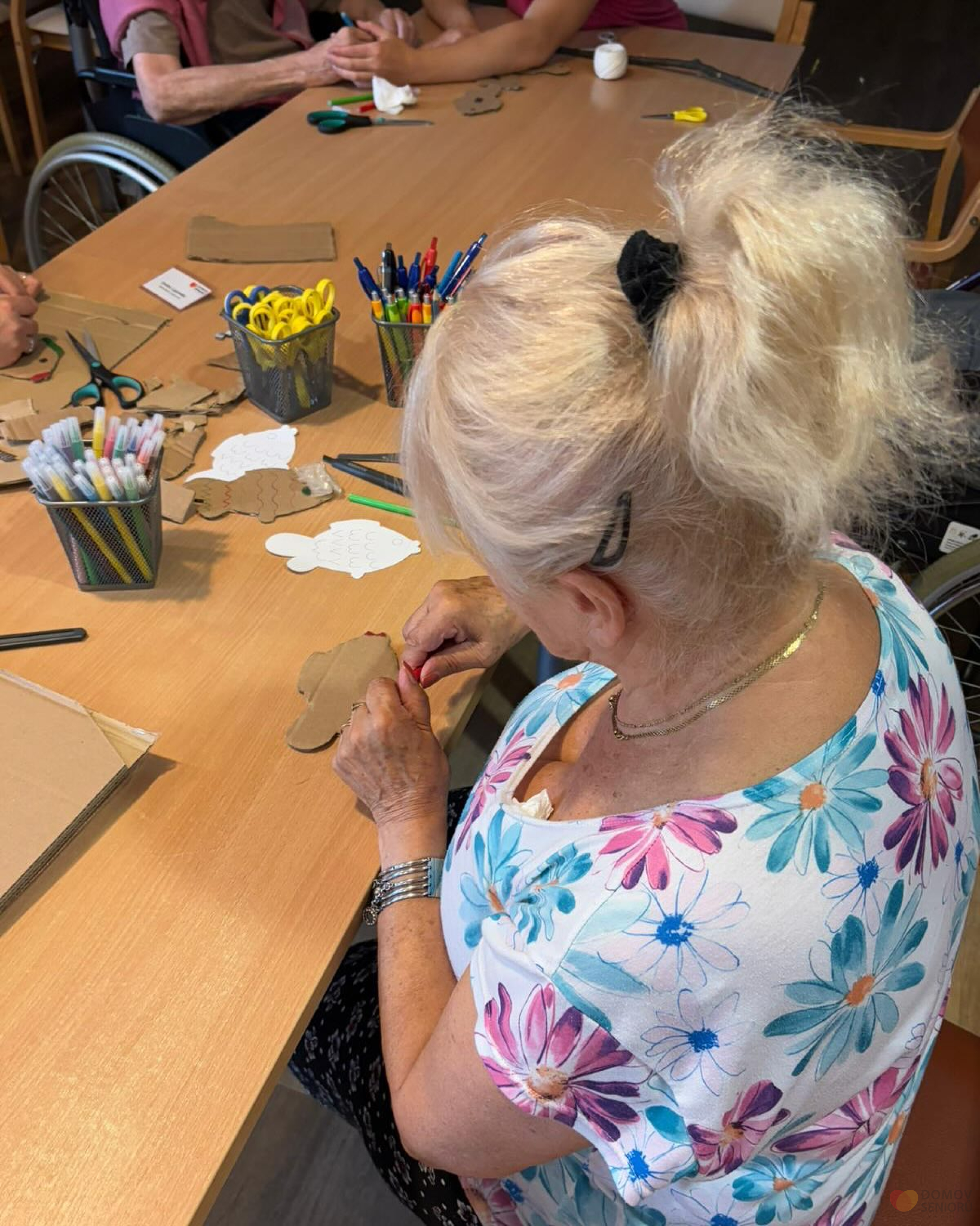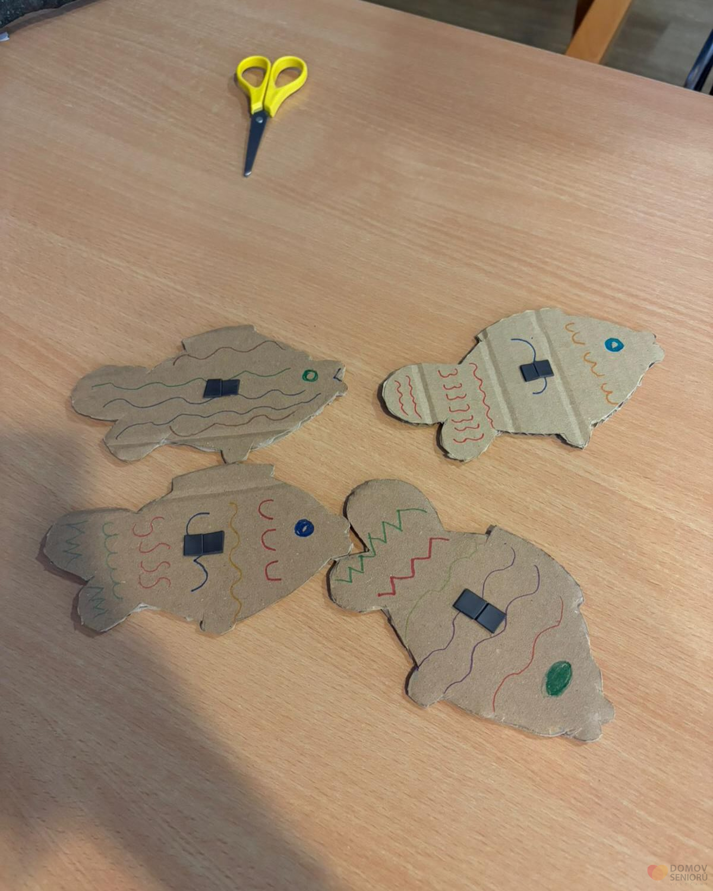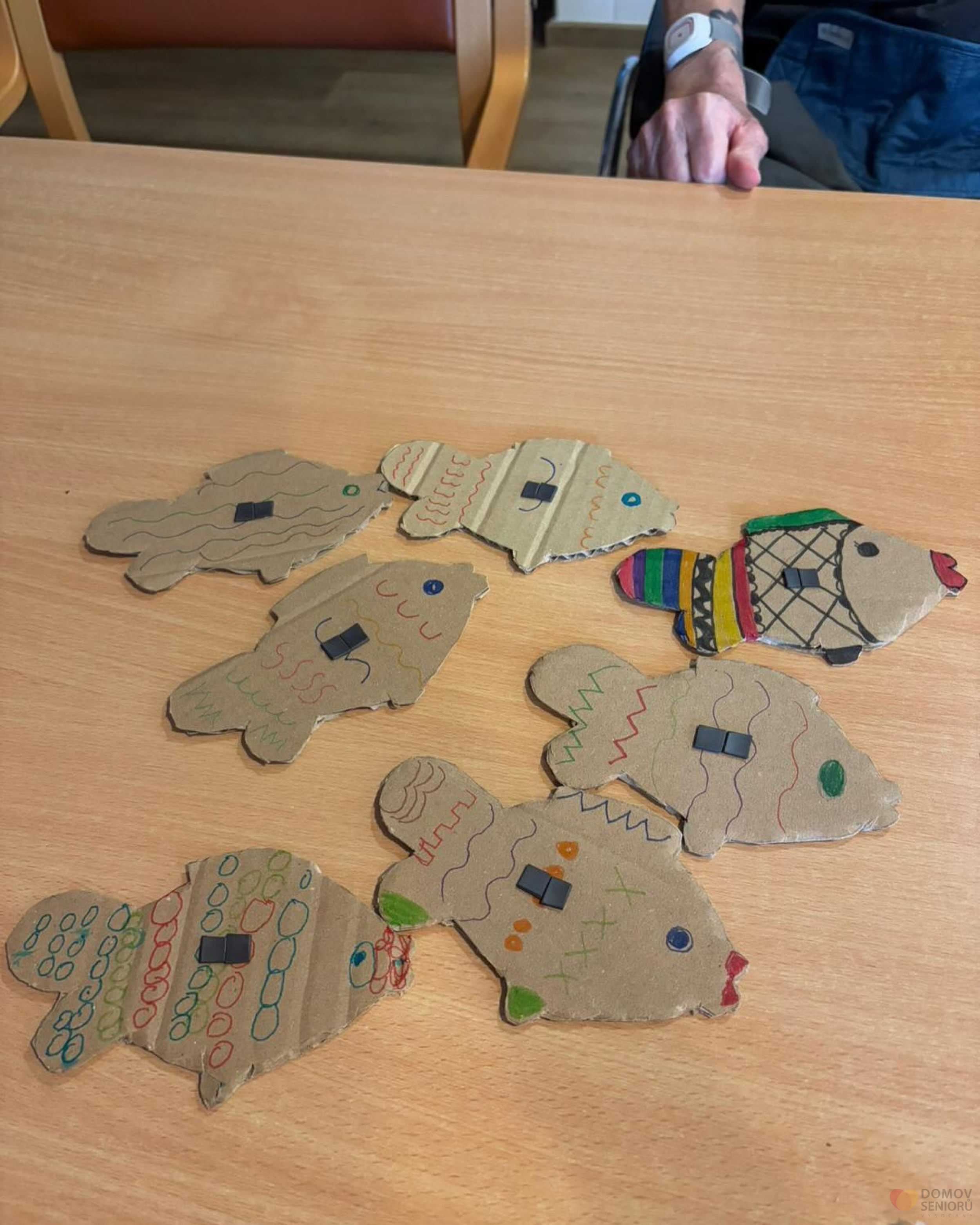 V rámci tvoření jsme s klienty vyráběli papírové rybičky, které posloužili jako součást sportovního dopoledne, kde byla z jednou disciplín chytání rybiček.