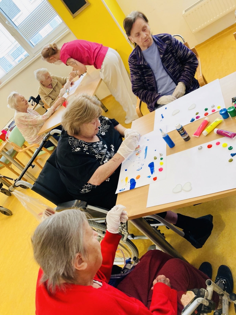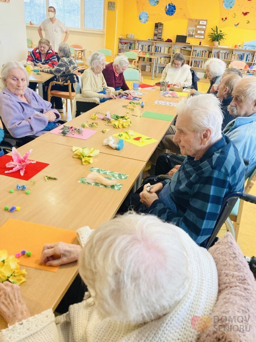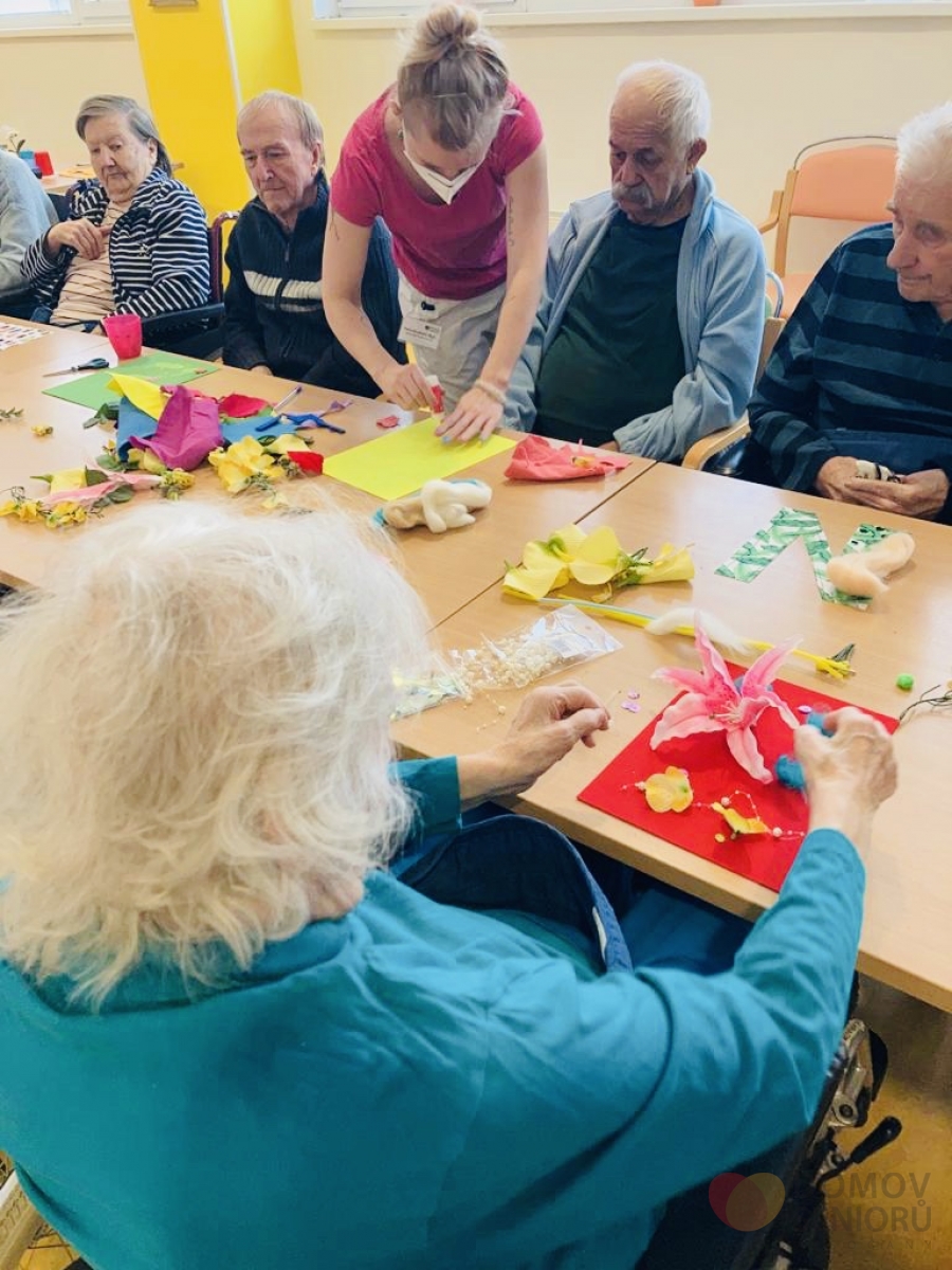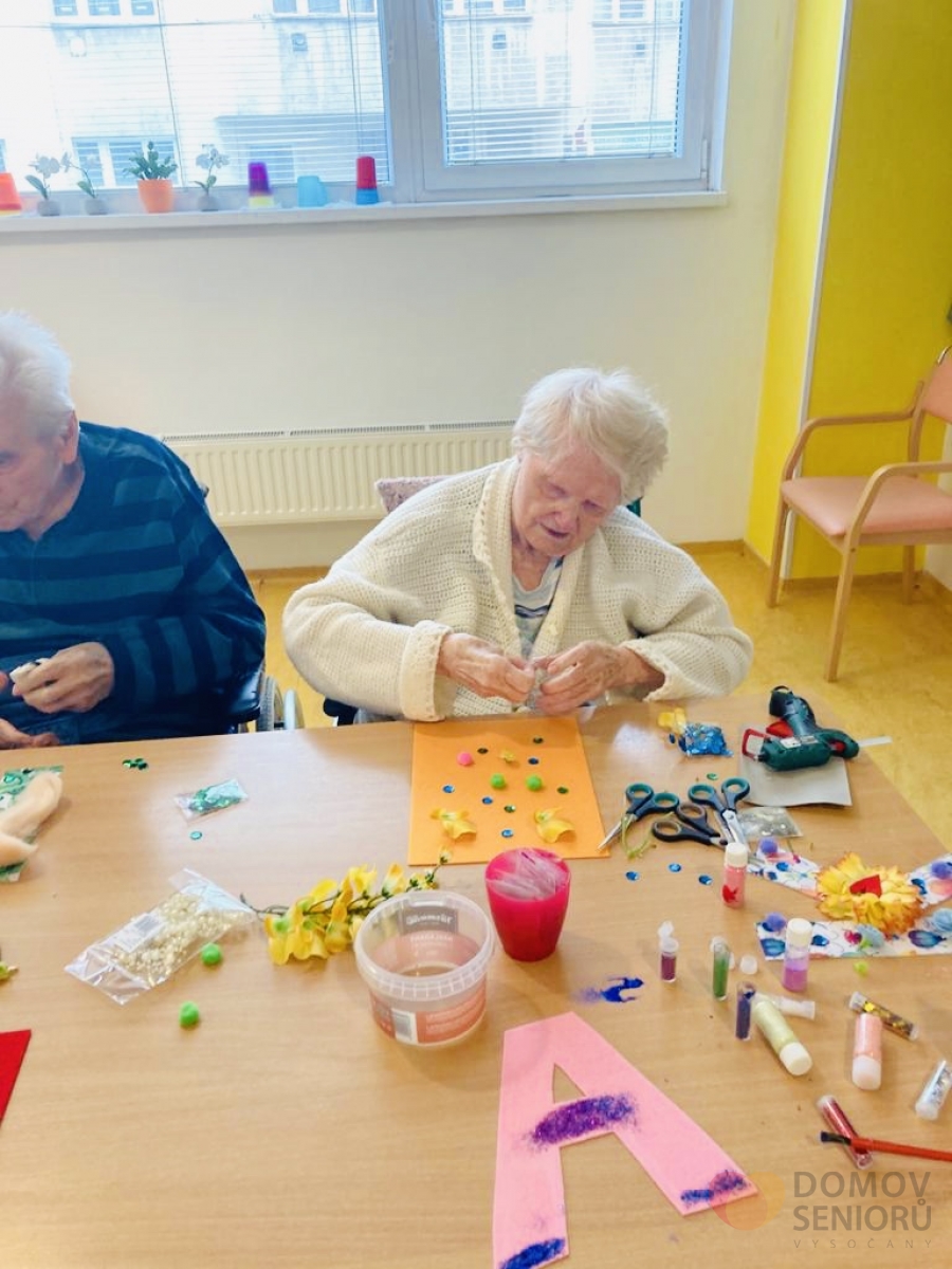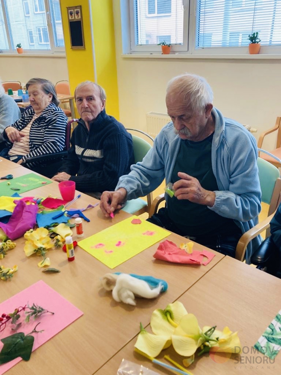 Naši nejšikovnější klienti se spolu s aktivizačními pracovnicemi opět pustili do tvoření. Barvicí technikou tvořili srdíčka a další jarní dekoraci, kdy pomoci různých látek vytvářeli 3D koláže. U květin zatim zůstáváme jen v rámci tvoření, ale už se moc těšíme až se oteplí a budeme moct trávit společný čas na zahrádce