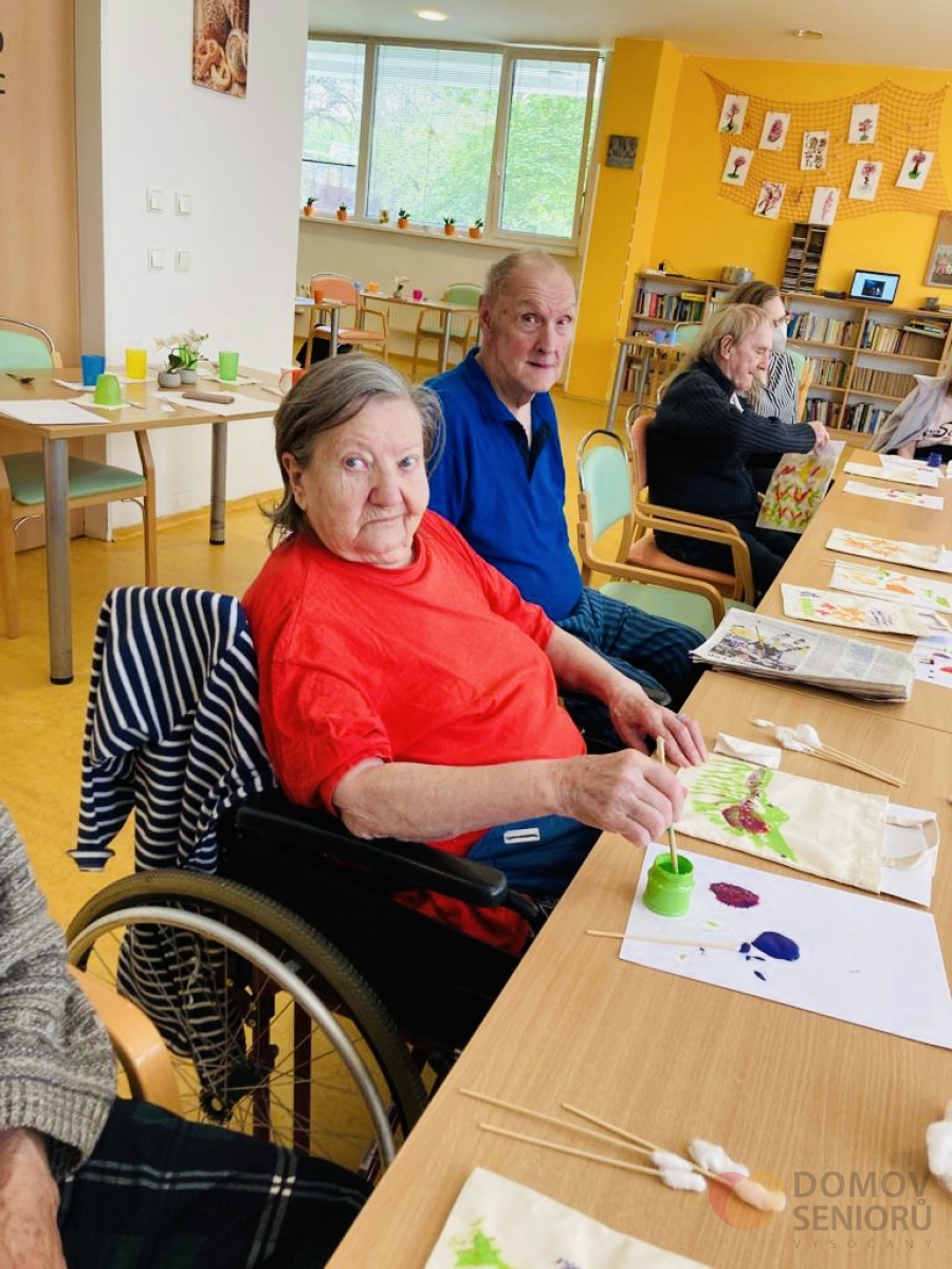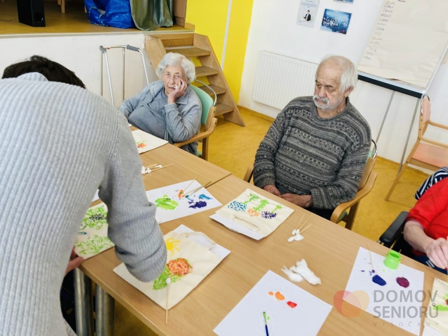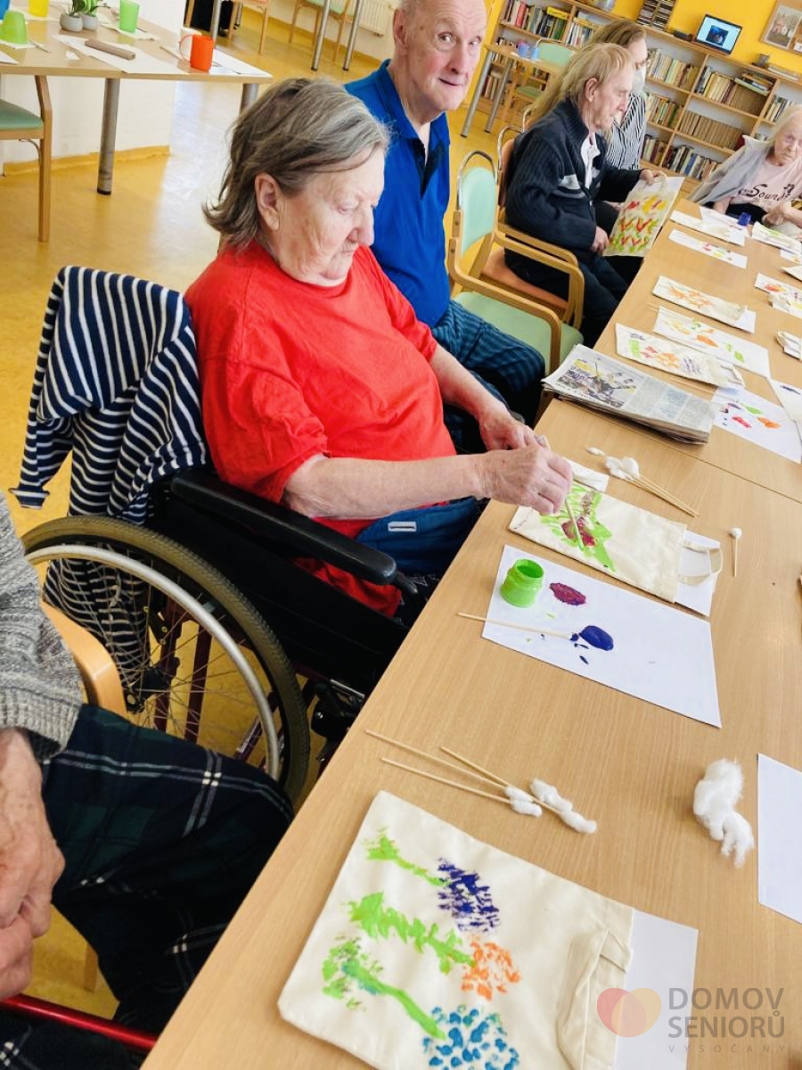 Domov seniorů Praha Vysočany › Články › Aktuality › Tvoření s Jiřinkou a malování na tašky