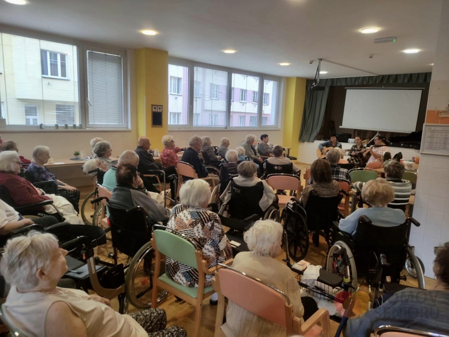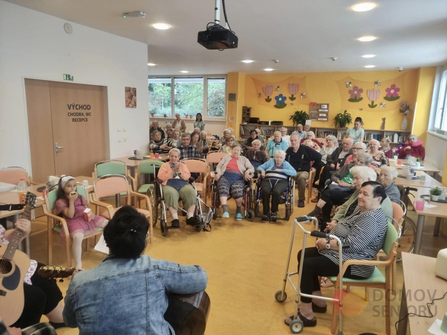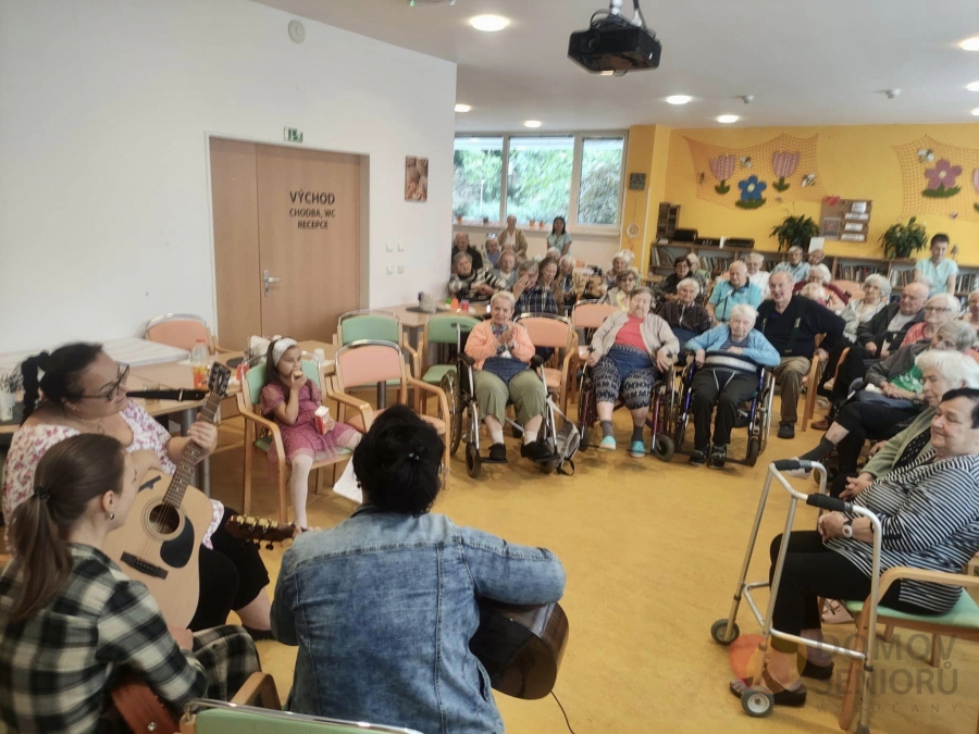 Již podruhé nás navštívily dcery naší klientky pani Evženky, které si pro klienty na nedělní odpoledne připravily, jako poděkování, hudební vystoupení. Hrály na mnoho nástrojů a klienti si spolu s nimi zazpívali spoustu pěkných písniček.I my mockrát děkujeme za návštěvu.