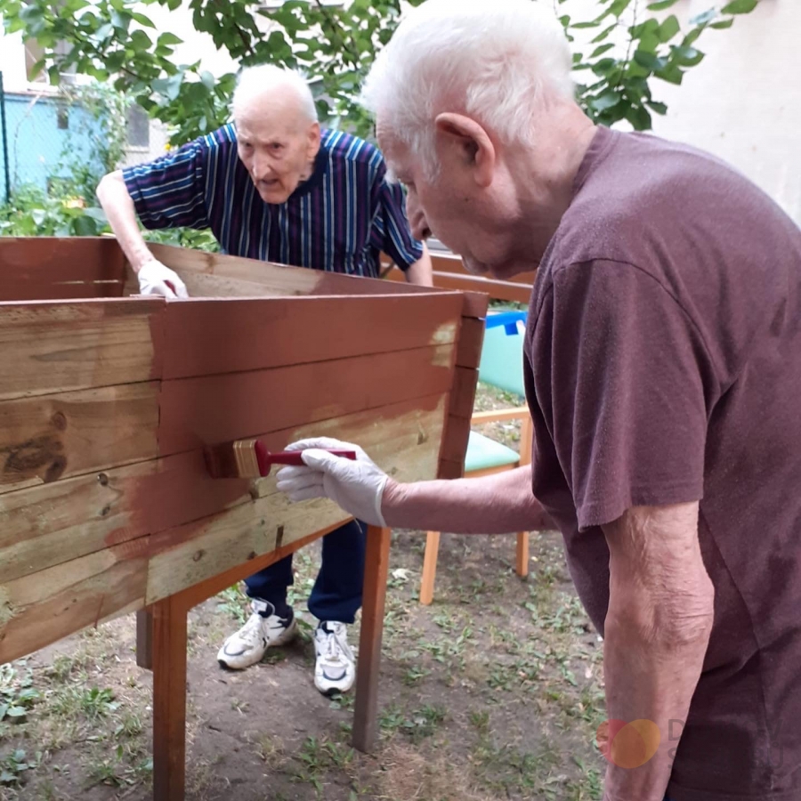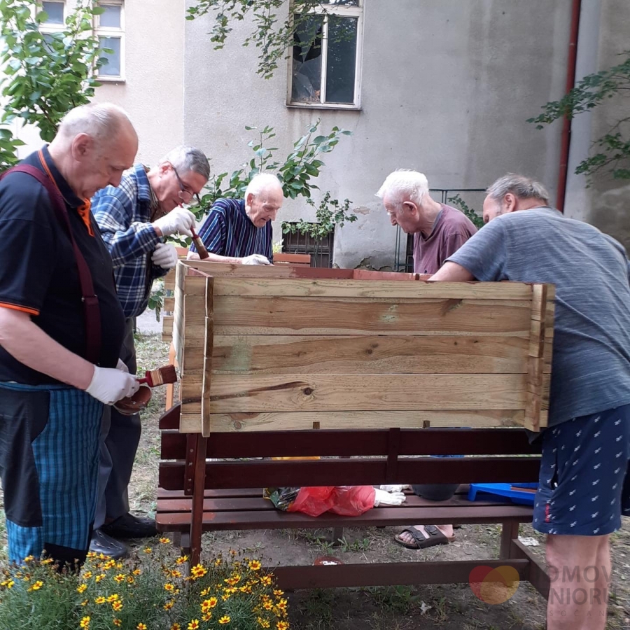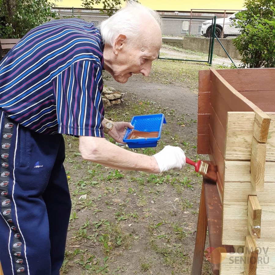 Pokračujeme ve zvelebování naší zahrady. Klienti v rámci aktivity natřeli velky dřevěný květináč, který nám bude zdobit vchod do Domova. Příště do nej budeme sázet květiny.