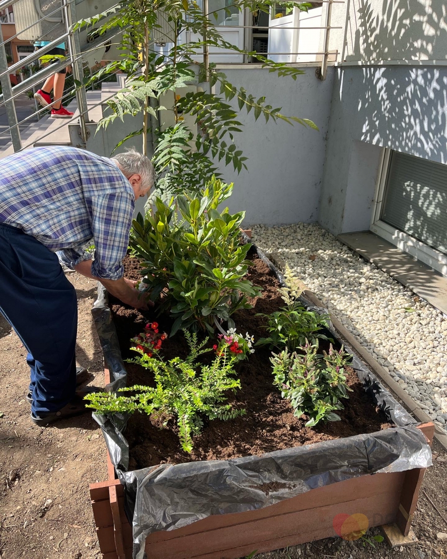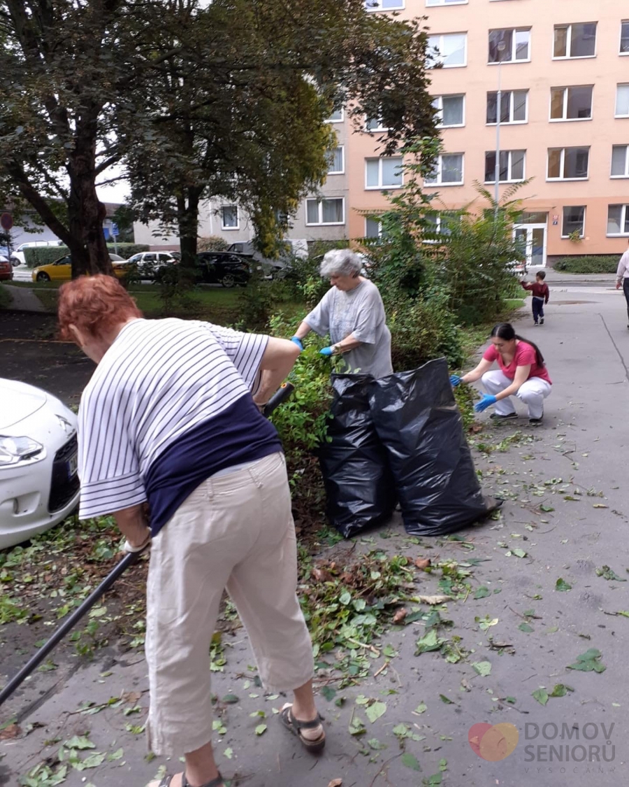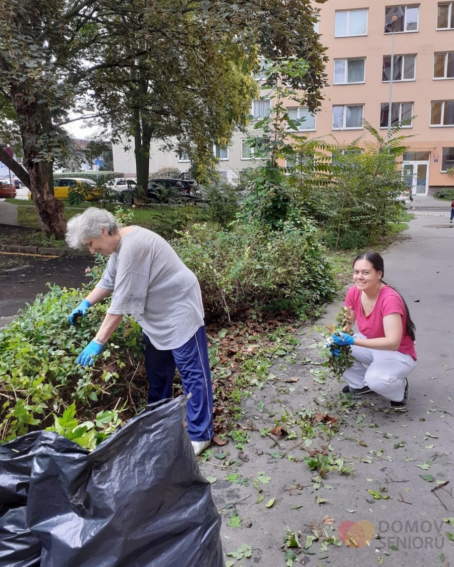Rozhodli jsme se, že si vylepšíme předzahradku u vchodu do našeho Domova. Spolu s klienty jsme tedy do nového květináče zasadili krásné květiny. A ostatní keře jsme ostříhali.