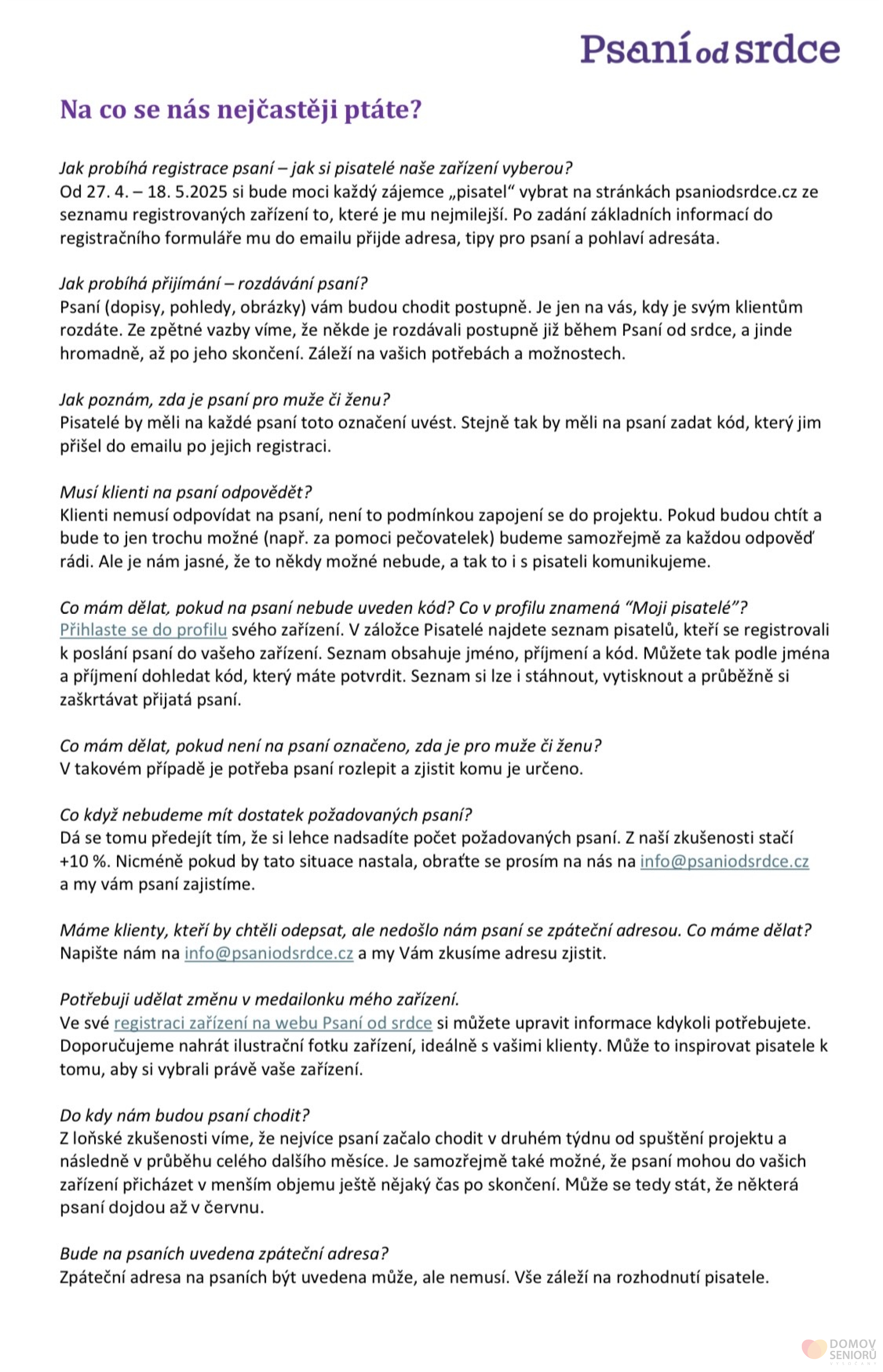 Domov seniorů Praha Vysočany › Články › Aktuality › Zapojili jsme se do projektu Psaní od srdce!