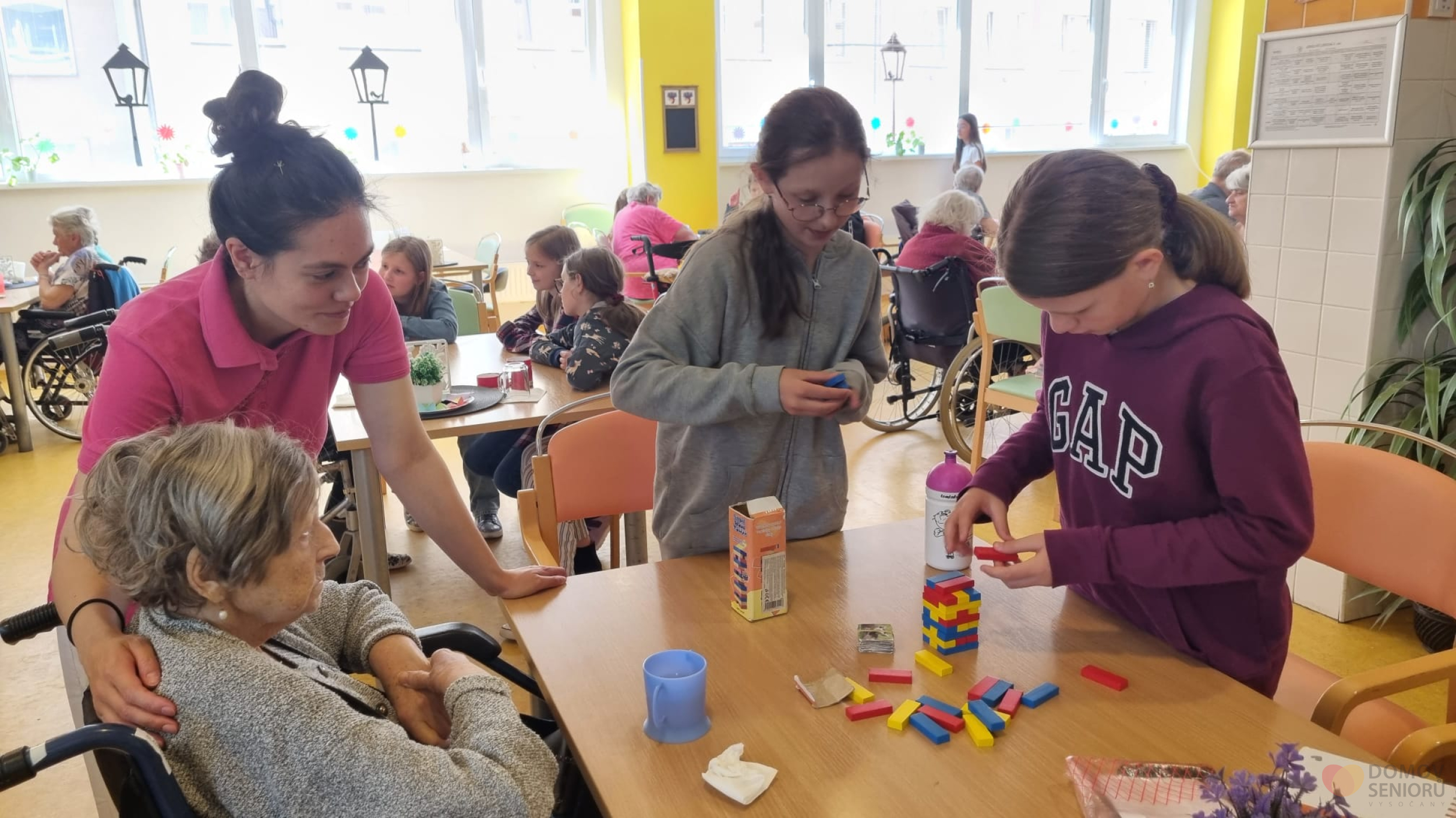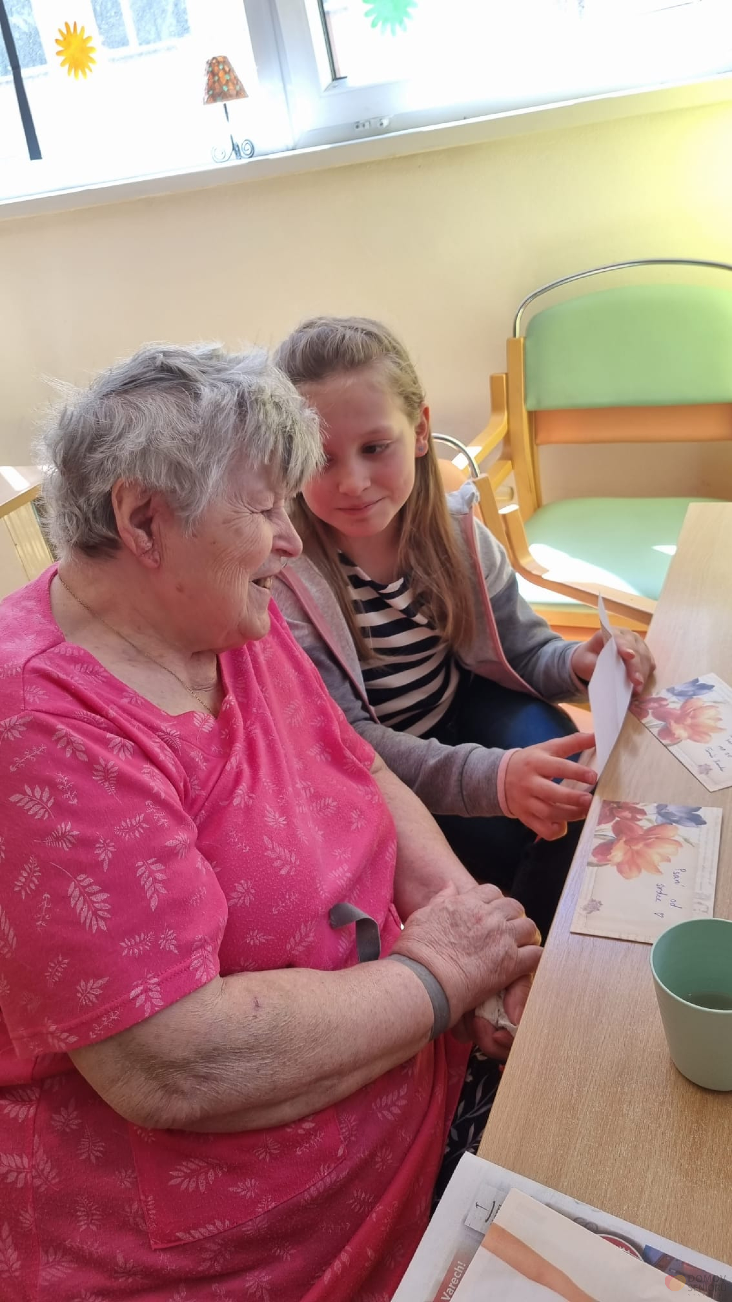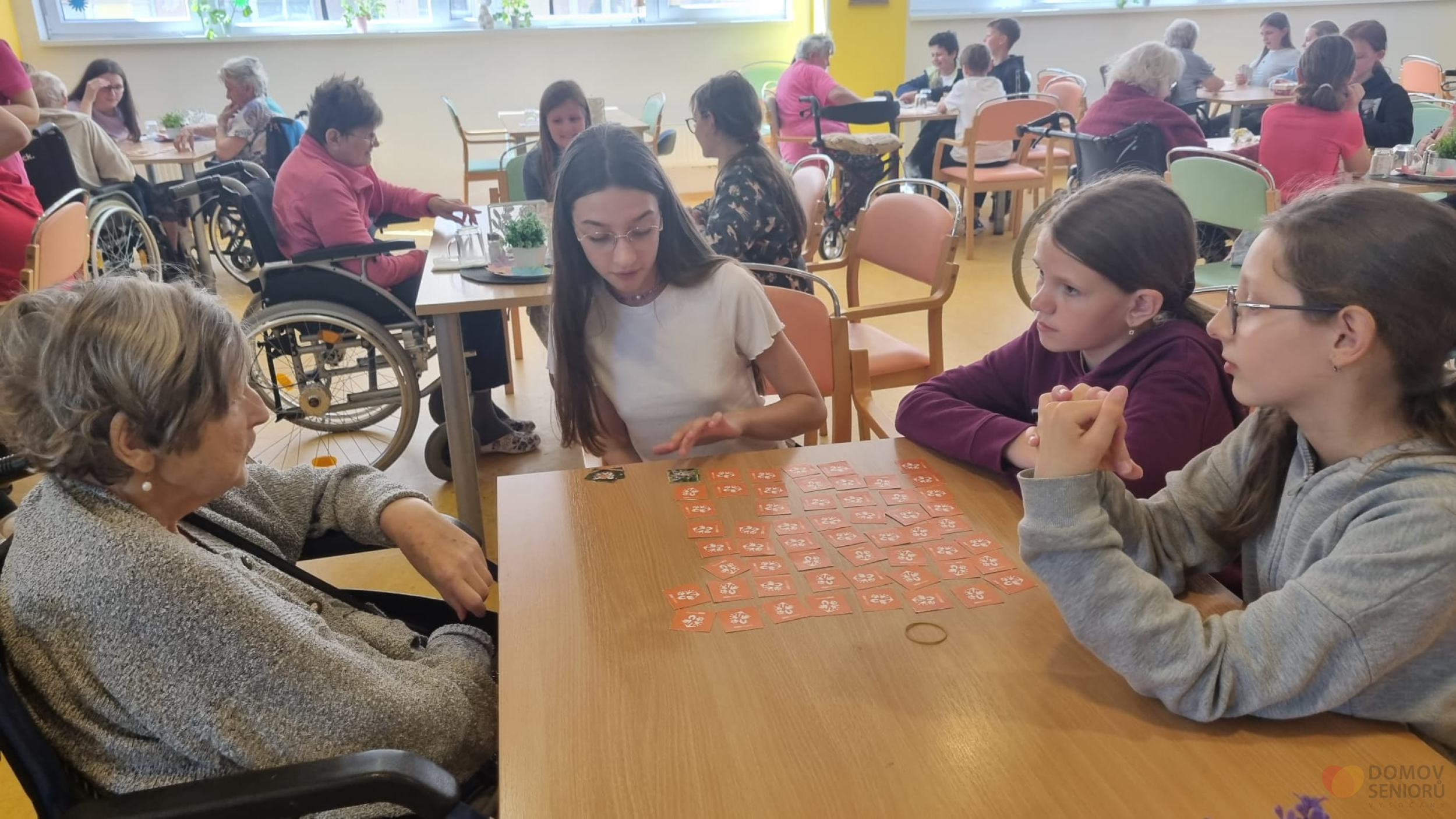 Děti byly skvělé – Lucka, Julka, Ela a Klárka zahájily krásným hudebním vystoupením, následovalo hraní deskových a karetních her a na závěr děti předaly seniorům své dopisy, někomu je i samy přečetly. Byly to velmi dojemné okamžiky a budeme se těšit, zda někomu z nás dorazí poštou odpověď. Všichni odcházeli s krásným pocitem, že se jim podařilo klienty tohoto domova potěšit a rozptýlit."